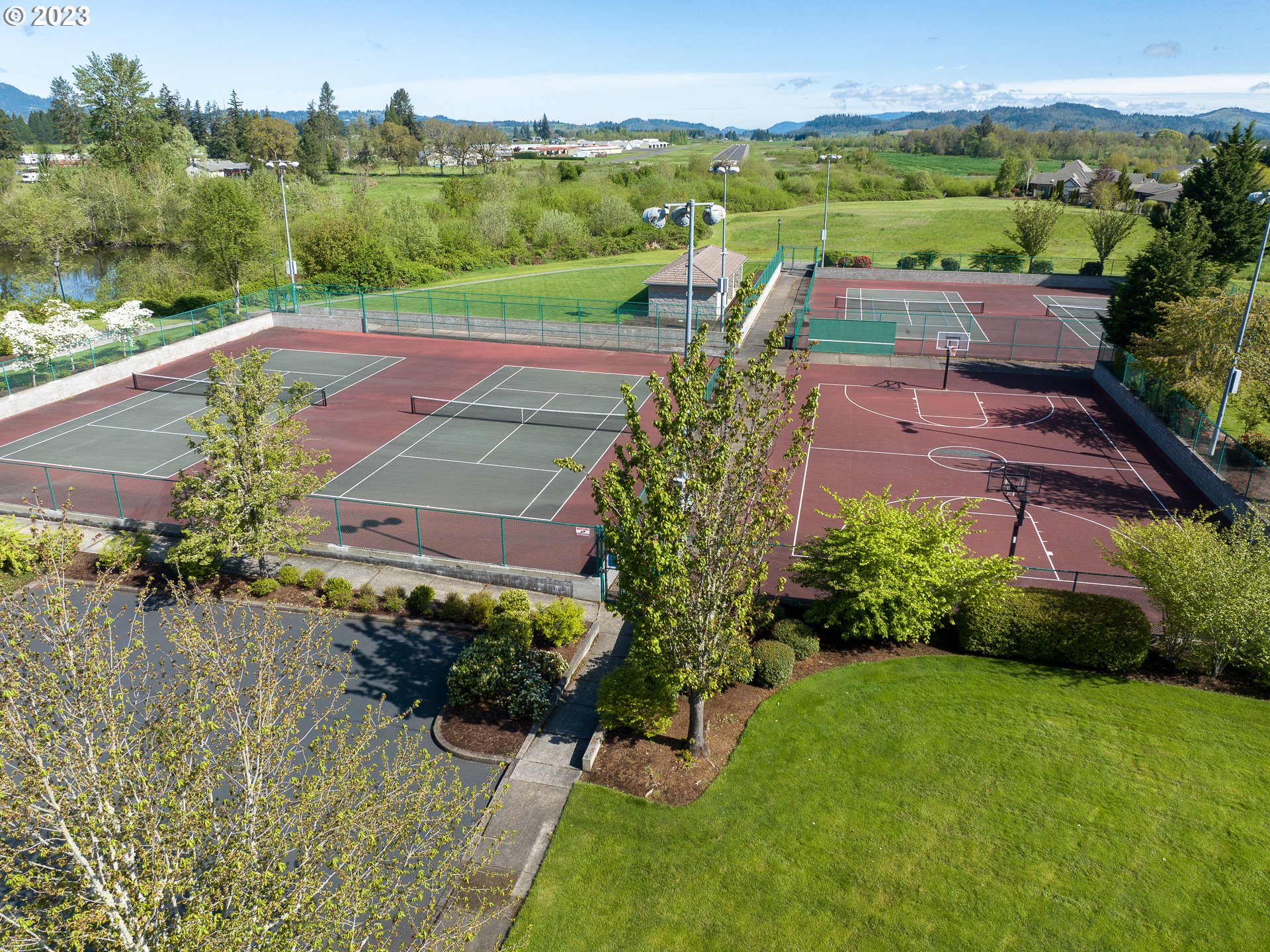 Introducing contemporary construction, conveniently located just 10 minutes away from Eugene! Enjoy the best of both worlds with easy access to the city while still being able to enjoy the peace and tranquility of a suburban lifestyle. Spacious Great room floorplan on main floor. The living room has tons of light with large Milgard windows, high ceilings, hardwood floors, and a cozy fireplace. The great room space is open to both the kitchen & dining room. You'll also find a powder room and generous 2-car garage off the main floor. The Gourmet kitchen has all stainless appliances, tons of built in cabinets, quartz countertops and tile backsplash. The generous dining room opens to the back patio and yard for entertainment. Upstairs you'll find a roomy primary suite with a generous walk-in closet & tons of light. Designer colors & finishes throughout the entire home. Large fenced yard. Amenities include tennis courts, basketball, parks, extensive neighborhood walking paths & a renowned golf course.