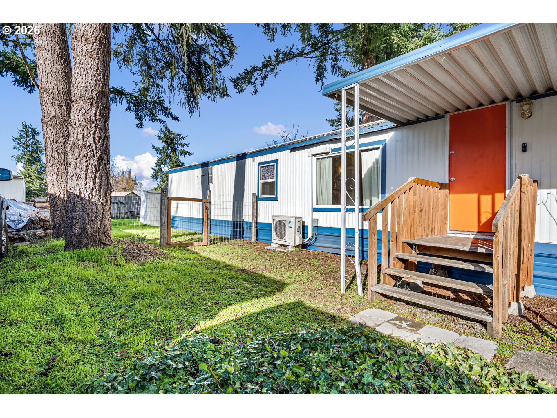Move-in ready manufactured home located in beautiful Creswell. This cute and cozy 2 bedroom 1 bath home features laminate flooring, double pane vinyl windows, and a ductless heat pump. Enjoy low maintenance living in Riverwood Mobile Home Park (all ages). Space rent of $785 includes water, sewer, and garbage. New roof in 2025. Covered parking and two storage sheds are included. Convenient location for an easy commute to Eugene and Springfield.