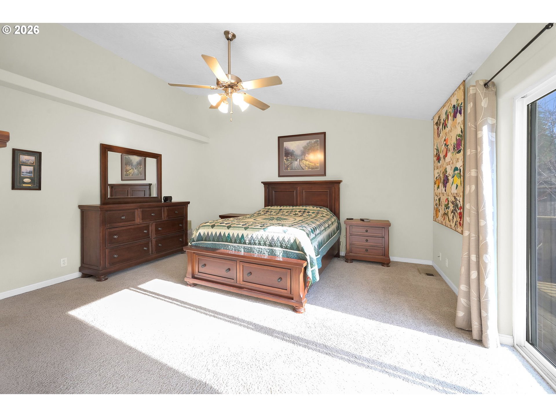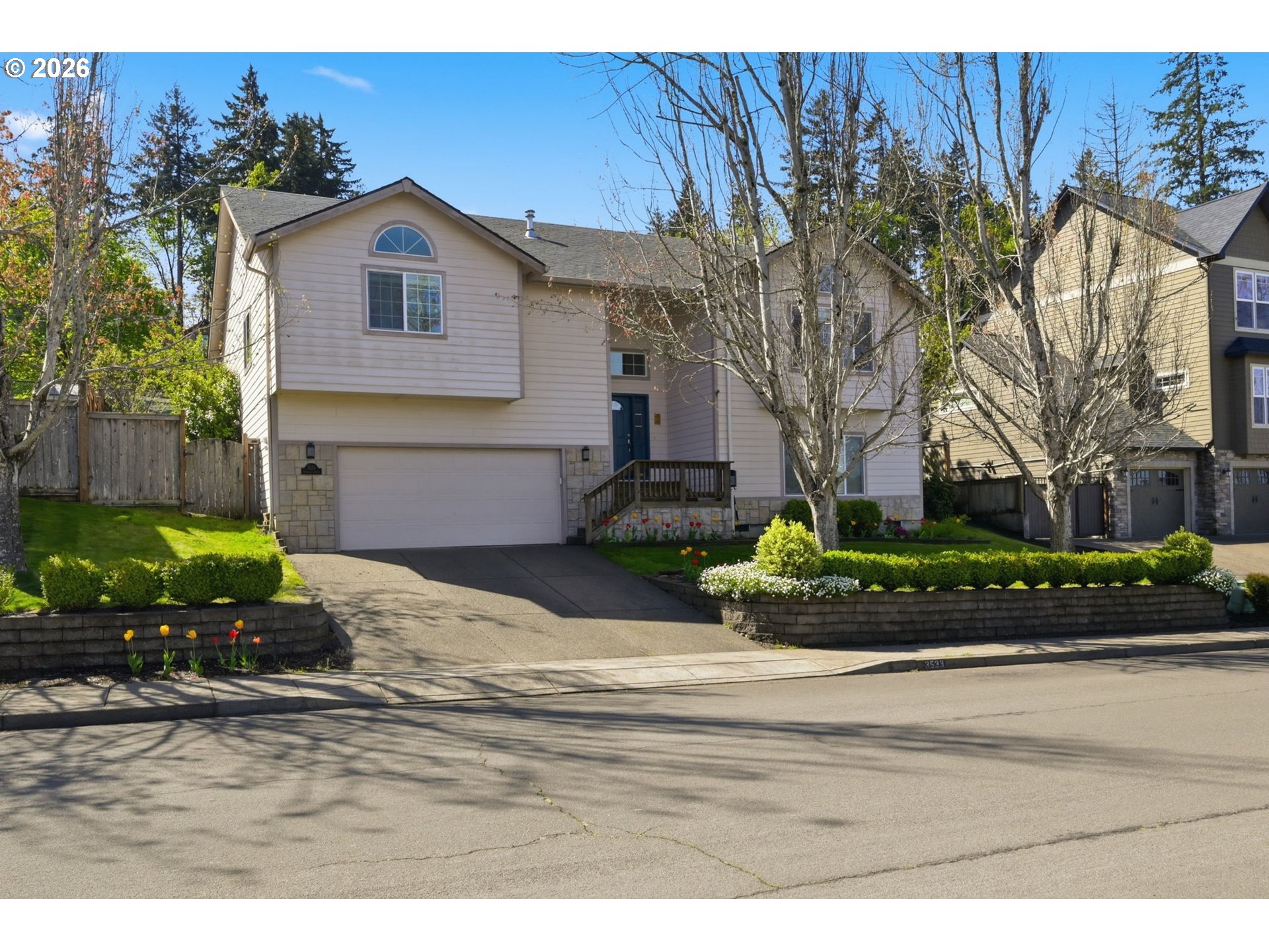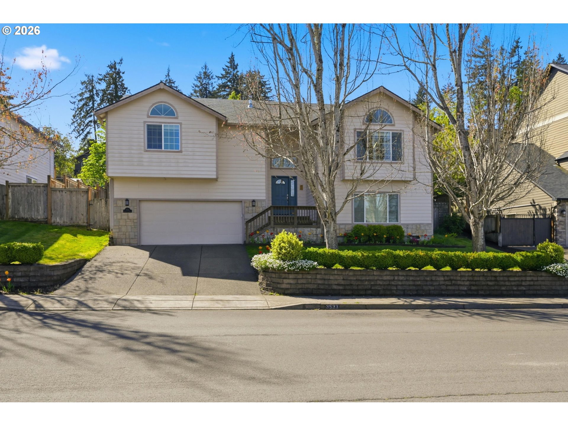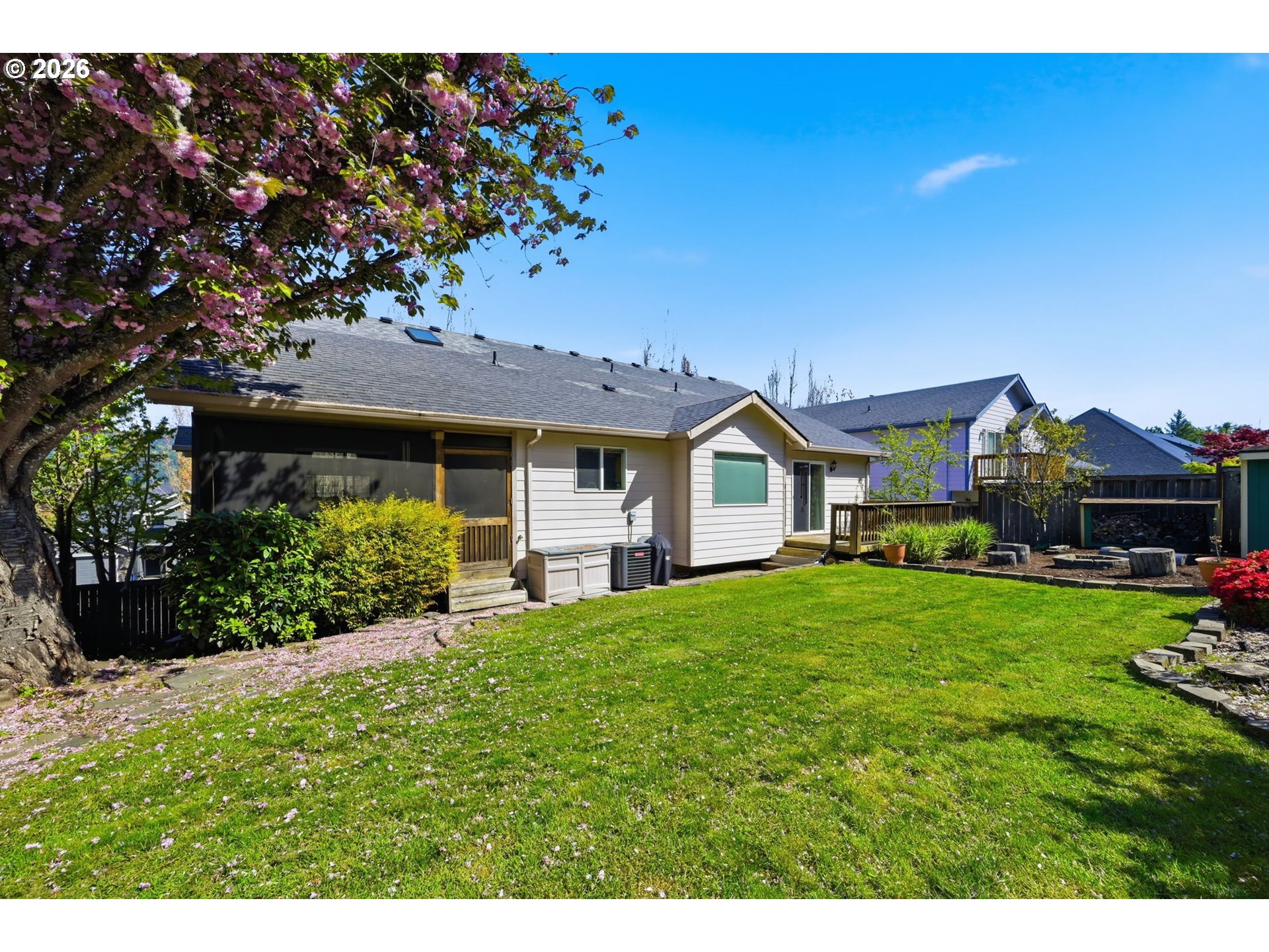 (503) 893-8874Beautifully maintained 4-bedroom, 3-bath home offering 2,724 sq ft of open, light-filled living. Vaulted ceilings and fans throughout enhance the spacious feel. Dream kitchen features breakfast bar, walk-in pantry, new dishwasher, and dining area with patio access. Living room offers inviting views and fireplace. Luxurious primary suite includes jetted tub. Enjoy a screened-in porch overlooking a private terraced yard with Cherry, Peach and nectarine trees, strawberries, marionberries and Raspberries. Lower level provides family room or office and fourth bedroom. HVAC installed 3 years ago. Oversized two-car garage.