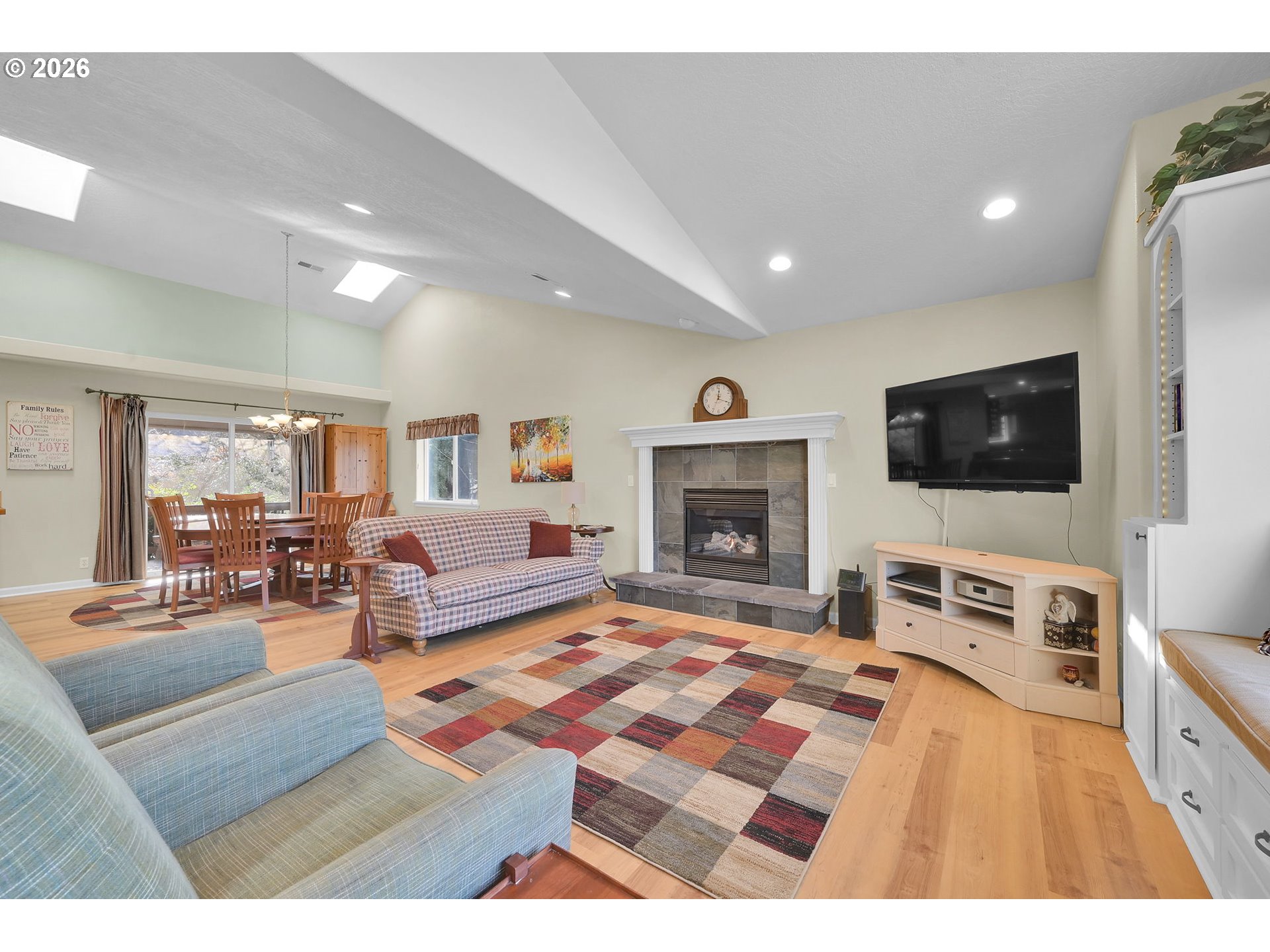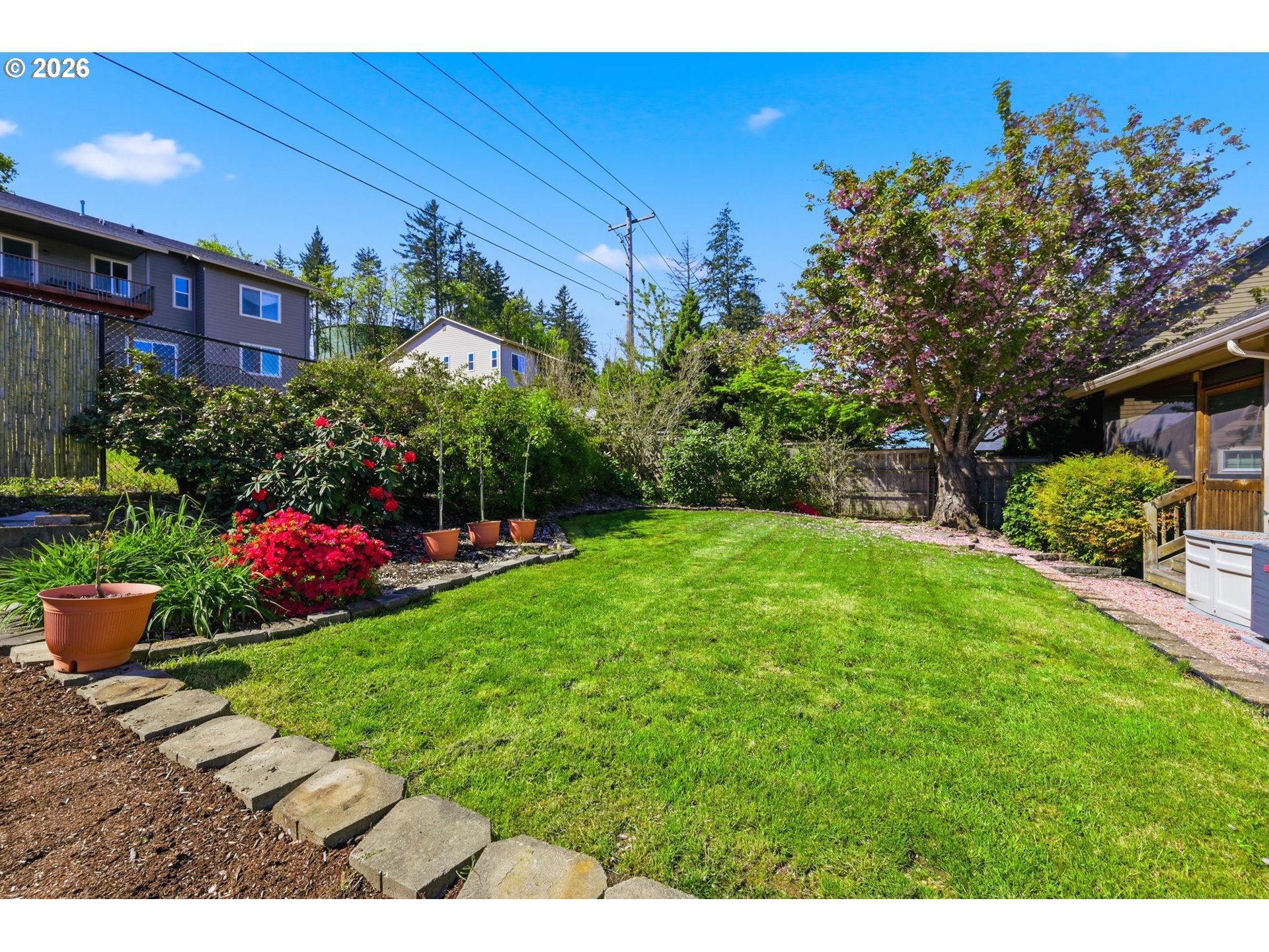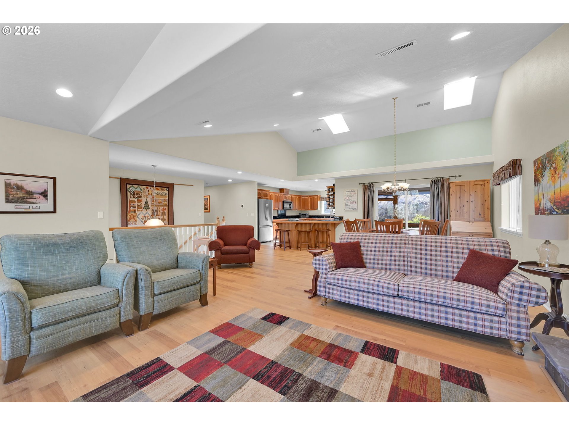 (503) 893-8874Beautifully maintained 4-bedroom, 3-bath home offering 2,724 sq ft of open, light-filled living. Vaulted ceilings and fans throughout enhance the spacious feel. Dream kitchen features breakfast bar, walk-in pantry, new dishwasher, and dining area with patio access. Living room offers inviting views and fireplace. Luxurious primary suite includes jetted tub. Enjoy a screened-in porch overlooking a private terraced yard with Cherry, Peach and nectarine trees, strawberries, marionberries and Raspberries. Lower level provides family room or office and fourth bedroom. HVAC installed 3 years ago. Oversized two-car garage.