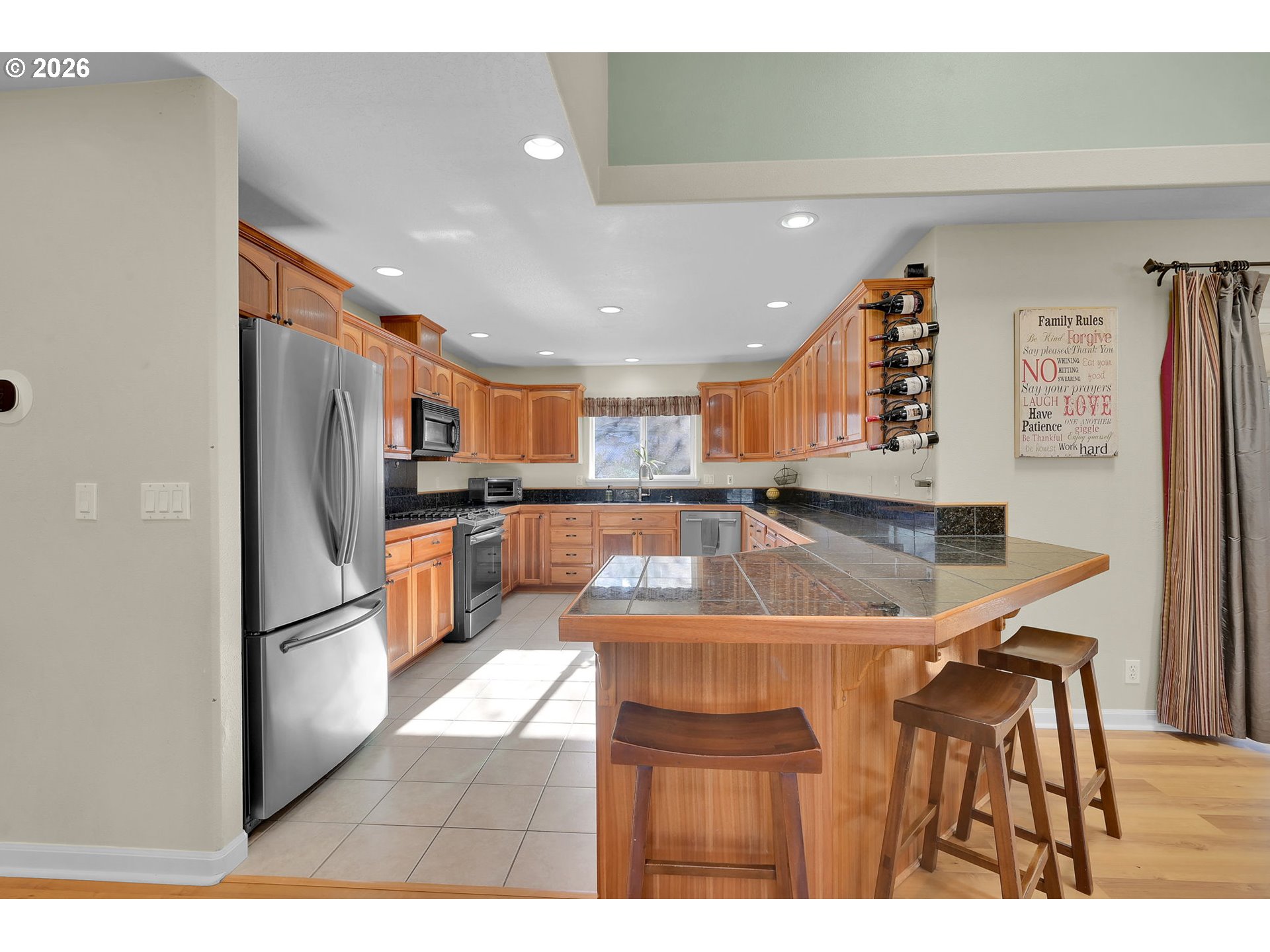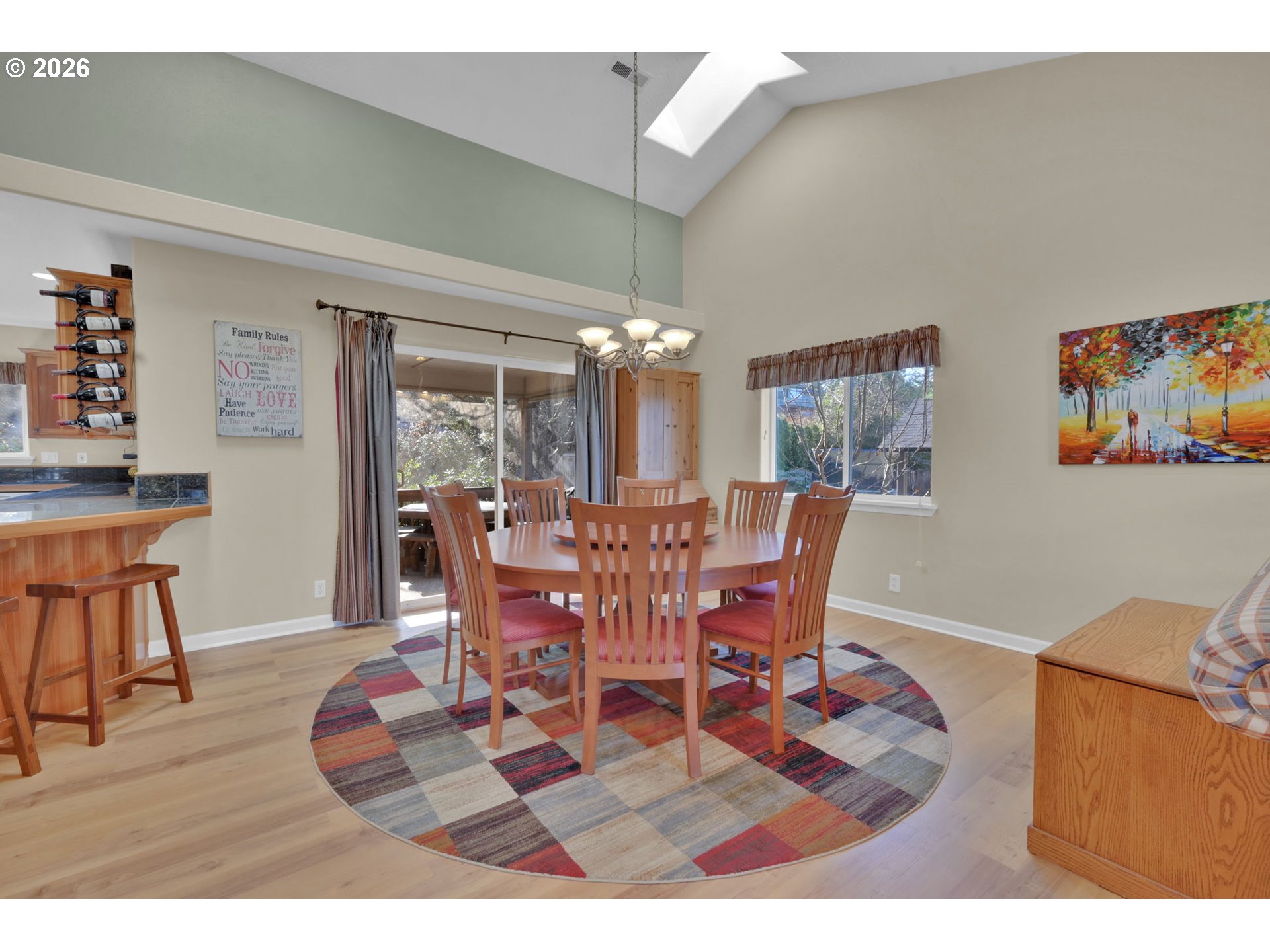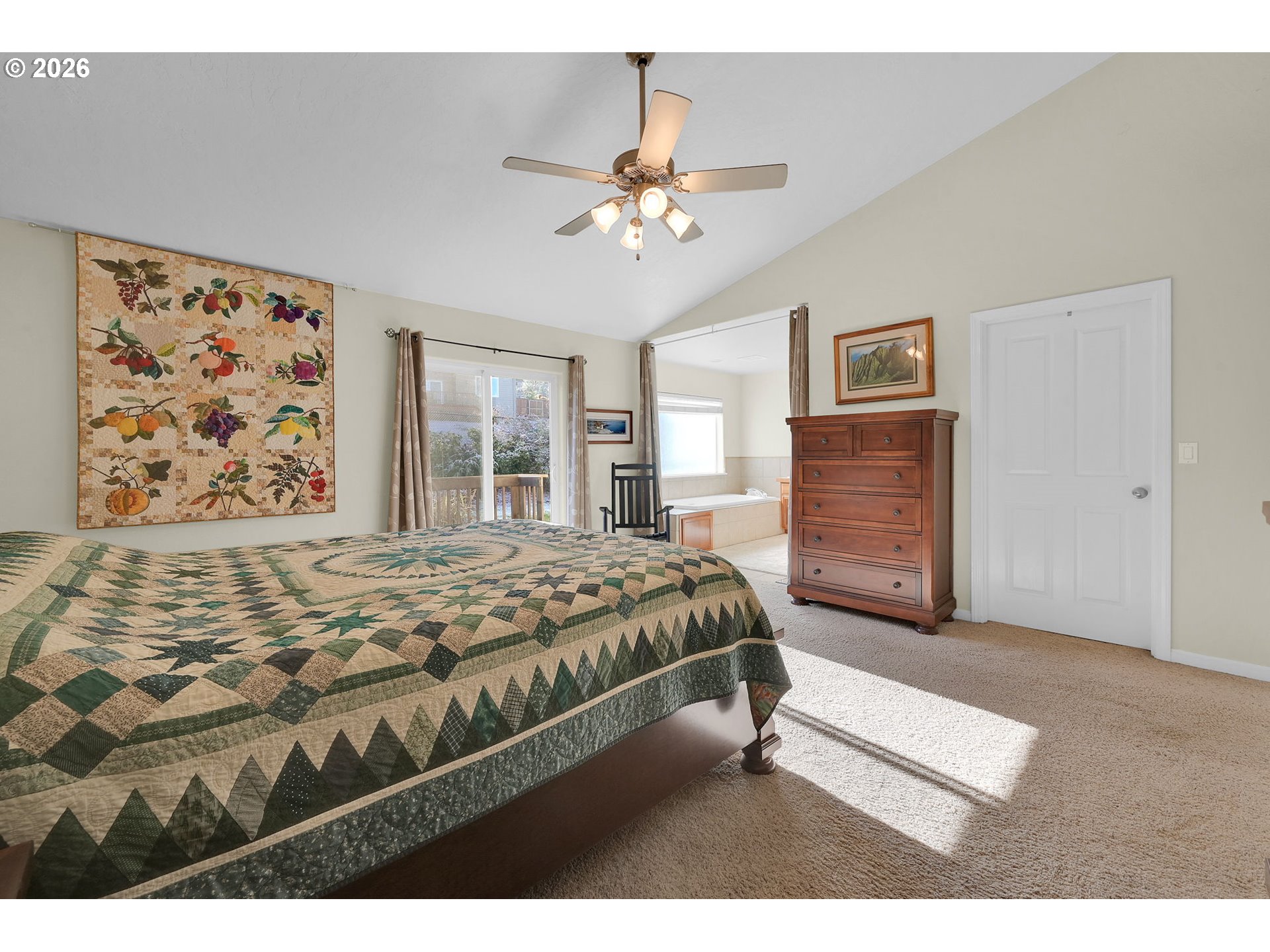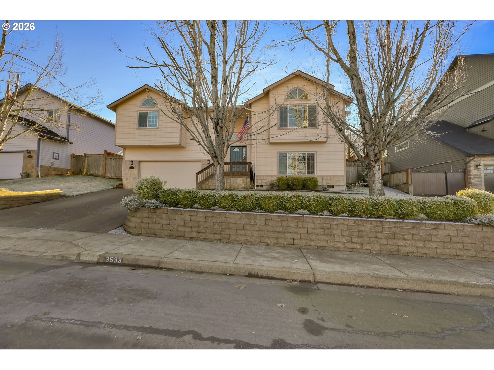 (503) 893-8874Beautifully maintained 4-bedroom, 3-bath home offering 2,724 sq ft of open, light-filled living. Vaulted ceilings and fans throughout enhance the spacious feel. Dream kitchen features breakfast bar, walk-in pantry, new dishwasher, and dining area with patio access. Living room offers inviting views and fireplace. Luxurious primary suite includes jetted tub. Enjoy a screened-in porch overlooking a private terraced yard with Cherry, Peach and nectarine trees, strawberries, marionberries and Raspberries. Lower level provides family room or office and fourth bedroom. HVAC installed 3 years ago. Oversized two-car garage.