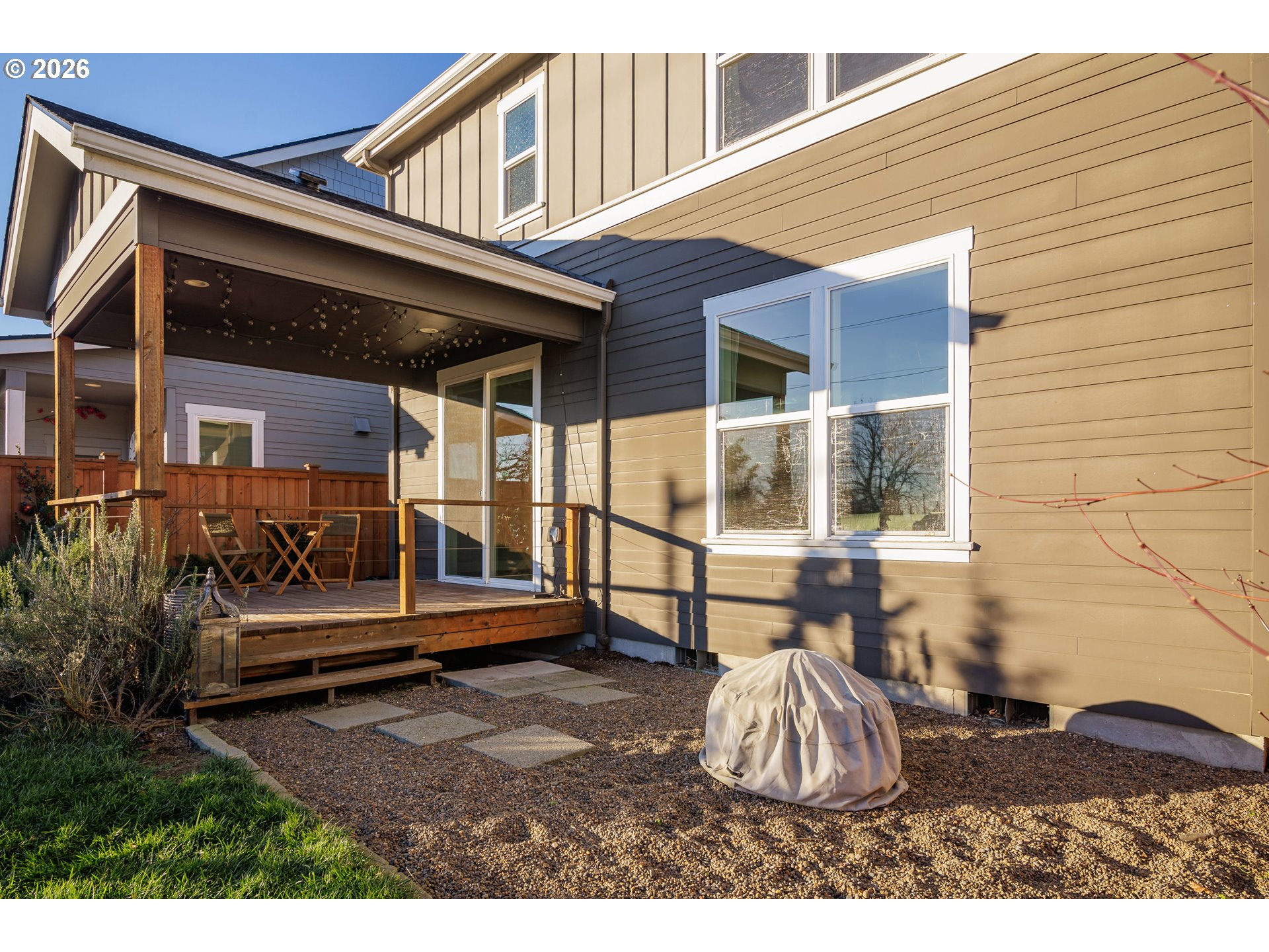 A Perfect 10 in The Nines! Thoughtfully designed for modern living, this exceptional home blends luxury and comfort in a convenient North Gilham location. The main floor delivers style and an excellent flow, with a coveted floor plan and curated upgrades. The cozy living room features custom built-ins and a gas fireplace that sets a warm, inviting tone. The gourmet kitchen is both stylish and functional -- featuring stainless steel appliances, gas cooking, quartz countertops, an expansive island, and an ample pantry -- perfectly positioned beside the open dining area with glass doors leading to the covered deck, perfect for year-round entertaining. Upstairs, four spacious bedrooms offer versatility and privacy, highlighted by a serene primary suite with an en suite bath showcasing a custom walk-in shower and a spacious walk-in closet. Three other bedrooms provide flexible space for family members, home office, or guests. A full secondary bath and a conveniently located laundry room with LG washer and dryer enhance everyday ease. Outside, enjoy the exquisitely landscaped backyard with views of Spencer Butte, creating an ideal backdrop for relaxation or entertaining. Recent enhancements include: new fixtures, luxury vinyl flooring on stairway and second level (hardwood floors on main level), floating shelves, extensive landscaping, and wired for an EV charger in the attached 2 car garage. Ideally situated near shopping and dining, with easily accessible commuter access, this refined home delivers a coveted blend of luxury, location, and livability. Move in ready!
