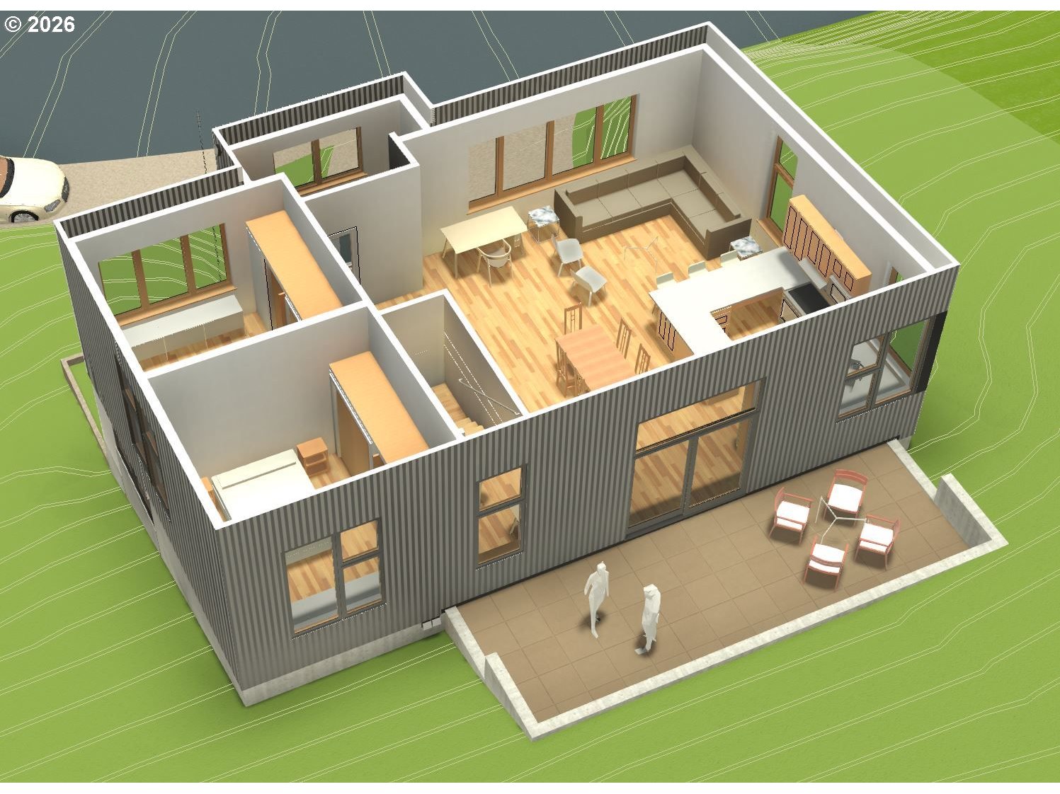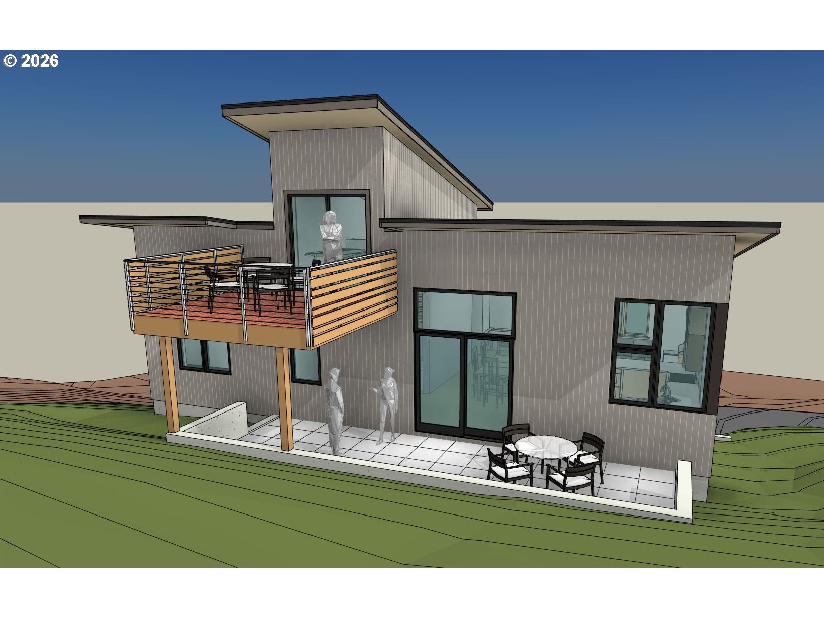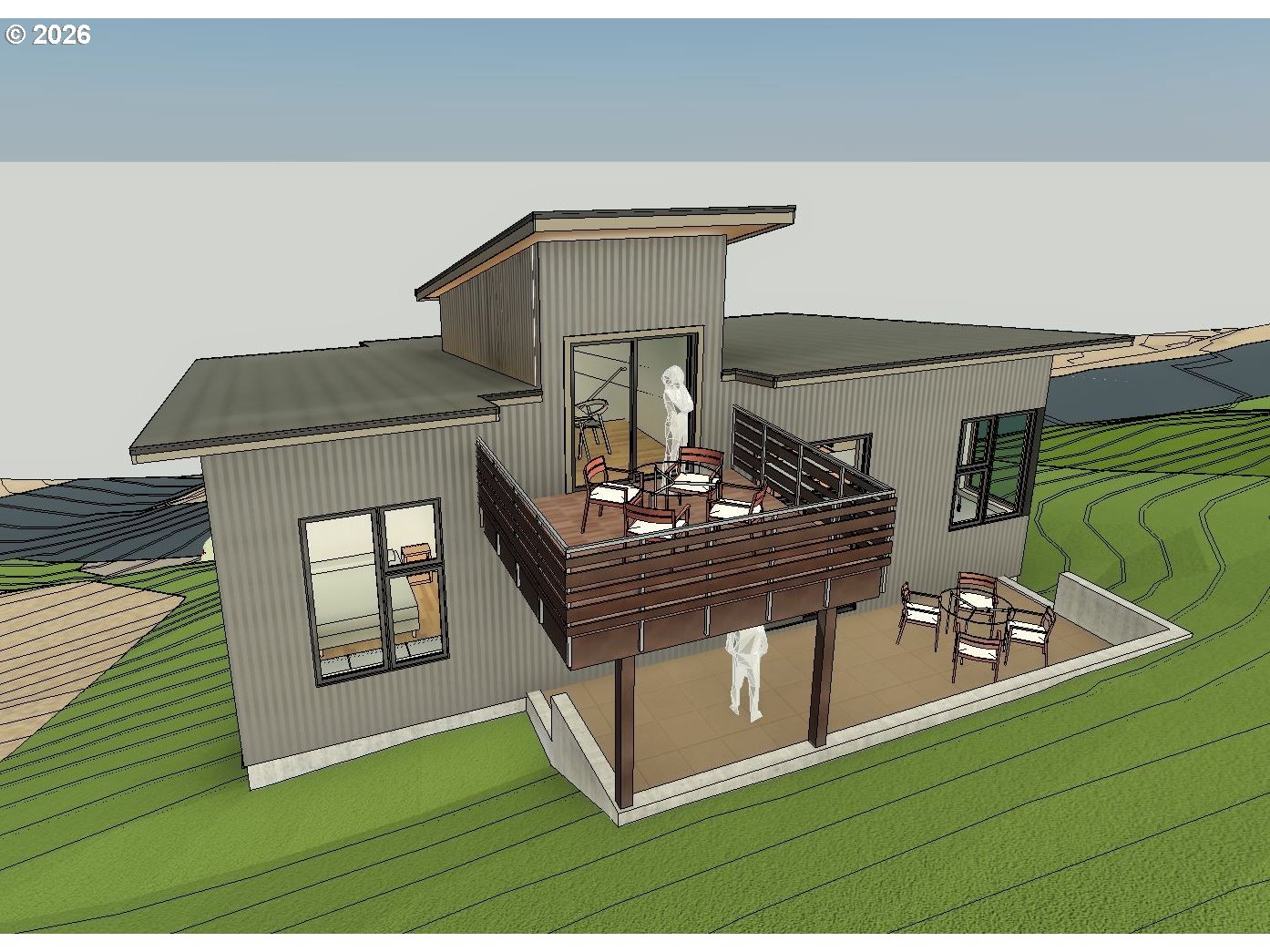 Some find more comfort with finding a flat lot on the valley floor on a public street with a patch of lawn and fenced from the neighbors on all sides and the sounds of the city. Some find comfort living in a forested neighborhood away from the public streets and sounds of the city. Look more closely at these moderately upslope lots and you will find them to be reasonably buildable in private, quiet living style surrounded by acres of wooded nature in an established, well-maintained neighborhood. Studio e Architecture helped develop a mid-sized concept house plan customizable to a new owner's tastes to tuck into the hillside of these unique lots. The design captures the Lots' natural features. We preserved a grove of healthy mature trees at the back of the lots. Enjoy all of the many acres of undeveloped forested properties in all directions while in the back yard and decks which are permanently preserved as open, unfenced common areas owned and managed by the planned communities developed /built years ago. There is lots of unimpeded connected common property for wildlife. Filtered views towards the city and beyond. The concept house design is included for an owner to adjust /finish to their lifestyle; or just to illustrate the design possibilities as an example of the potential to build an affordable home in the desirable Southwest Hills. We have been building the previous phases of Colony Oaks over the years and can assist with finishing designs and building.