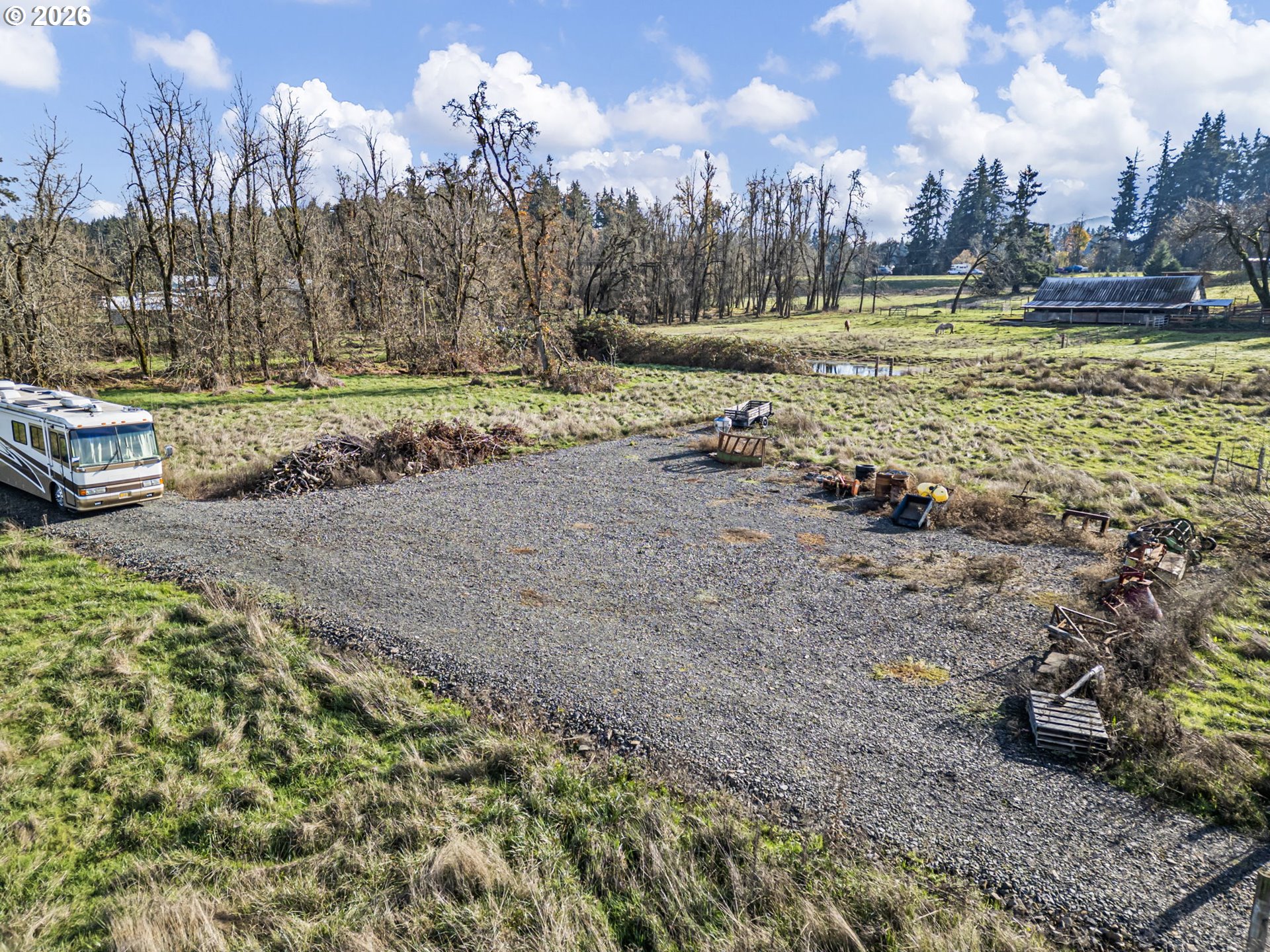 (503) 893-8874Rare Pleasant Hill country property with two tax lots sold together, offering classic rural living, income potential, and future flexibility just minutes from town.The home sits on 4.11 usable acres with open pasture, mature trees, and peaceful valley views. Inside features include wood ceilings, abundant natural light, and a great room with stone fireplace and wood stove. Slider opens to a deck ideal for entertaining or enjoying the scenery. The layout offers 3 bedrooms and 2 bathrooms, including a primary suite with ensuite bath. Multiple outbuildings and covered equipment/boat storage support a variety of uses.Also included is an approx. 20-acre legal parcel with verified lot status, a drilled well, and power at the edge of the property. Approximately 7 acres are leased to a seed farmer, generating $10,500 annually, with additional income from harvest—potentially helpful toward Lane County building permit qualification. Productive ground with income in place adds long-term value. Buyer to perform all due diligence regarding permits, utilities, lease terms, and intended use.