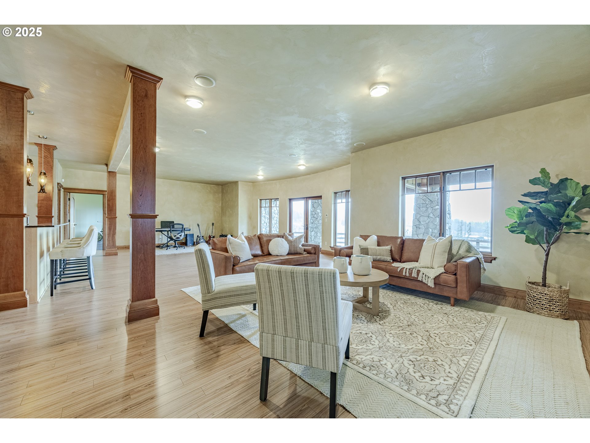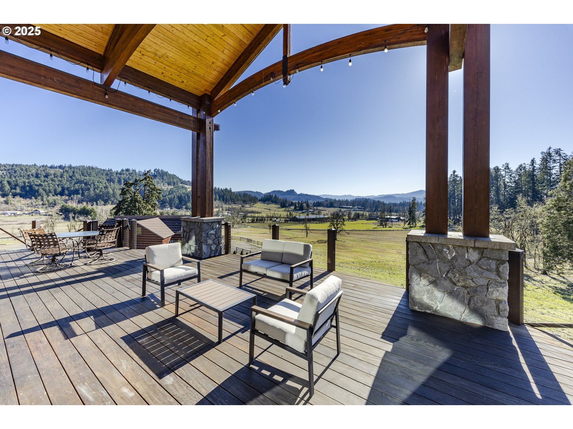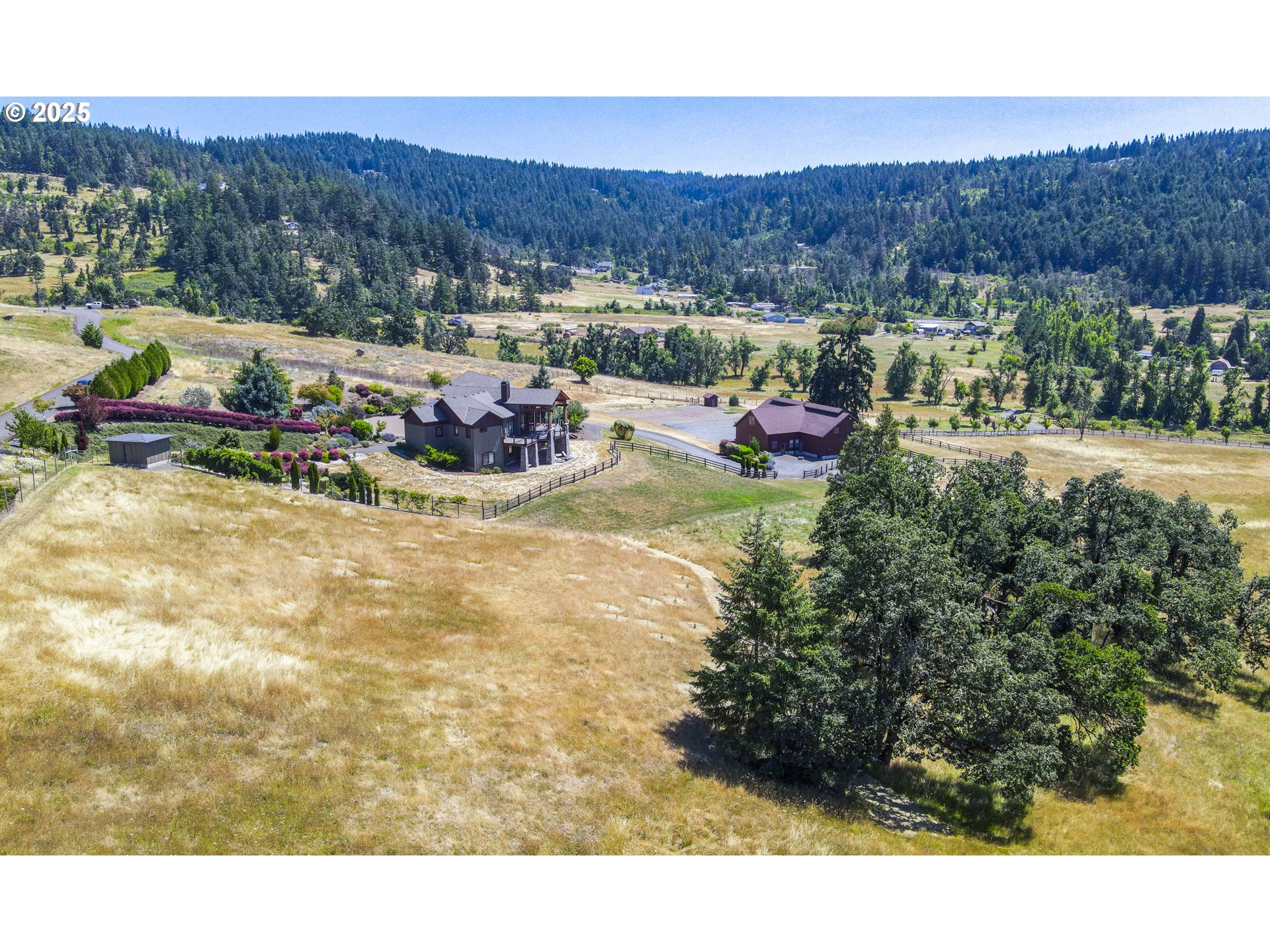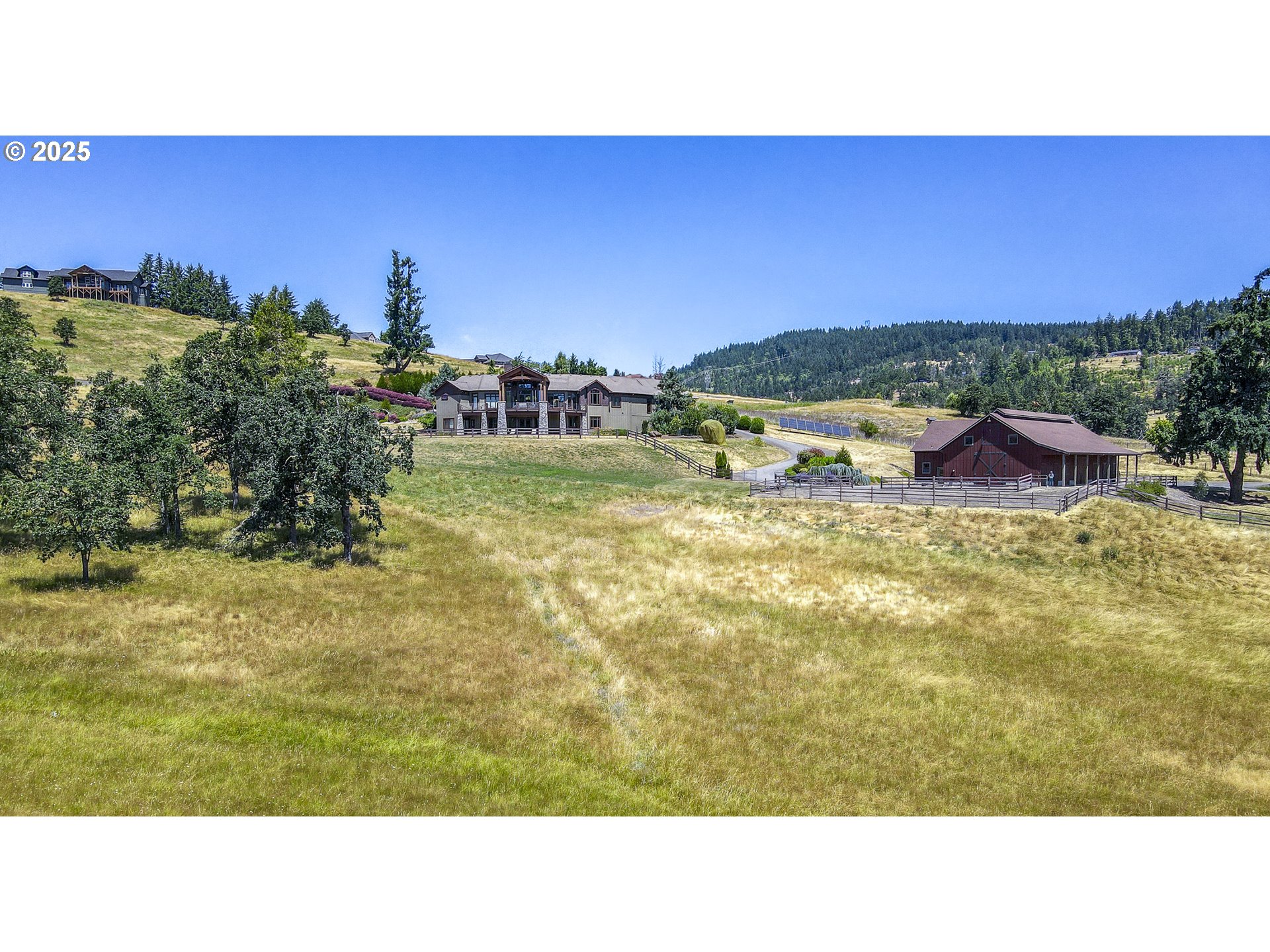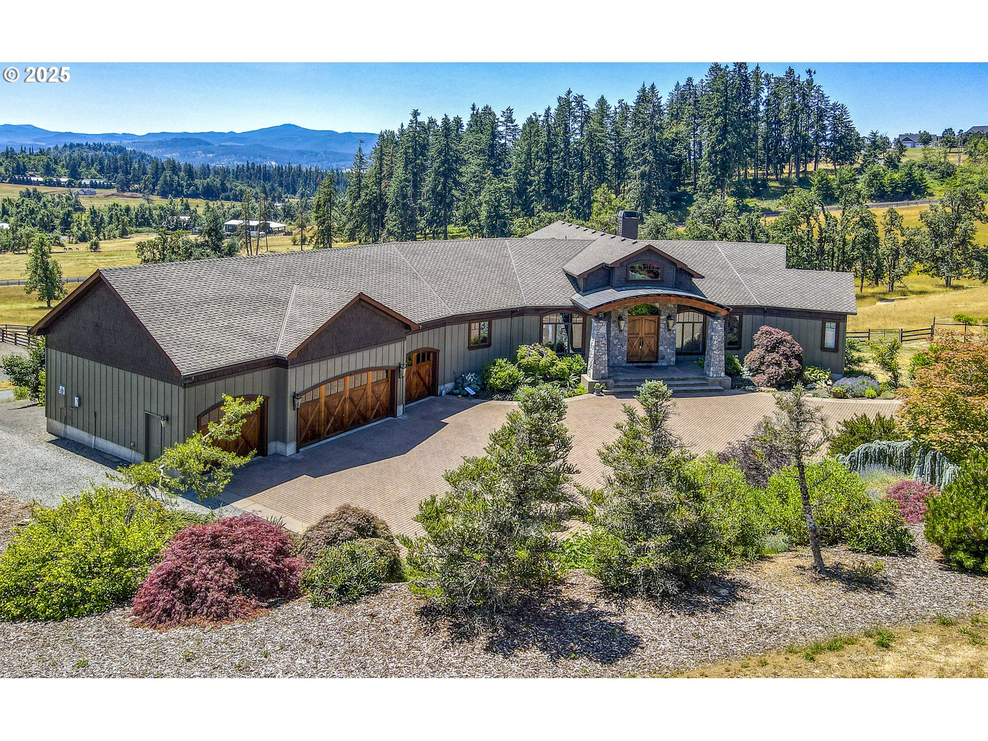 (503) 893-8874Jasper Estates. This stunning 6,482 sq. ft. luxury home is set on 31 picturesque acres with breathtaking valley views. Designed with elegance and comfort in mind, this 4-bedroom, 3 full and 2 half-bath estate showcases exceptional craftsmanship and natural beauty. The Venetian plaster interior adds a refined touch, enhancing the warmth and sophistication found throughout the home. Step inside to 20’ wood-beamed vaulted ceilings, creating an impressive sense of space and grandeur. The gourmet kitchen is thoughtfully designed with high-end SubZero and Wolf appliances, custom cabinetry, and a striking Labradorite island countertop, adding a unique and sophisticated touch. Luxurious details flow throughout, from the grand living spaces to the elegant dining area and inviting fireplace setting. A wine cellar and dedicated workout room add to the home’s appeal, while the geothermal system ensures a highly energy-efficient living environment. Additionally, solar panels provide sustainable energy, reducing costs and environmental impact. The property’s gorgeous hillside setting offers a seasonal creek, privacy and stunning valley views. Outdoor enthusiasts will appreciate the expansive 60’ x 84’ barn, 6-stall horse facility with attached living quarters and tack room, and fenced and cross-fenced pastures. A 100' x 100' sand area is ready for a variety of uses, making this estate as functional as it is beautiful. Additional features include a beautifully designed bedroom/bathroom suite, and oversized windows that frame the surrounding landscape. The open-concept design ensures effortless flow between living spaces, while high-quality finishes add warmth and sophistication. Nestled in a gated community, yet only 15 minutes from town, this estate offers the perfect blend of seclusion and convenience. Whether you seek a refined country lifestyle, space for outdoor pursuits, or a luxurious home surrounded by nature, Jasper Estates is an unparalleled opportunity.