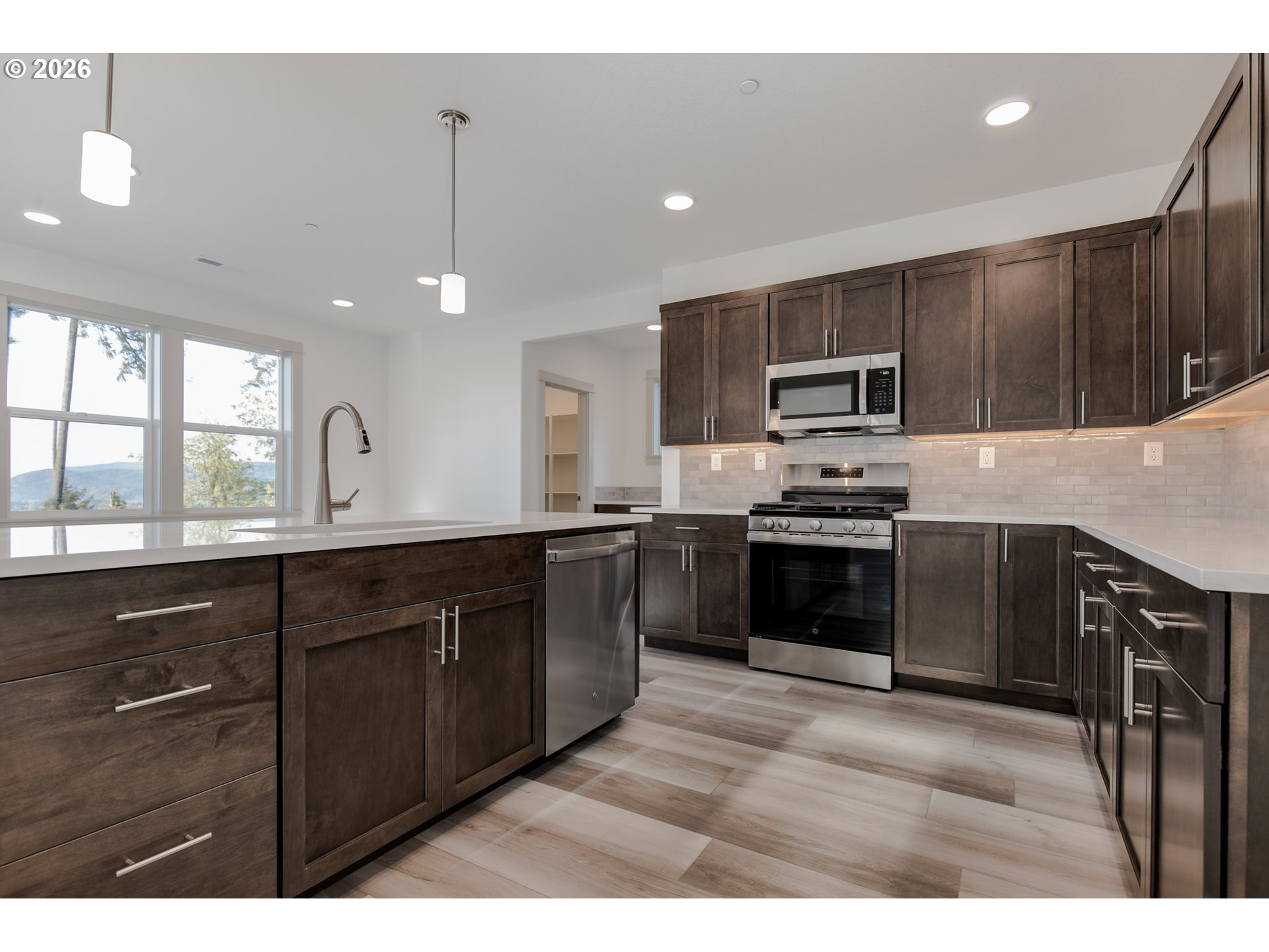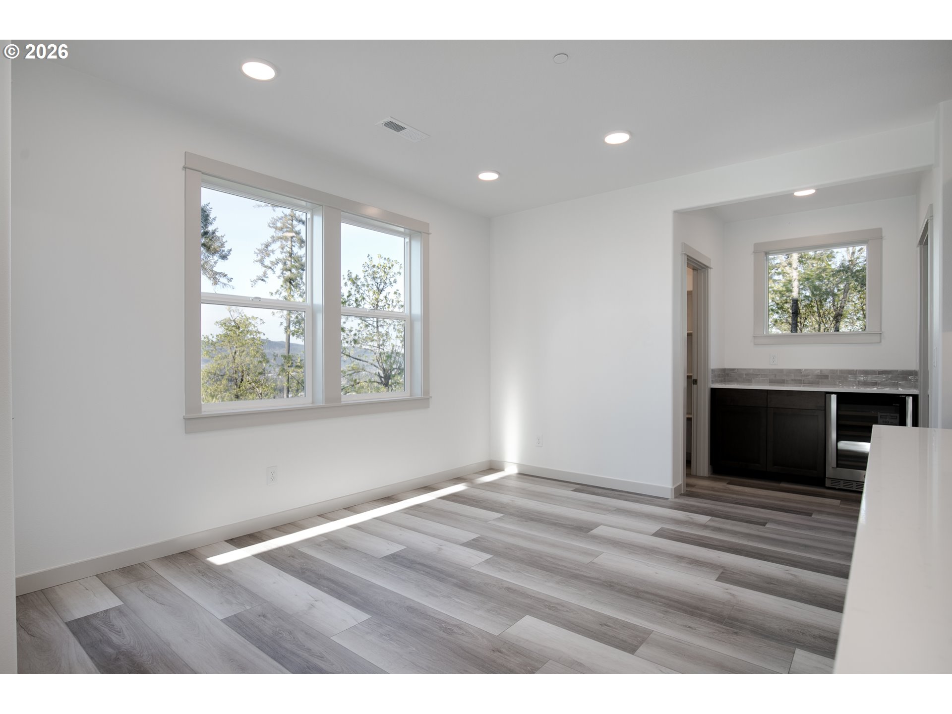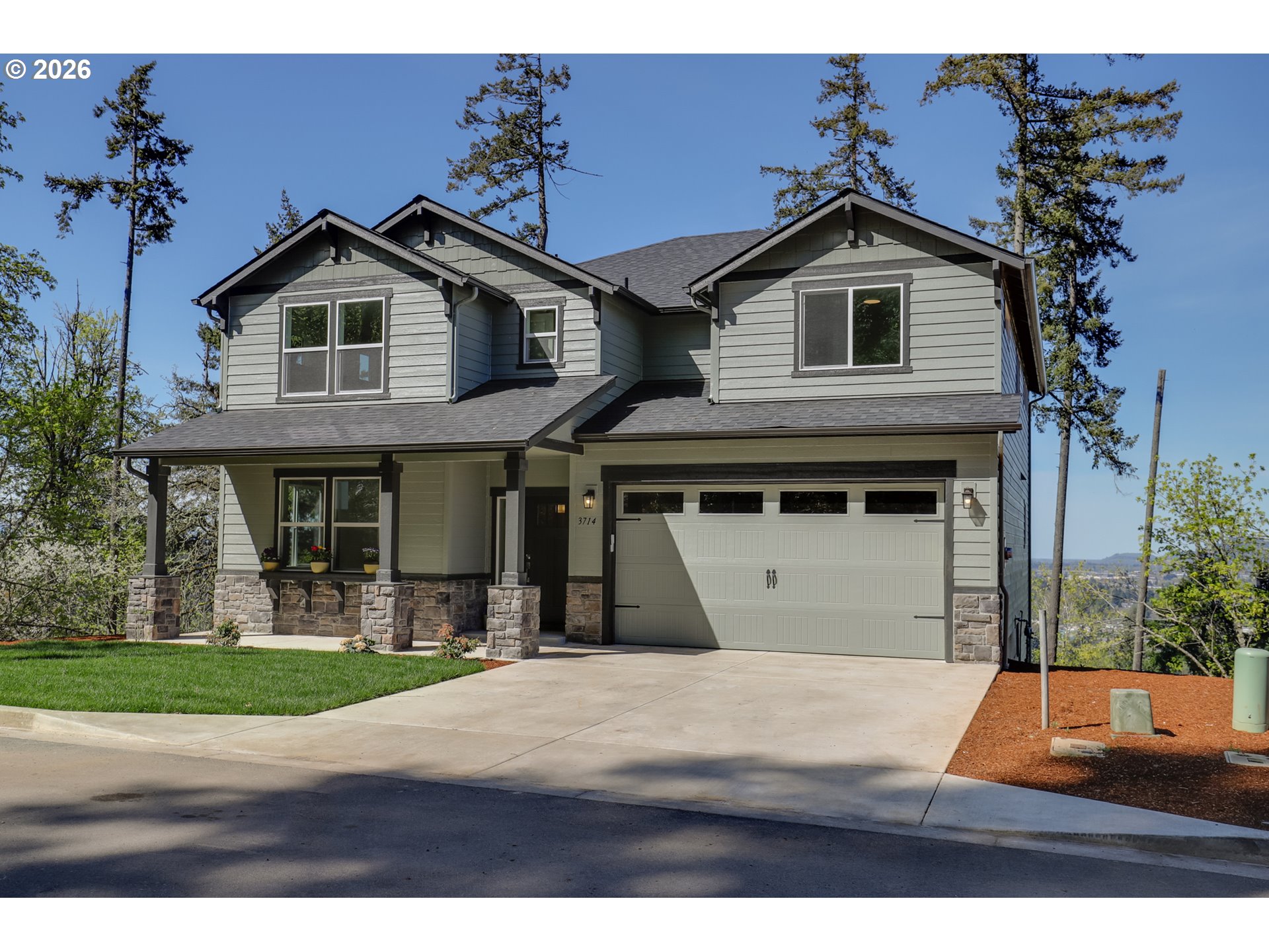 Stunning views! Come experience elevated living in this stunning 2,968 sq ft modern Craftsman home, perfectly positioned to capture breathtaking views overlooking Eugene. Nestled in a serene and private setting, this property is bordered by common area and parkland on three sides—offering unmatched tranquility and connection to nature.Step inside to discover an open-concept layout filled with abundant natural light and thoughtfully designed living spaces. The gourmet kitchen features elegant quartz countertops and flows seamlessly into the main living and dining areas—ideal for both everyday living and entertaining. A stylish beverage bar adds an extra touch of convenience and sophistication, perfect for hosting guests or enjoying a quiet evening at home.The luxurious primary suite is a true retreat, complete with a beautifully appointed bathroom featuring a tiled walk-in shower, relaxing soaker tub, and refined finishes throughout. With its seamless blend of modern design, Craftsman character, comfort, and scenic beauty, this home offers a rare opportunity to enjoy privacy, space, and spectacular views—all in one exceptional property.