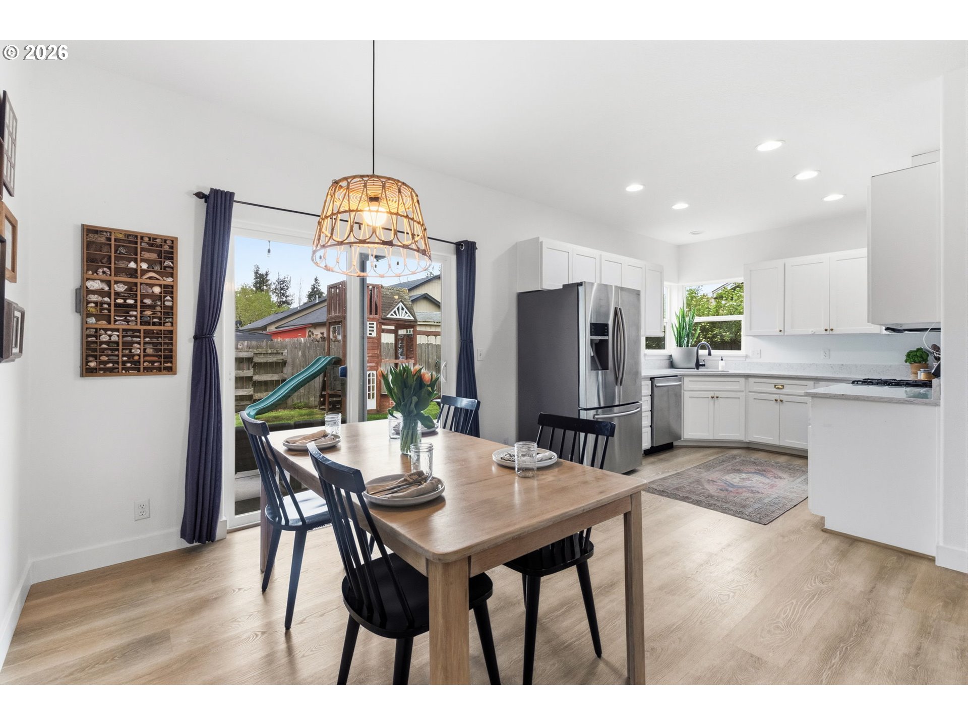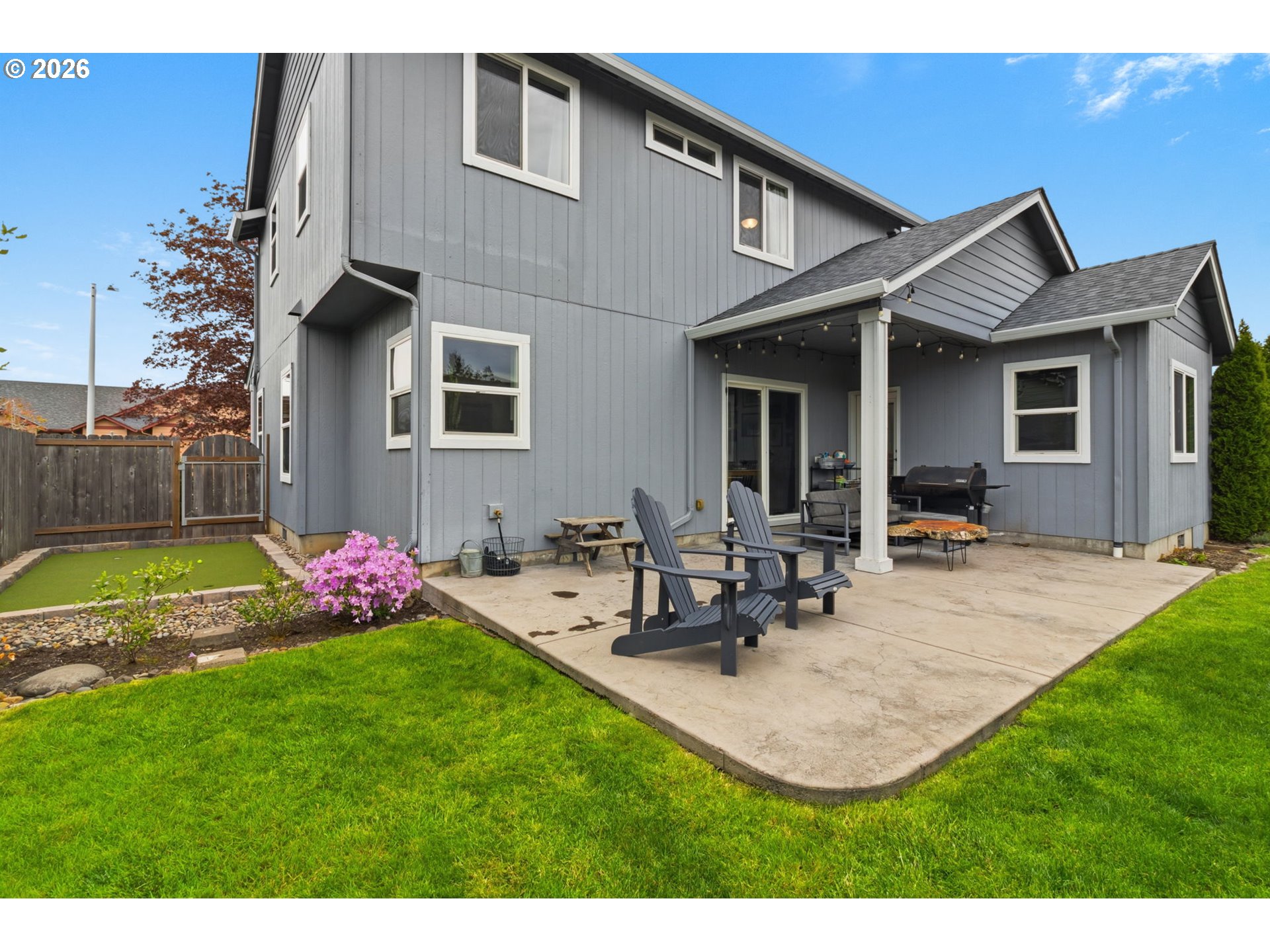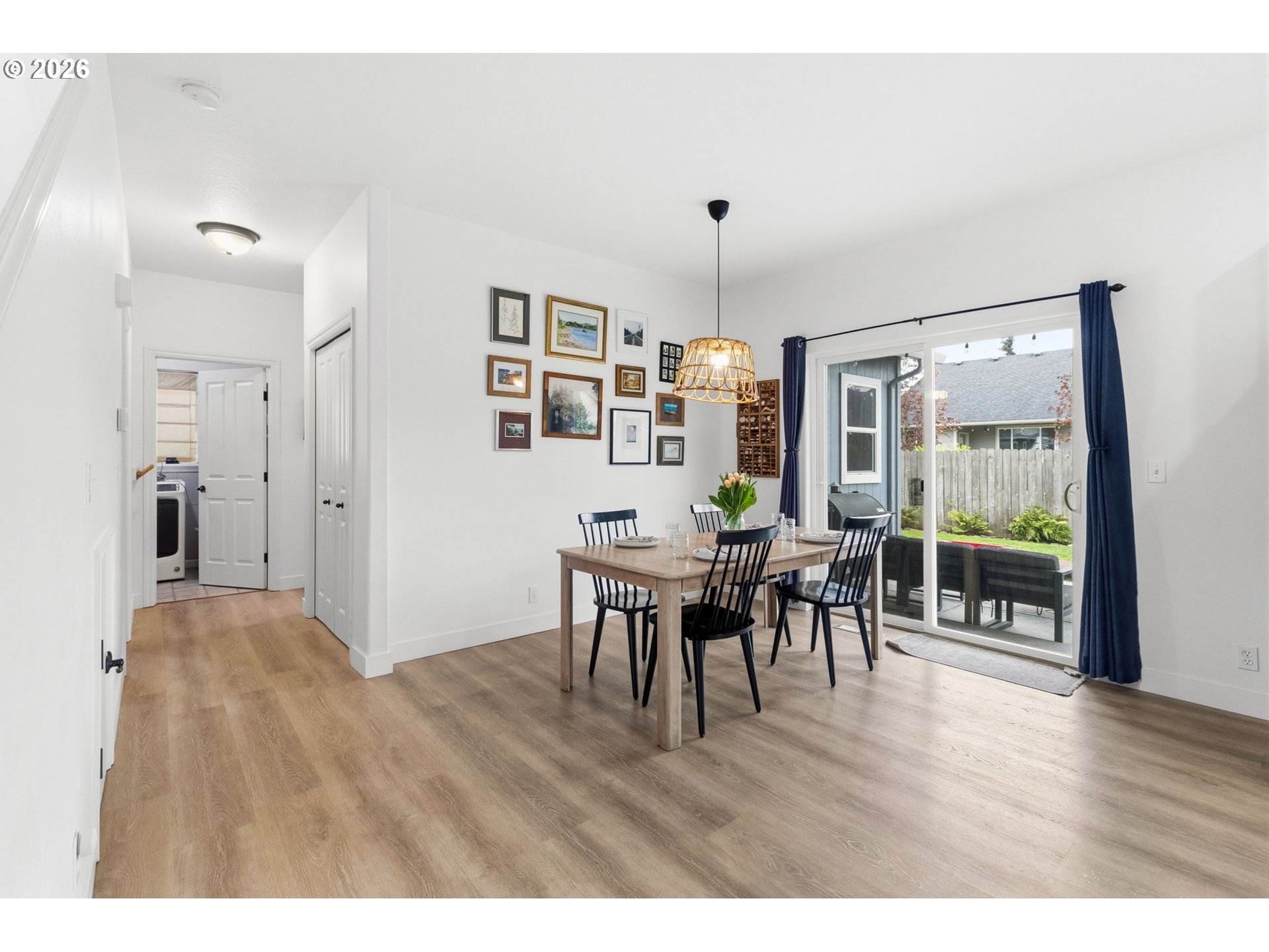 Step into this charming two-story home in and amazng Creswell neighborhood. Filled with natural light, the open-concept living space features soaring ceilings, expansive picture windows, and durable LVP flooring. The bright kitchen offers crisp white cabinetry, stainless steel appliances including a gas range, and an easy flow for everyday living and entertaining.The main floor primary suite boasts a walk-in closet and full bathroom. Upstairs, you’ll find three well-appointed bedrooms and one full bathroom, while a convenient half bath is located on the main level, along with a dedicated laundry and utility room.Enjoy seamless indoor-outdoor living with a sliding door that opens to a fully fenced backyard—perfect for relaxing or hosting gatherings on the spacious patio. Enjoy the firepit, putting green and kids play structure. The finished garage provides ample storage, and there’s plenty of space for RV or boat parking in the driveway. With mature landscaping and great curb appeal, this home is ready to impress—schedule your showing today!