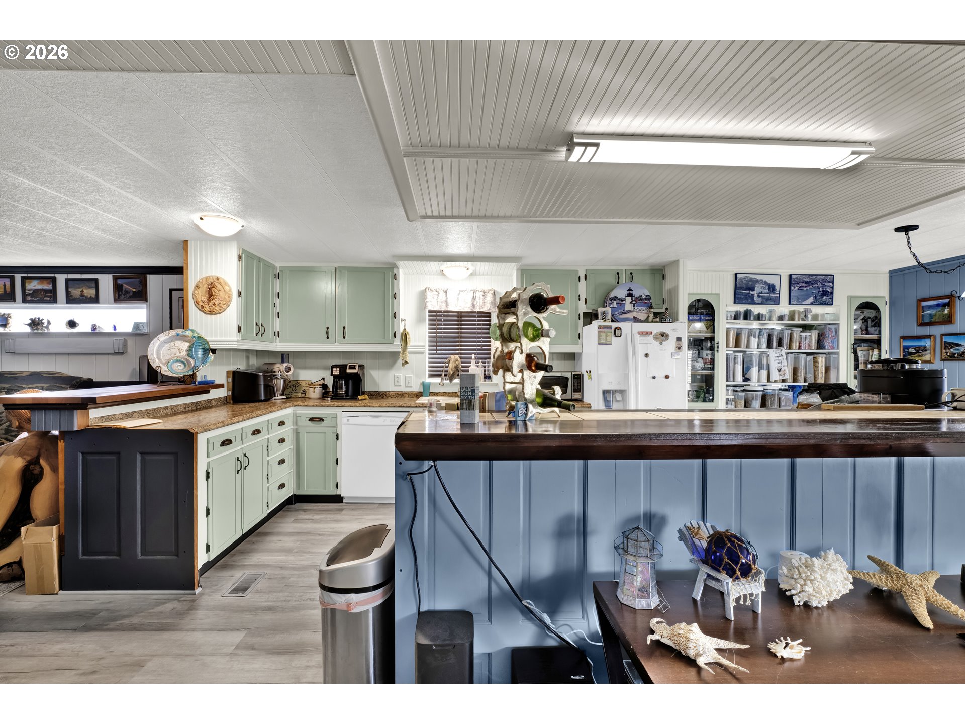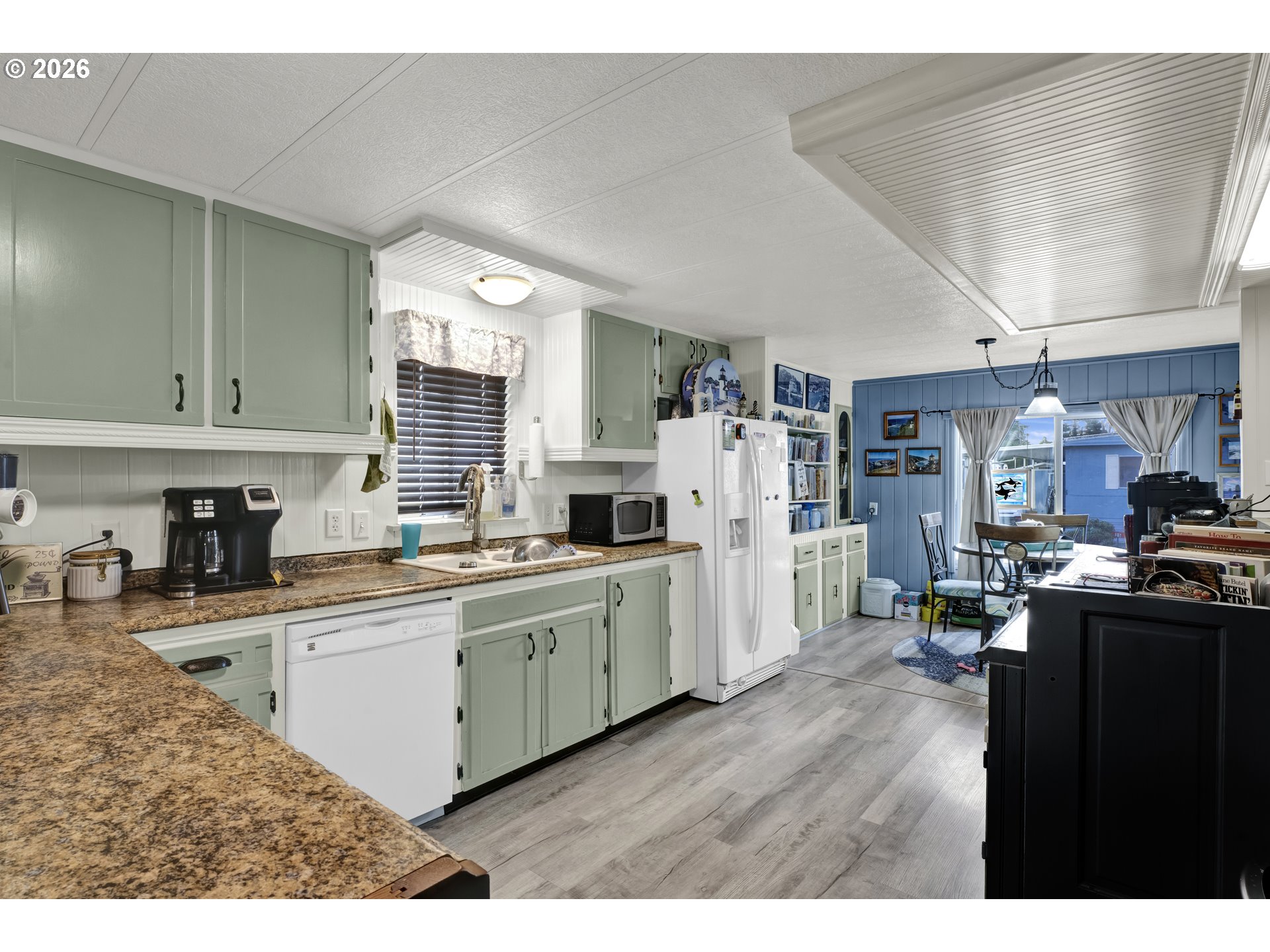 No expense was spared and no detail overlooked in this charming, cozy, and lovingly remodeled double-wide manufactured home located in a welcoming 55+ community. This warm and inviting 3-bedroom, 2-bathroom home has been thoughtfully updated with a new mini-split system for efficient heating and cooling, new luxury vinyl plank flooring throughout, fully updated with PEX plumbing, new insulation beneath the home, and new gutters for added peace of mind.Soft natural light pours in through the south-facing front windows, creating a bright yet comfortable atmosphere in the kitchen and living areas. Throughout the home, hand-painted tongue-and-groove and shiplap walls add character, texture, and a truly cozy feeling, complementing the upgraded LED lighting. The layout offers both a relaxed living room and a warm family room—perfect for quiet mornings or hosting friends. The open kitchen is bright and welcoming, featuring ample counter space and an eat-in counter ideal for casual meals and conversation.The spacious primary bedroom serves as a peaceful retreat and includes an attached bathroom with dual vanities, offering comfort and convenience. Two additional bedrooms and a second full bathroom provide flexible space for guests, hobbies, or a home office.Step outside to enjoy the private covered deck, a fenced area for dogs, and a sweet grassy space perfect for relaxing outdoors. A large Tuff Shed for tools and storage is included, along with the added bonus of a second on-site parking space. This well cared for, move-in-ready home offers comfort, charm, and easy living. Shown by appointment only.