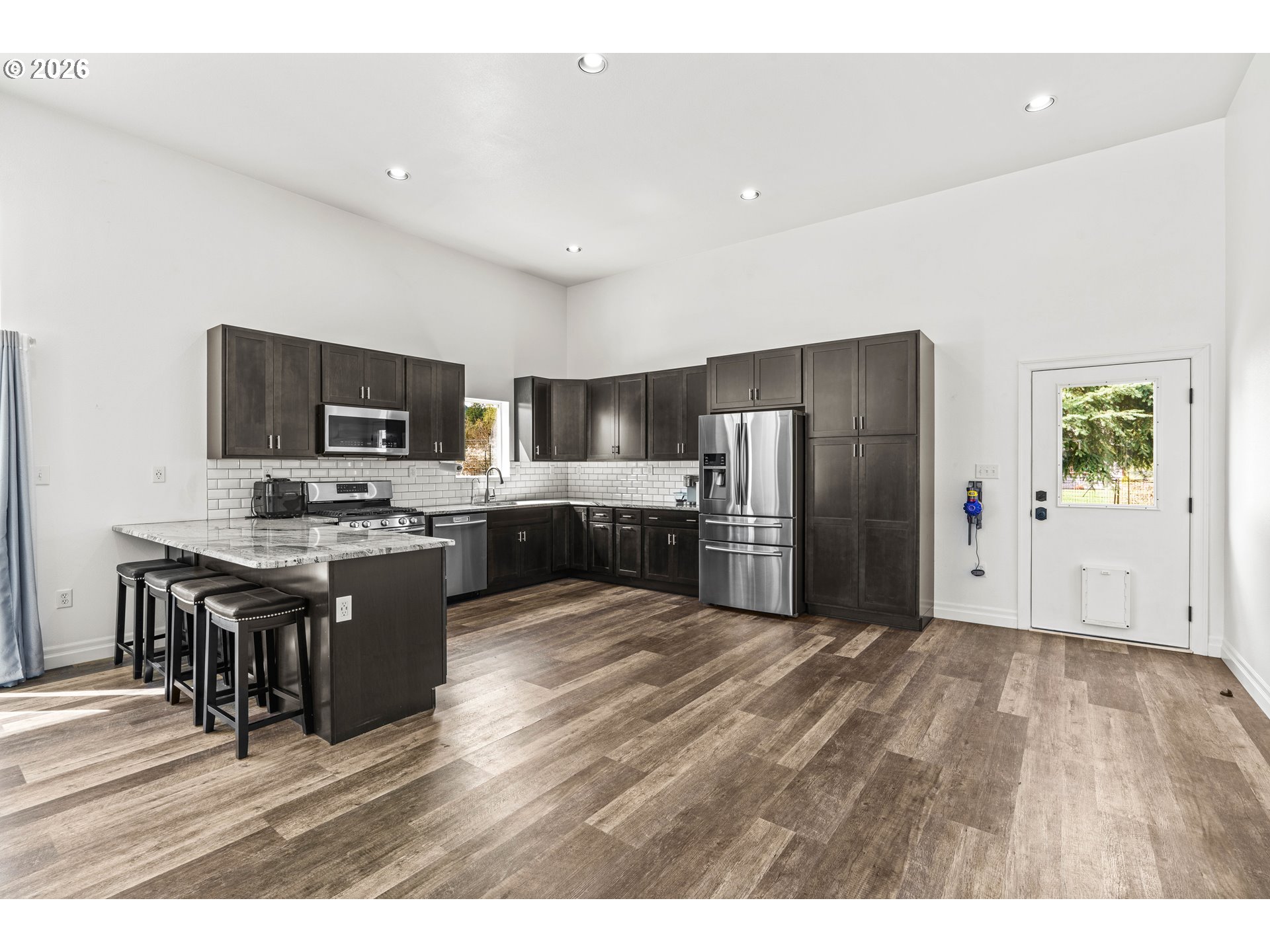 (503) 893-8874Absolutely stunning 2+ acre Dexter property in the Pleasant Hill school district. 2019 built 2-bedroom, 2.5-bath home features granite countertops, laminate flooring throughout, on-demand hot water, under sink water filtration, four ductless heat pump heads, stainless-steel appliances, upstairs washer/dryer hookups, and fabric shades with blackout in the bedroom. Outside amenities include a 30' x 40' three-bay shop/garage with half bath and high ceilings, a 30' x 40' barn with 100A panel, a 12' x 16' well house with roll-up door, a 10' x 12' shed, fenced 20' x 40' raised-bed garden with strawberries, blueberries and raspberries, RV hookup with dump, and a concrete fire pit beside a year-round creek. A buried 500-gallon propane tank supplies the kitchen stove water heater, dryer, BBQ hookup and shop heater — ideal for hobbyists, gardeners and anyone seeking privacy and usable outbuildings on a picturesque parcel. Current configuration is Main house is 1 bed 1 1/2 baths apartment is 1 bed 1 bath. Could converted back to 2 bed 2 1/2 bath home.