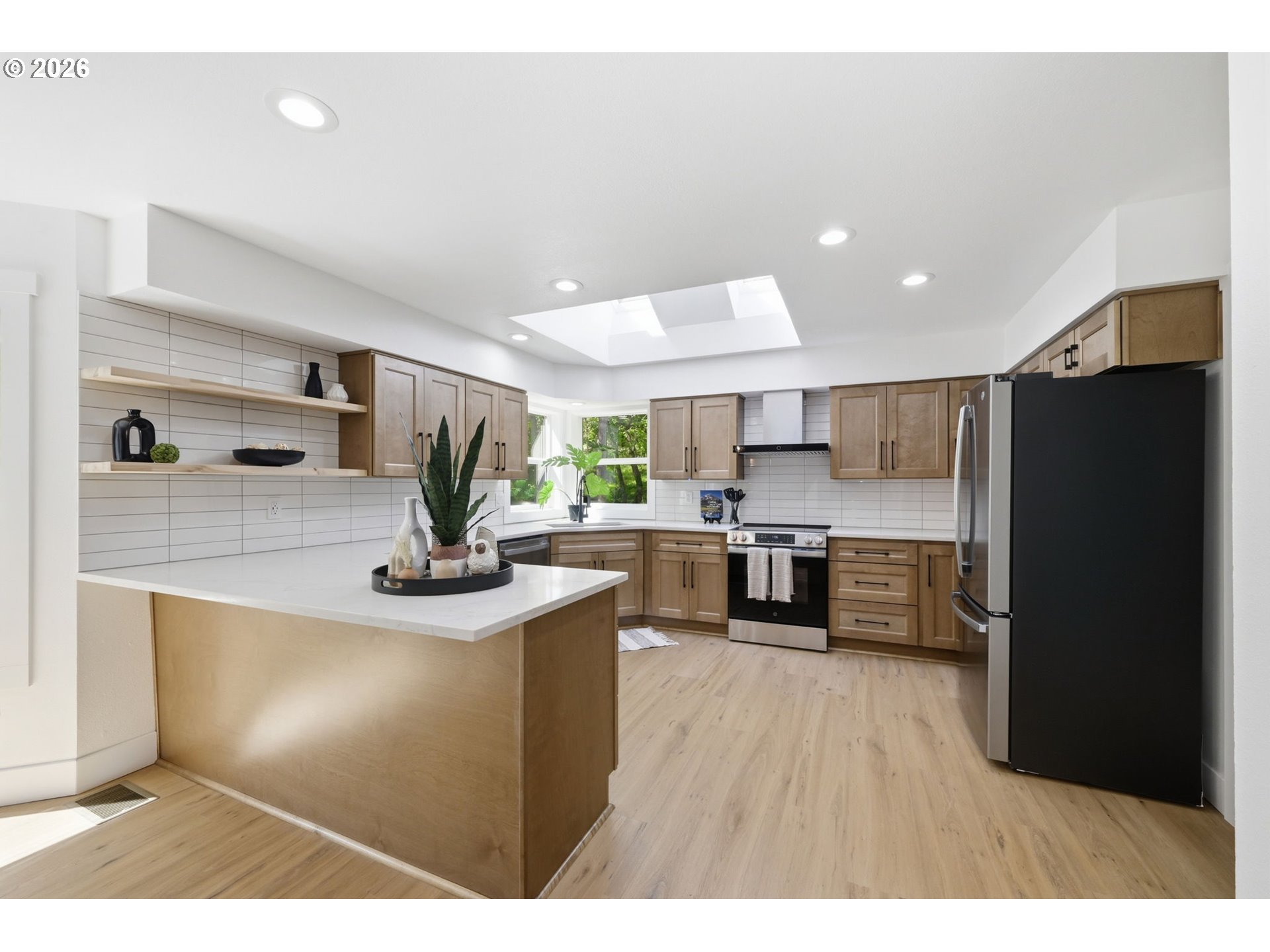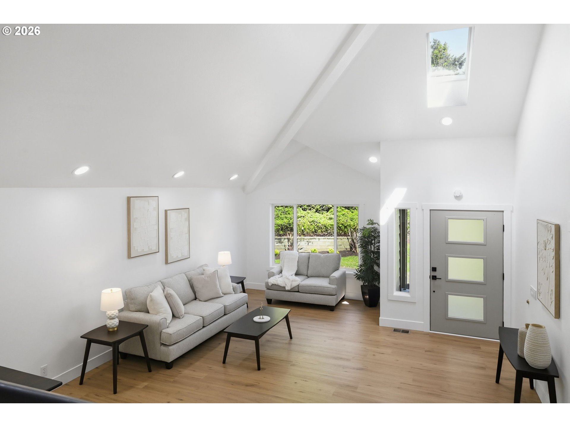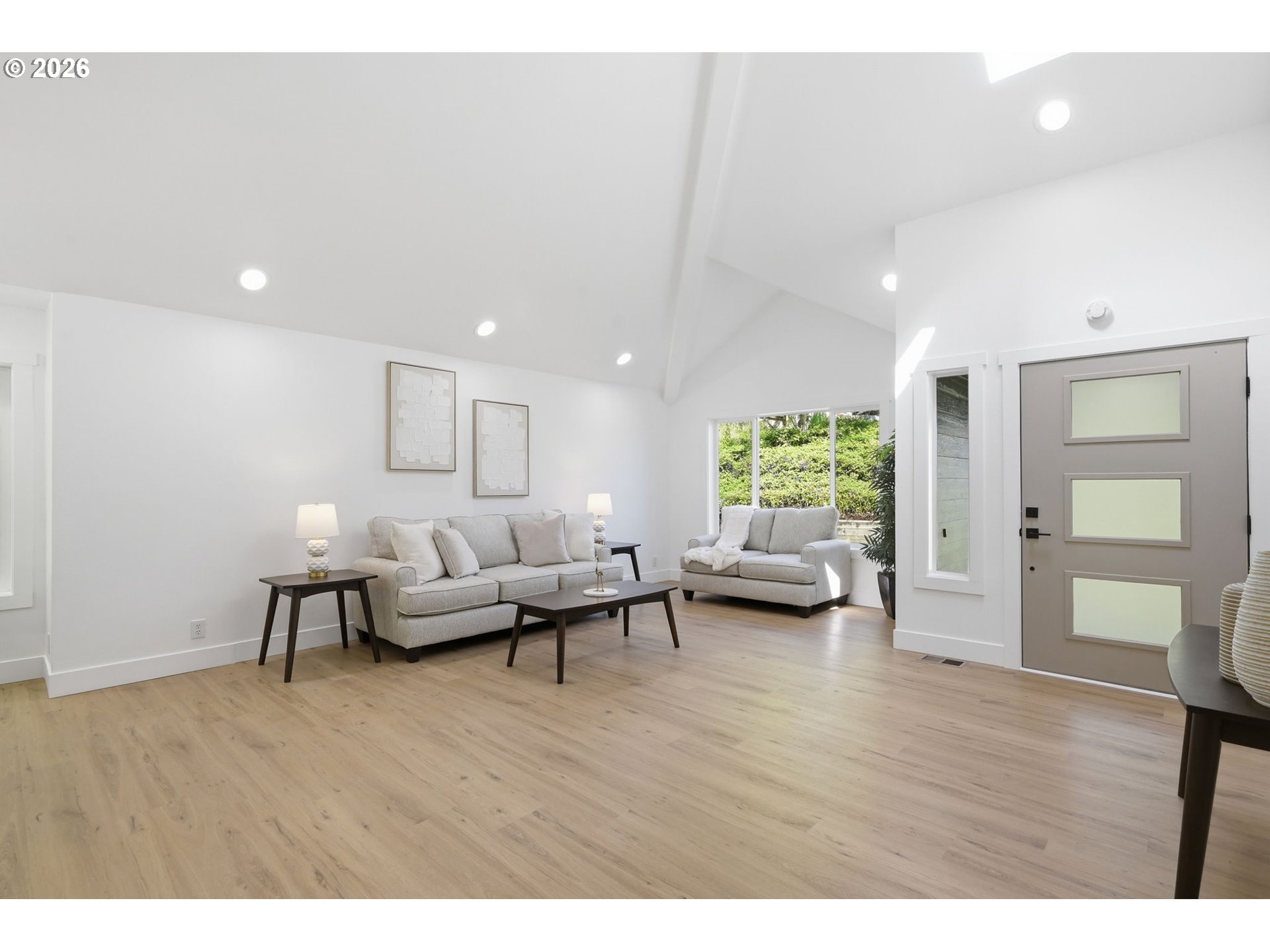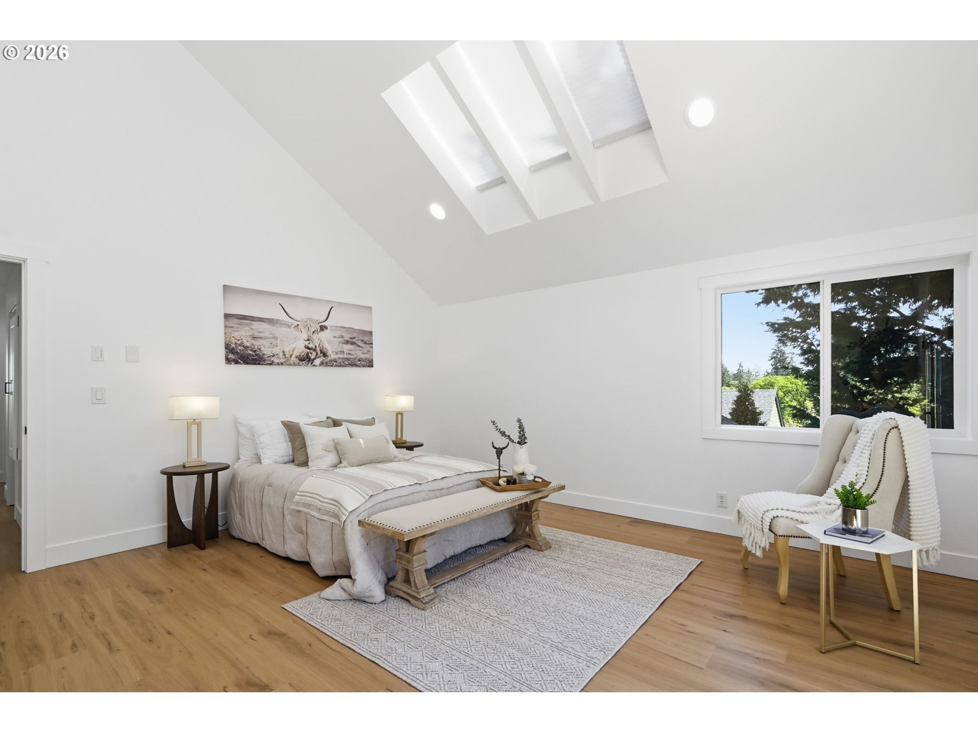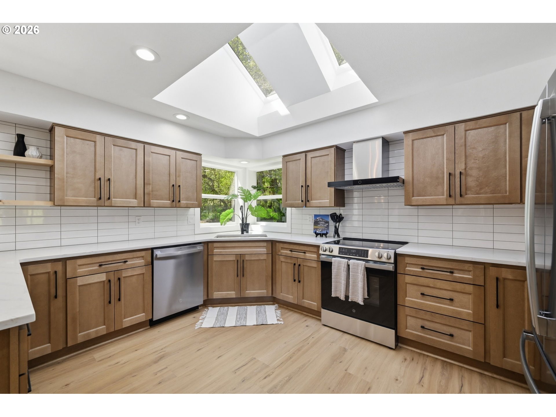 Welcome to this beautifully updated 4-bedroom, 3-bathroom home, ideally situated in one of South Eugene’s most sought-after neighborhoods. Thoughtfully updated with tasteful, high-quality finishes, this home blends elevated design with everyday livability. From the moment you step inside, you’re greeted by soaring vaulted ceilings, skylights, and an open, airy floor plan that fills the home with natural light and an immediate sense of space and warmth. The light-filled kitchen serves as the heart of the home, enhanced by skylights that bathe the space in natural light. Featuring quartz countertops, stainless steel appliances, and a seamless flow into the family room and breakfast nook, it’s perfectly suited for both relaxed mornings and effortless entertaining. The adjoining family room opens to a spacious deck overlooking the backyard—an inviting setting for indoor-outdoor living. The primary suite offers a true retreat, complete with vaulted ceilings, skylights, and a private deck with peaceful backyard views. Upstairs laundry adds convenience, while the home’s layout provides both comfort and thoughtful separation of space. On the main level, the dedicated office offers a quiet and private environment—ideal for working from home, meeting clients, or creating a focused study space, tucked away from the main living areas for added privacy and productivity. Additional highlights include a 3-car garage, central vacuum plumbing, and a new HVAC system ensuring year-round comfort and efficiency. The backyard is designed for enjoyment, featuring a basketball court and plenty of room to relax or play. Set in a peaceful, well-established neighborhood close to schools, shopping, and everyday amenities, this home offers a rare combination of sophistication, space, and location.