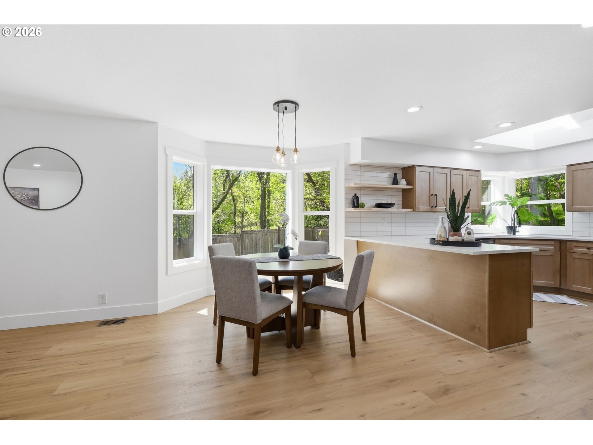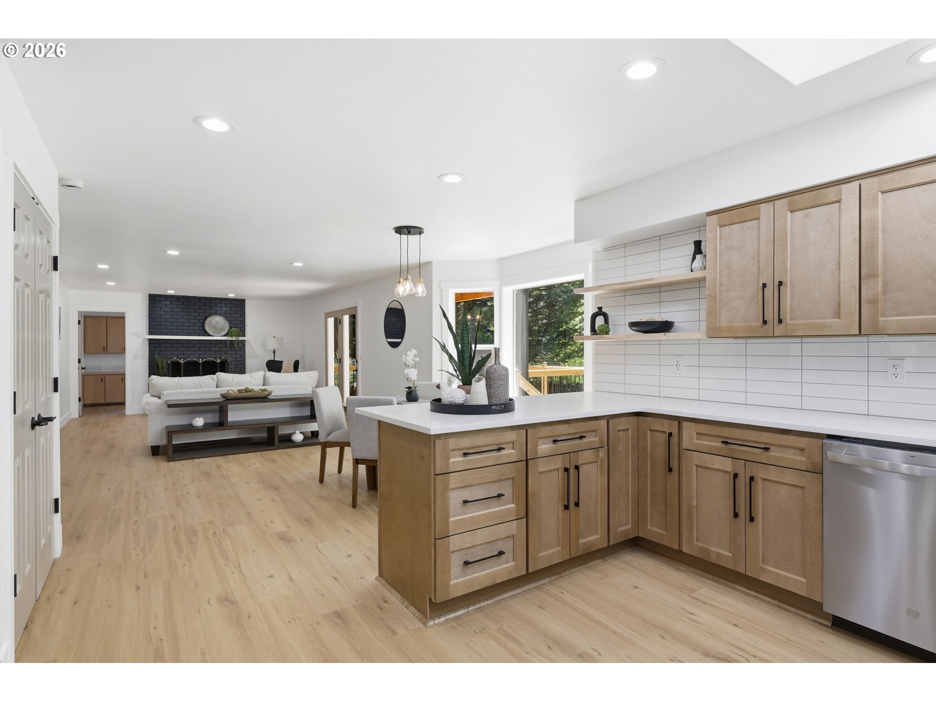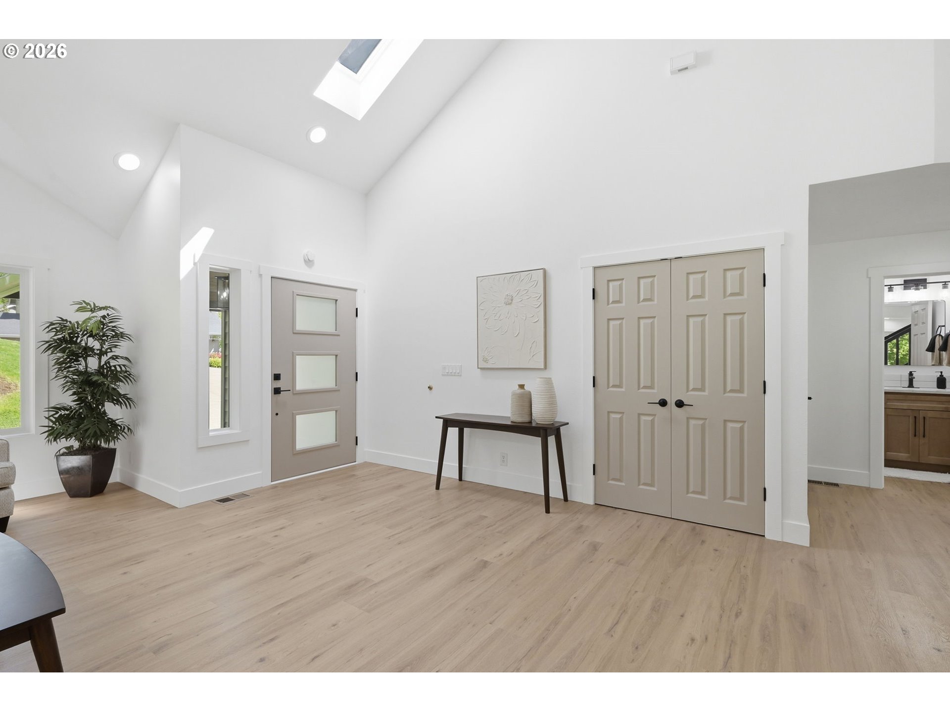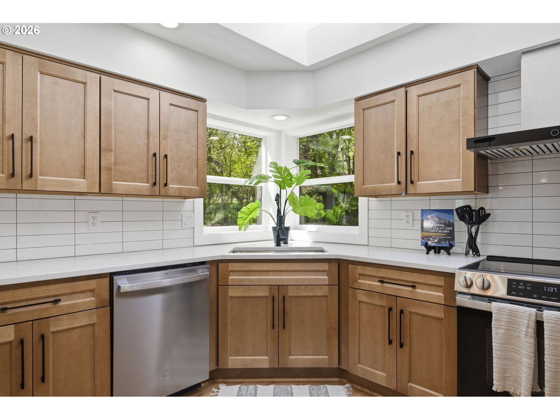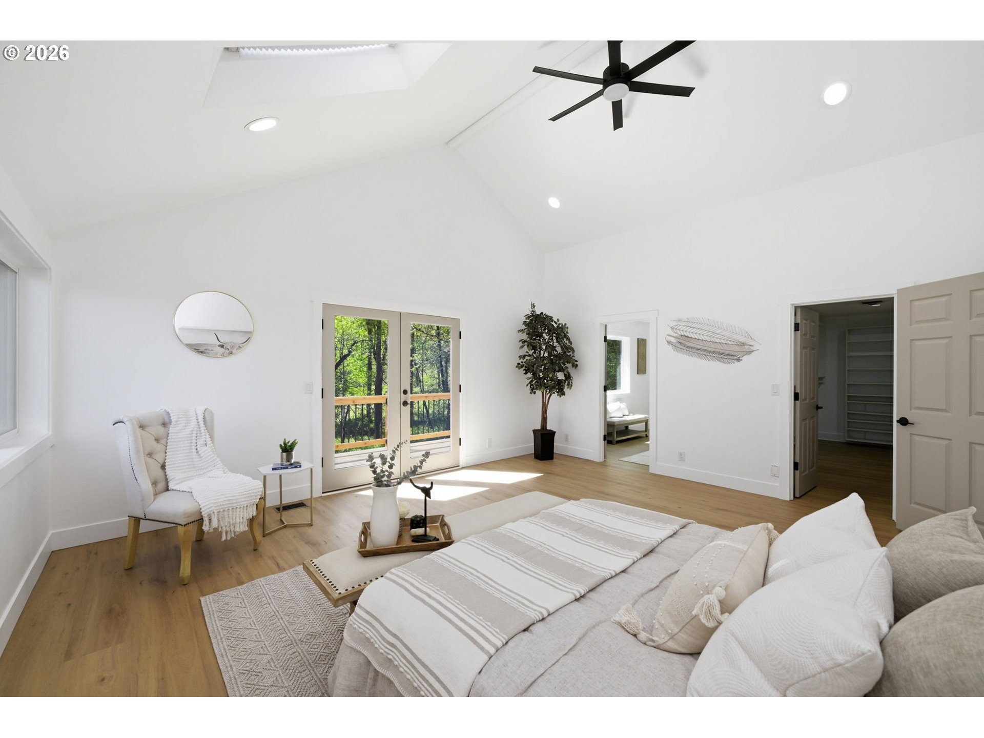 Welcome to this beautifully updated 4-bedroom, 3-bathroom home, ideally situated in one of South Eugene’s most sought-after neighborhoods. Thoughtfully updated with tasteful, high-quality finishes, this home blends elevated design with everyday livability. From the moment you step inside, you’re greeted by soaring vaulted ceilings, skylights, and an open, airy floor plan that fills the home with natural light and an immediate sense of space and warmth. The light-filled kitchen serves as the heart of the home, enhanced by skylights that bathe the space in natural light. Featuring quartz countertops, stainless steel appliances, and a seamless flow into the family room and breakfast nook, it’s perfectly suited for both relaxed mornings and effortless entertaining. The adjoining family room opens to a spacious deck overlooking the backyard—an inviting setting for indoor-outdoor living. The primary suite offers a true retreat, complete with vaulted ceilings, skylights, and a private deck with peaceful backyard views. Upstairs laundry adds convenience, while the home’s layout provides both comfort and thoughtful separation of space. On the main level, the dedicated office offers a quiet and private environment—ideal for working from home, meeting clients, or creating a focused study space, tucked away from the main living areas for added privacy and productivity. Additional highlights include a 3-car garage, central vacuum plumbing, and a new HVAC system ensuring year-round comfort and efficiency. The backyard is designed for enjoyment, featuring a basketball court and plenty of room to relax or play. Set in a peaceful, well-established neighborhood close to schools, shopping, and everyday amenities, this home offers a rare combination of sophistication, space, and location.