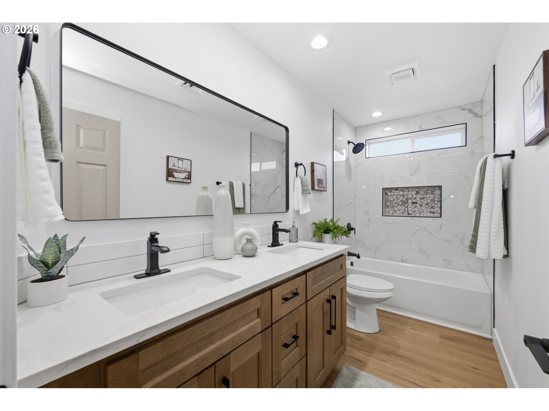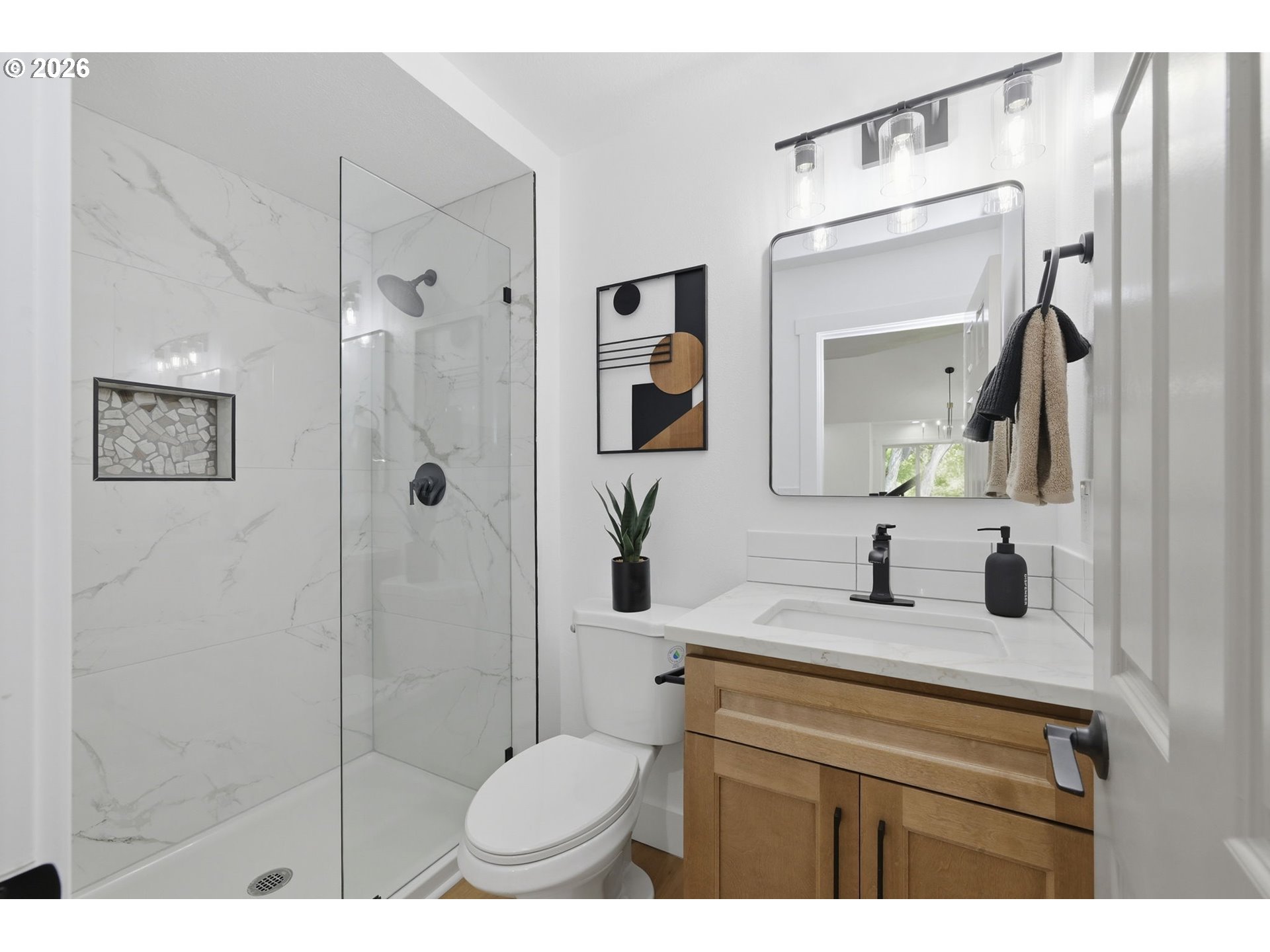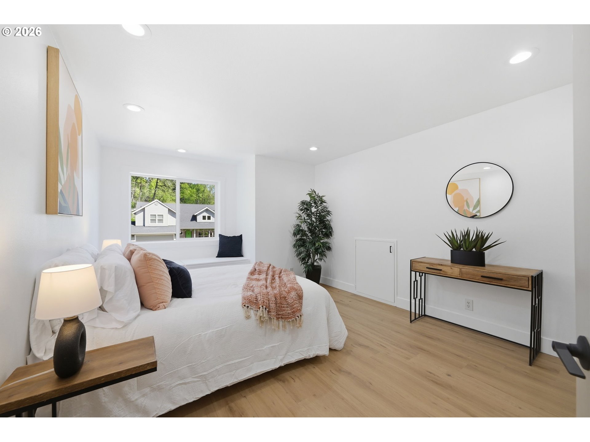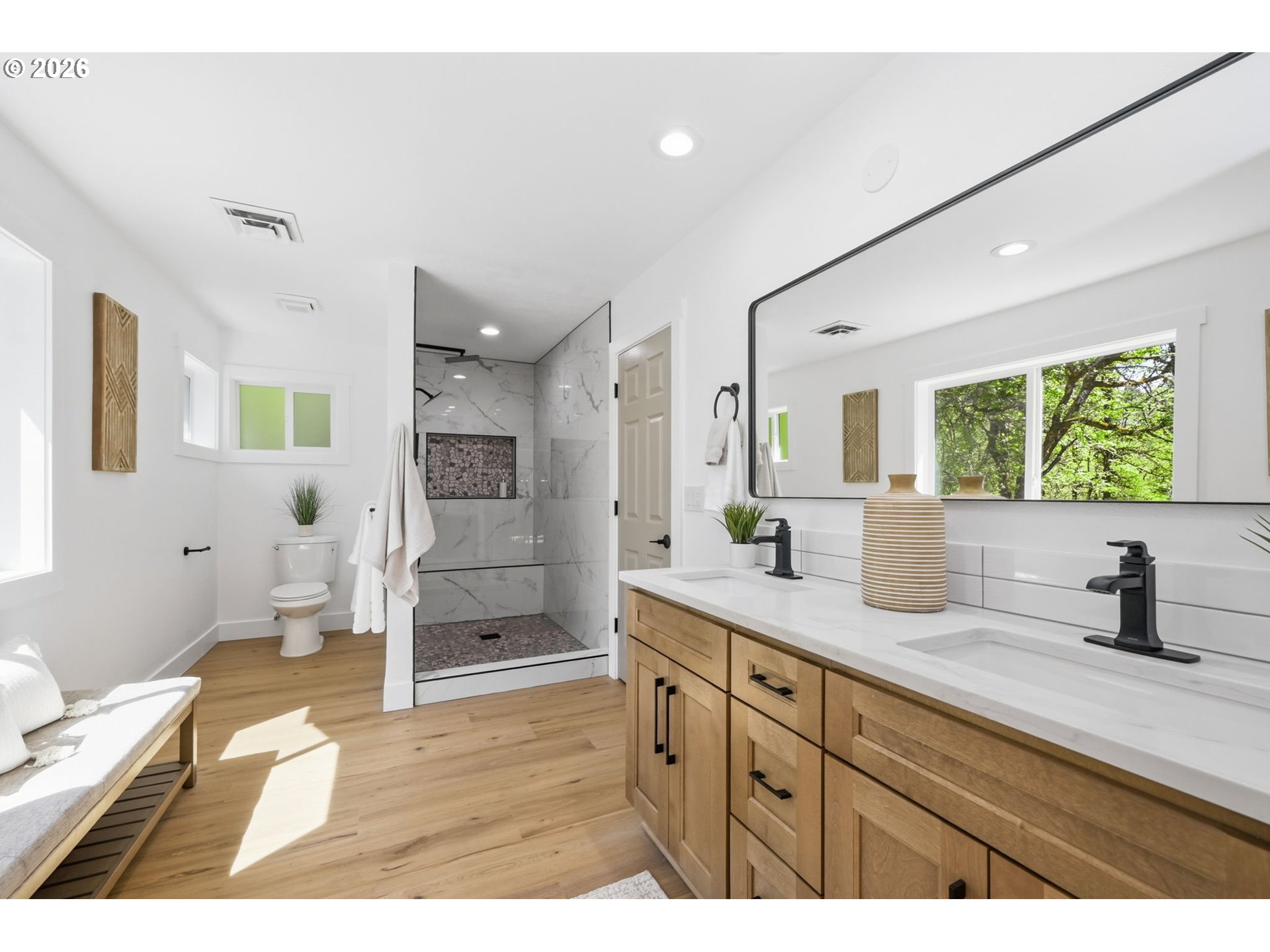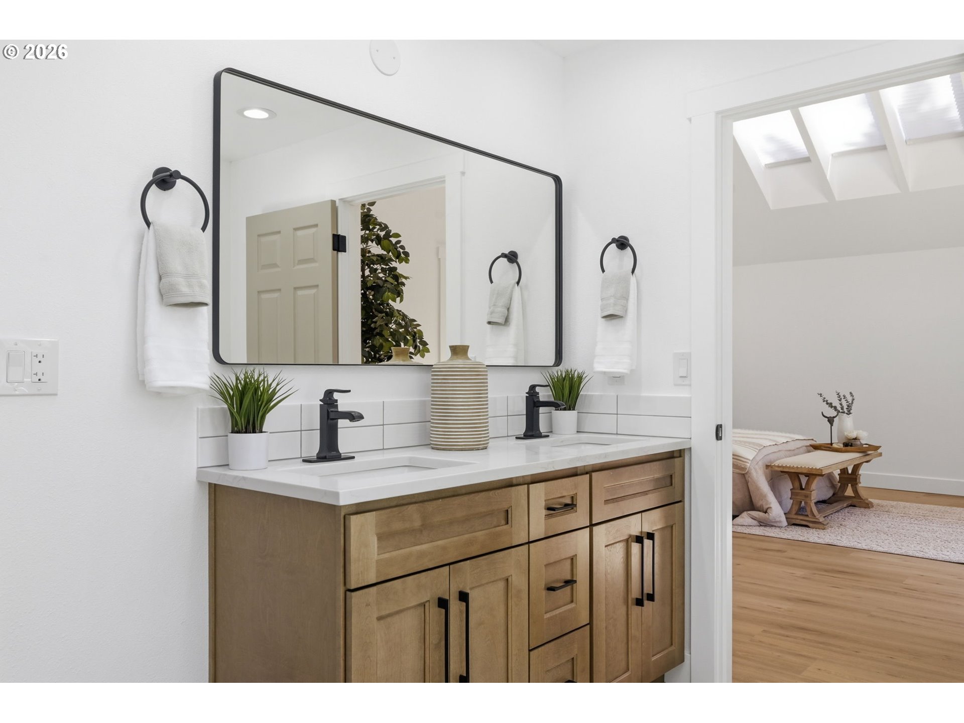 Welcome to this beautifully updated 4-bedroom, 3-bathroom home, ideally situated in one of South Eugene’s most sought-after neighborhoods. Thoughtfully updated with tasteful, high-quality finishes, this home blends elevated design with everyday livability. From the moment you step inside, you’re greeted by soaring vaulted ceilings, skylights, and an open, airy floor plan that fills the home with natural light and an immediate sense of space and warmth. The light-filled kitchen serves as the heart of the home, enhanced by skylights that bathe the space in natural light. Featuring quartz countertops, stainless steel appliances, and a seamless flow into the family room and breakfast nook, it’s perfectly suited for both relaxed mornings and effortless entertaining. The adjoining family room opens to a spacious deck overlooking the backyard—an inviting setting for indoor-outdoor living. The primary suite offers a true retreat, complete with vaulted ceilings, skylights, and a private deck with peaceful backyard views. Upstairs laundry adds convenience, while the home’s layout provides both comfort and thoughtful separation of space. On the main level, the dedicated office offers a quiet and private environment—ideal for working from home, meeting clients, or creating a focused study space, tucked away from the main living areas for added privacy and productivity. Additional highlights include a 3-car garage, central vacuum plumbing, and a new HVAC system ensuring year-round comfort and efficiency. The backyard is designed for enjoyment, featuring a basketball court and plenty of room to relax or play. Set in a peaceful, well-established neighborhood close to schools, shopping, and everyday amenities, this home offers a rare combination of sophistication, space, and location.