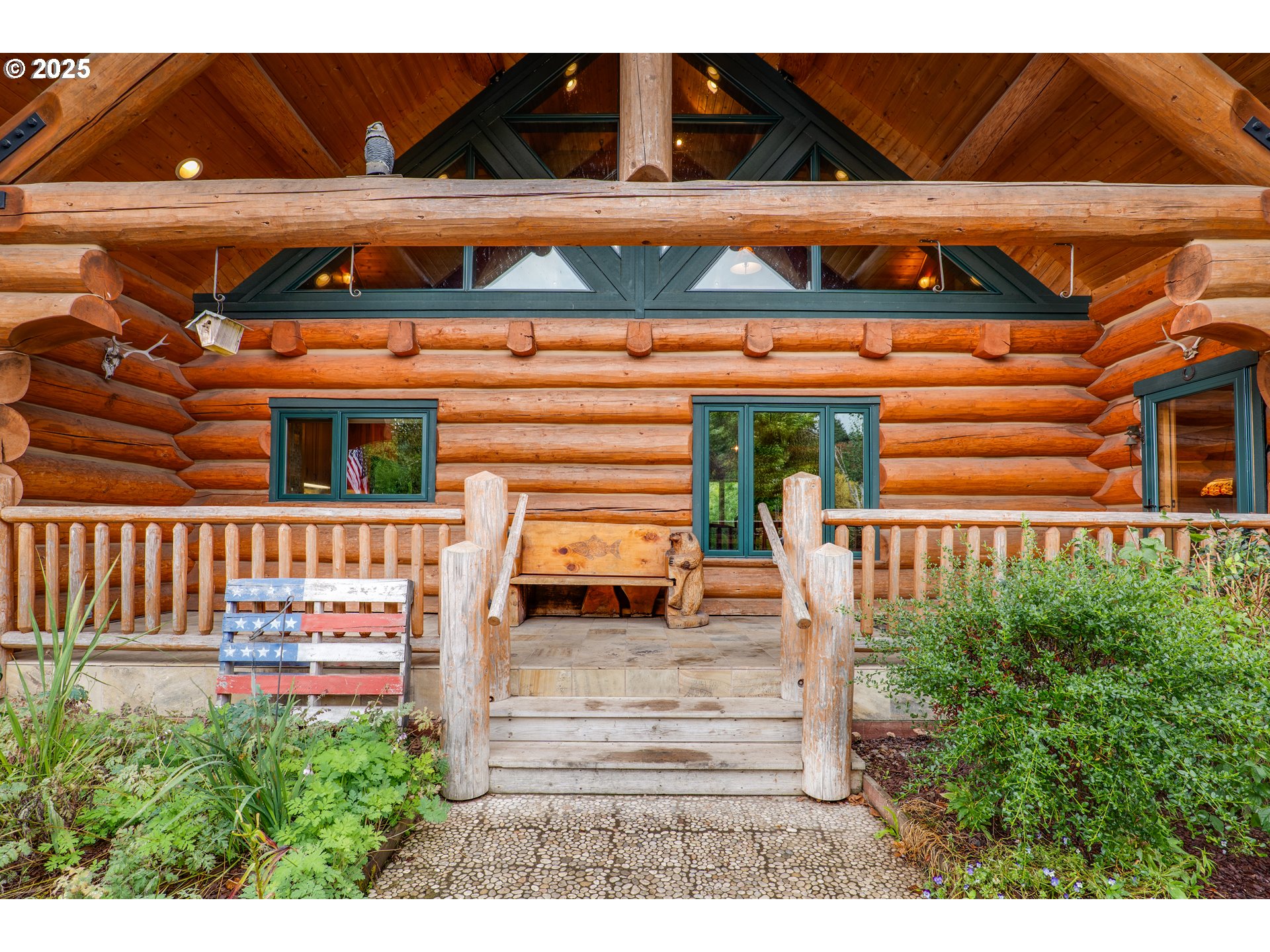 WOW! A True Custom Log Home on Little Fall Creek! Discover the rare opportunity to own a real log home with nearly one acre of land and an impressive 225' of creek frontage. With a flood certificate in place, no flood insurance is required—a huge advantage for peace of mind. This handcrafted log home is filled with luxury finishes and high-end details throughout: *Granite counters, custom tile backsplashes, and rich wood cabinetry *Zoned radiant heated tile floors on the main level for year-round comfort *Certified wood stove, ceiling fans, and designer lighting *Walls of windows and three doors opening to a full-length deck overlooking the creek *Covered front porch with slate and stone details*Durable “lifetime” metal roof. The main-floor primary suite is a true retreat, 24 feet wide, with direct access to the deck, an oversized walk-in closet with custom built-ins, and a spa-like bath featuring a no-step custom stone and tile shower plus dual vanities. Upstairs offers flexibility and charm with a built-in bed in the secondary bedroom, a spacious loft overlooking the living room with creek views, and an additional unfinished bonus room—perfect for a second primary suite, studio, or office. Every room offers high ceilings, abundant natural light, and sweeping views of the yard, creek, and nature beyond. The immense back deck seamlessly extends your living space into the outdoors, where the grassy yard with fruit trees slopes gently to the water’s edge. For storage and hobbies, the property includes: *A detached 24x24’ oversized two-car garage*A massive 40’ wide, six-car shop *Dedicated RV parking with hookup. This is more than a home—it’s a lifestyle of comfort, craftsmanship, and natural beauty on Little Fall Creek.
