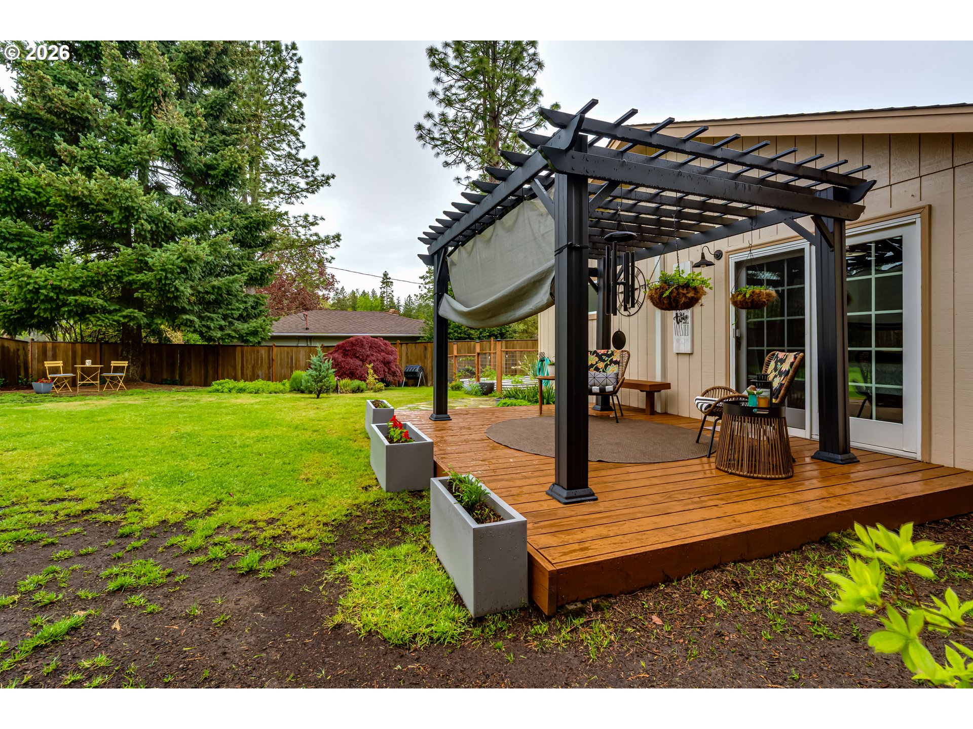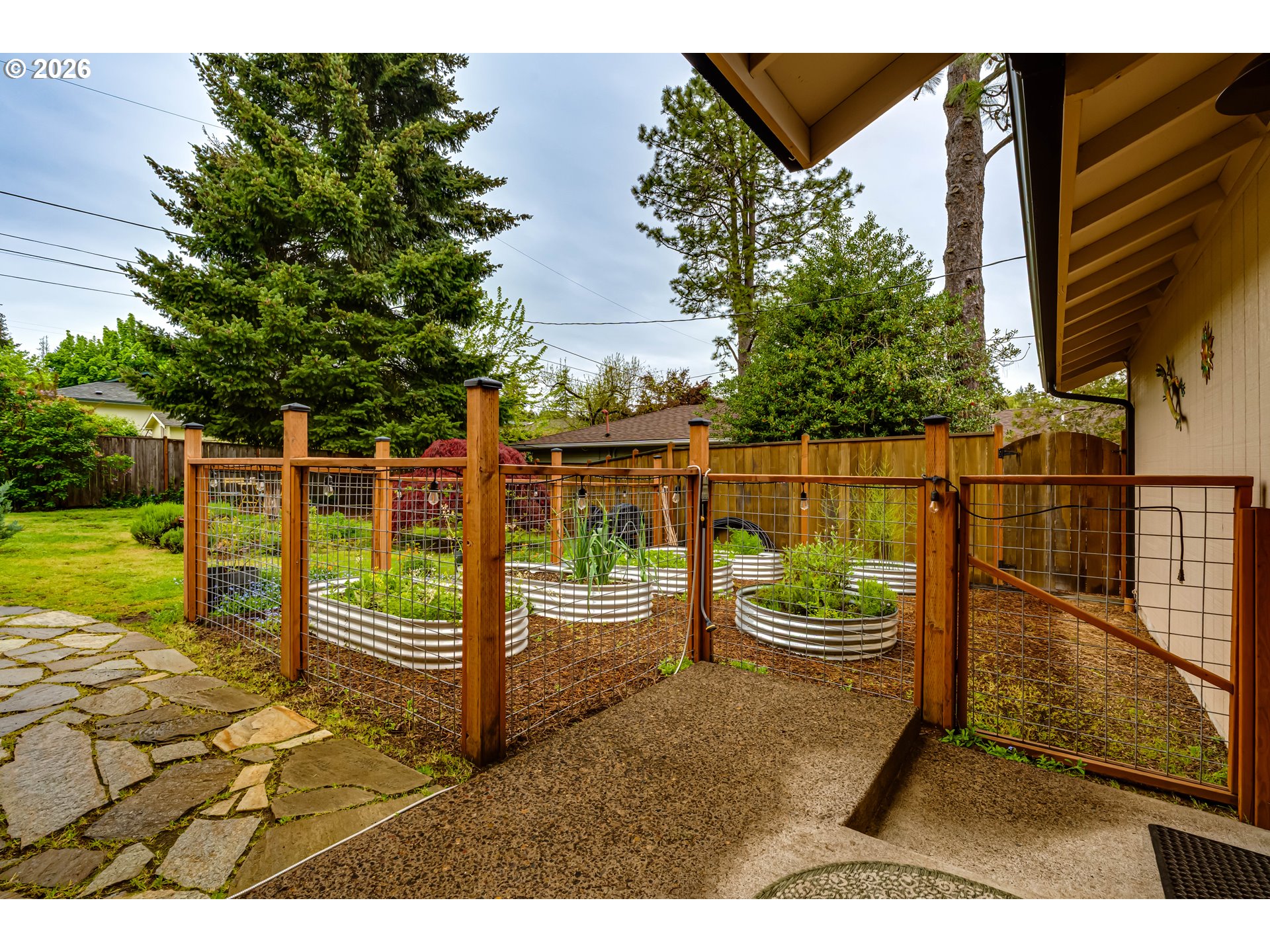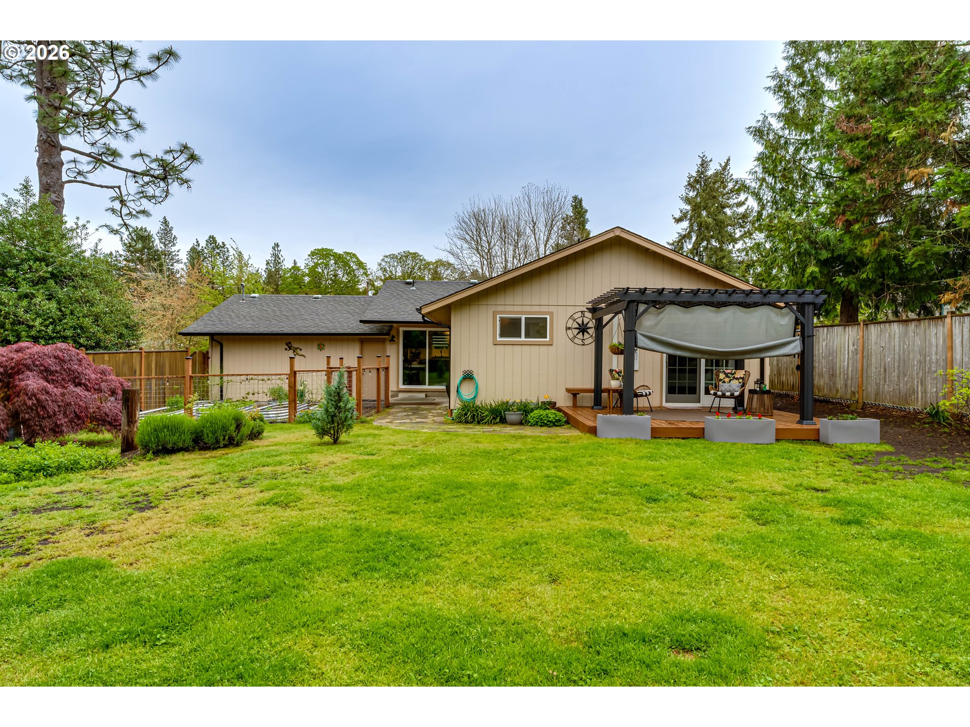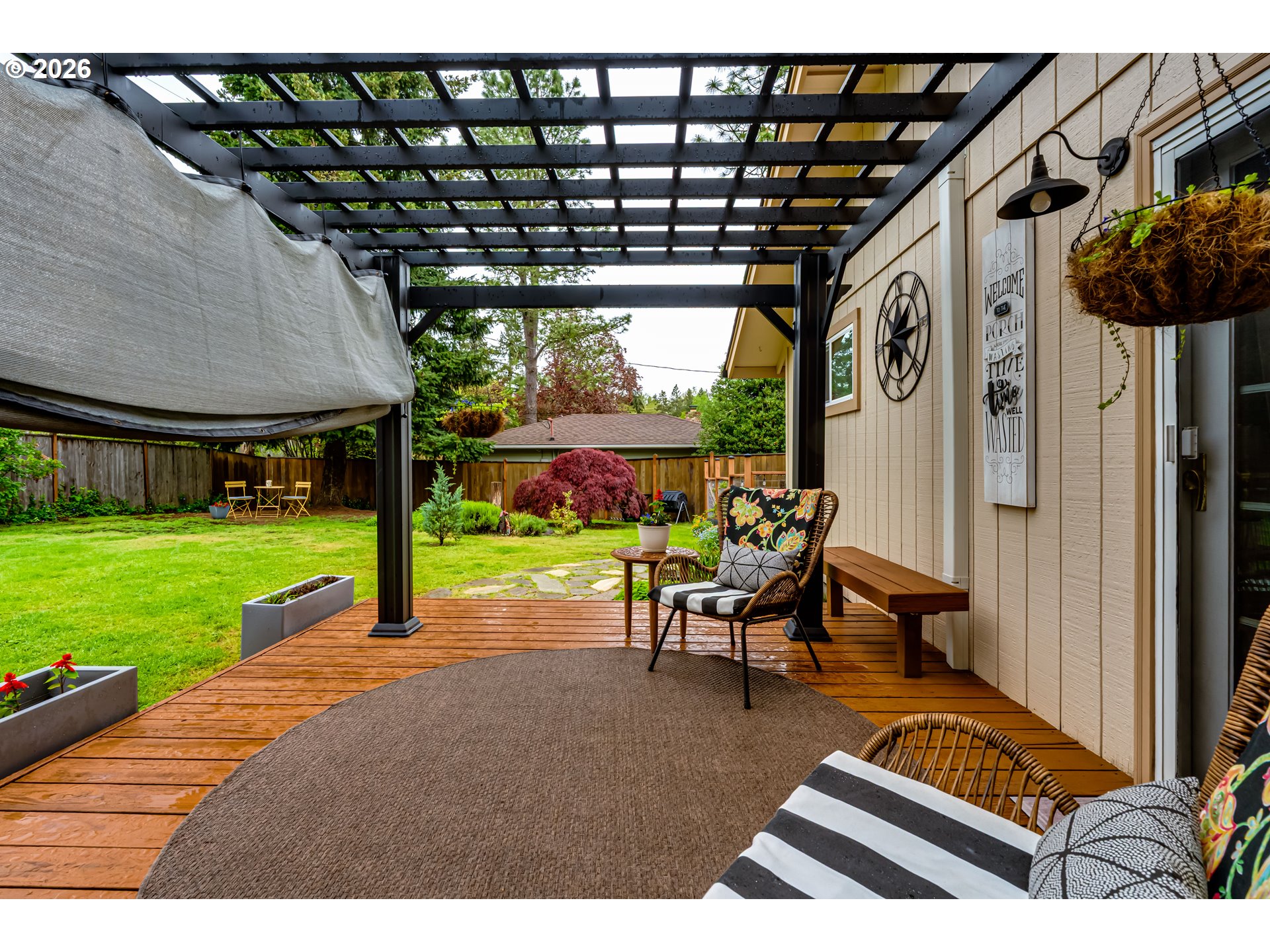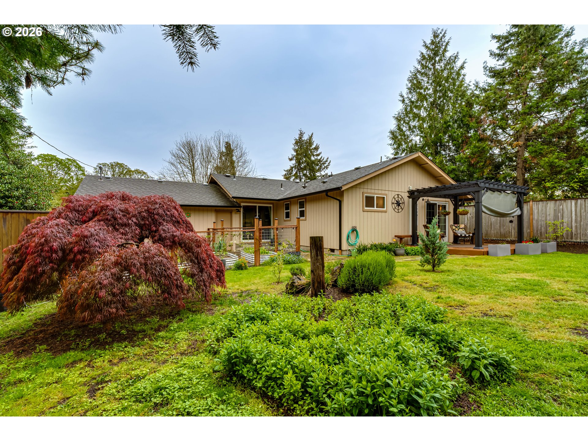 Set on a corner .18-acre lot in a well-established neighborhood, this 2-bedroom, 2-bath home reflects a thoughtful mix of updates, functionality, and comfortable living. The remodeled kitchen is clean and modern, with all new stainless steel appliances, a glass tile backsplash, and a designated dining area that opens to the backyard through a slider—allowing natural light and an easy connection to the outdoors. Newer LVP flooring, windows and sliding door, zebra shades, and updated fixtures and hardware throughout are paired with key system upgrades, including a newer ductless setup and water heater. The primary suite opens directly onto a deck with a pergola, creating a natural extension of the living space outdoors. The yard is landscaped and fully fenced, with an updated sprinkler system, recently planted Little Gem Magnolias and Moonglow Junipers, and a dedicated garden area with raised beds and irrigation already in place. New gutters and downspouts add another layer of practical improvement. A two-car garage provides storage and convenience. Close to shopping, dining, parks, and schools, the location keeps daily needs within easy reach without sacrificing neighborhood feel.