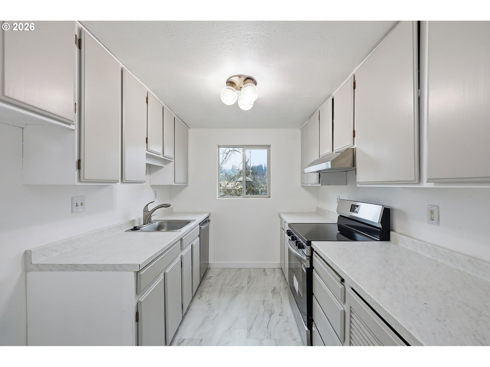 Welcome to this delightful 2-bedroom, 1-bath unit in the thriving Edgewood Villa Condominiums, close to shopping, busline, downtown Eugene, and more. Refreshed vinyl laminate flooring throughout lends a spacious feel; updated countertops, dishwasher, and disposal in the kitchen for peace of mind for years to come. New toilet and vanity in bathroom. New interior paint throughout. This home also features vinyl windows, a small storage unit, designated parking spot & low HOA monthly dues to cover a number of amenities. A wonderful location and home for those who appreciate convenience and walkability!