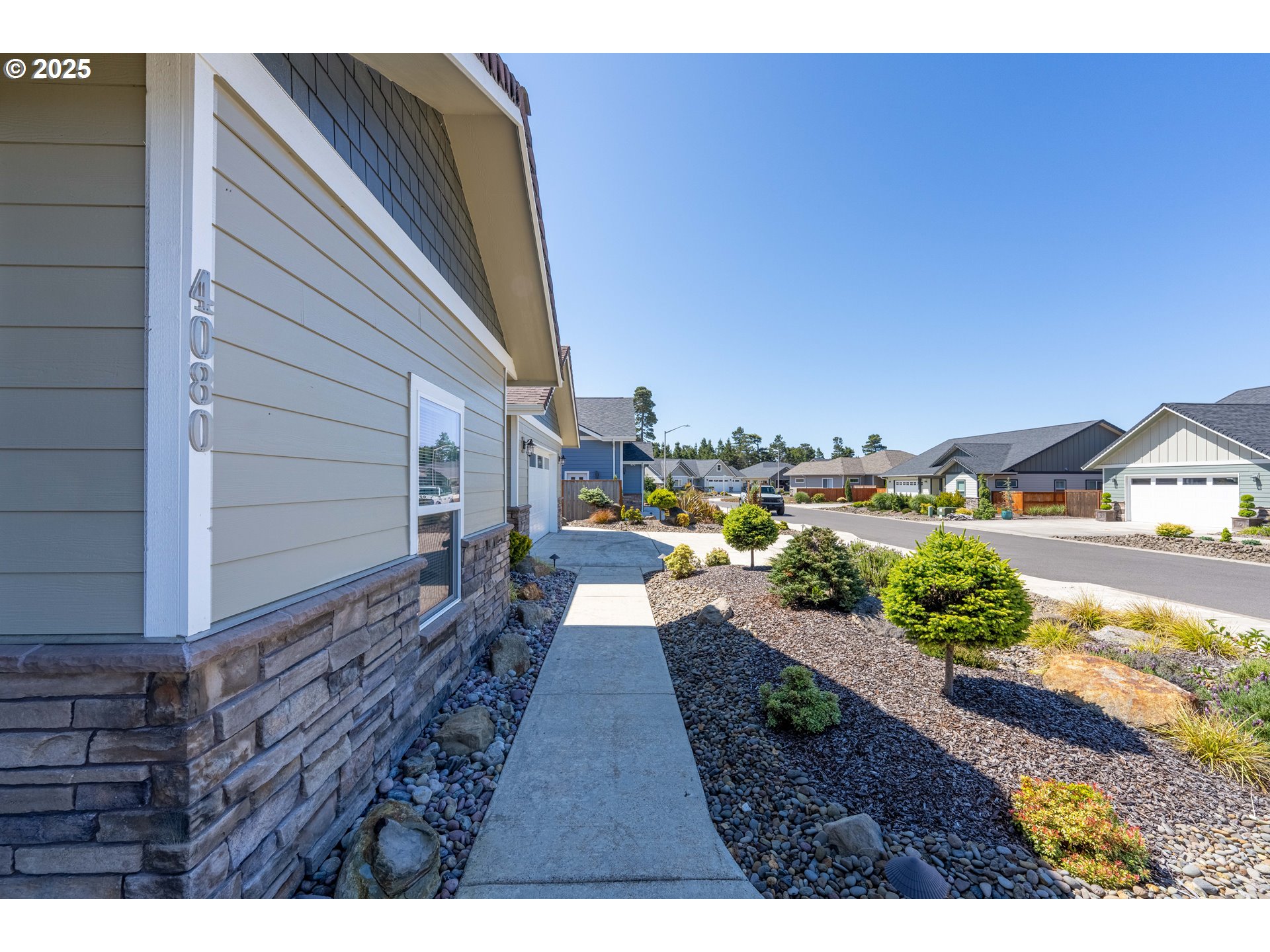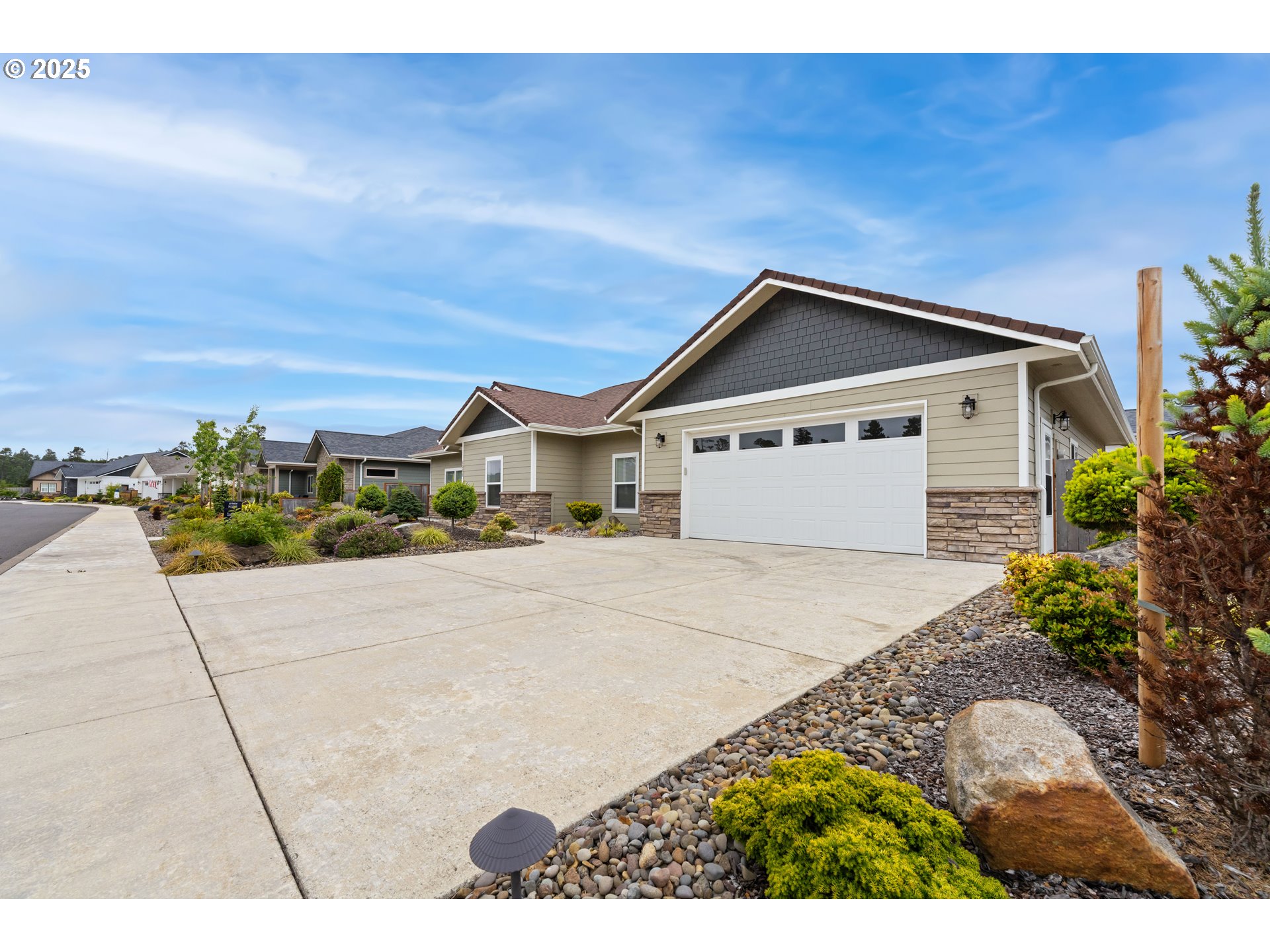 Beautiful Home in Fairway Estates – Gated Golf Course Community. Welcome to Fairway Estates, a premier gated community offering peaceful, low-maintenance living near the beach, river, sand dunes golf course, and Oregon Coast adventure. This nearly-new single-level home features 3 bedrooms, 2 baths, a large office/den, and 2,020 sq ft of thoughtfully designed space with high-end finishes throughout. Enjoy a bright, open great room that flows into a stunning kitchen with quartz countertops and ogee edging, a center island with bar sink, floor-to-ceiling pantry, and soft-close drawers—perfect for entertaining or everyday living. The spacious primary suite offers a walk-in closet and beautifully finished ensuite, while the additional bedrooms and flexible office/den provide ample space for guests, work, or hobbies. Quality materials include luxury vinyl plank flooring, plush carpeted bedrooms, Hardie Plank siding, and forced air heating and cooling for year-round comfort. The finished 876 sq ft tandem garage is wired for EV charging and provides plenty of room for storage, workshop space, or extra parking. The exterior features professionally designed, easy-care landscaping, so you can enjoy the beauty of your surroundings without the upkeep. Set in a clean, crisp, and quiet gated neighborhood offering the ideal balance of luxury and ease—all in one of the most desirable locations around. Seller willing to leave (essentially brand new): living room TV, 2 couches, Dining table & chairs, and washer and dryer with an acceptable offer.