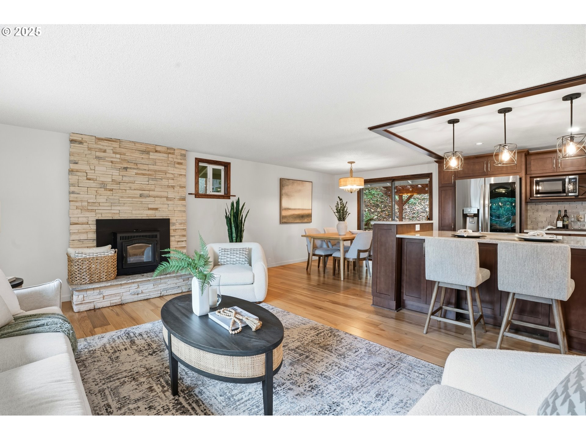 Turnkey living awaits in this Mid-century home nestled in the verdant hills of SE Eugene! The spacious Interior updates include an updated kitchen with high end appliances with soft close cabinets, newer water heater, pellet stove, floors and interior paint. Downstairs features separate family room and 4th bedroom. Exterior improvements include fencing, low maintenance landscaping, exterior stone work, and updated decking off the master and dining area. Backyard also features a covered deck perfect for entertaining. All close to neighborhood hiking trails and about a half mile to Edgewood Pool.