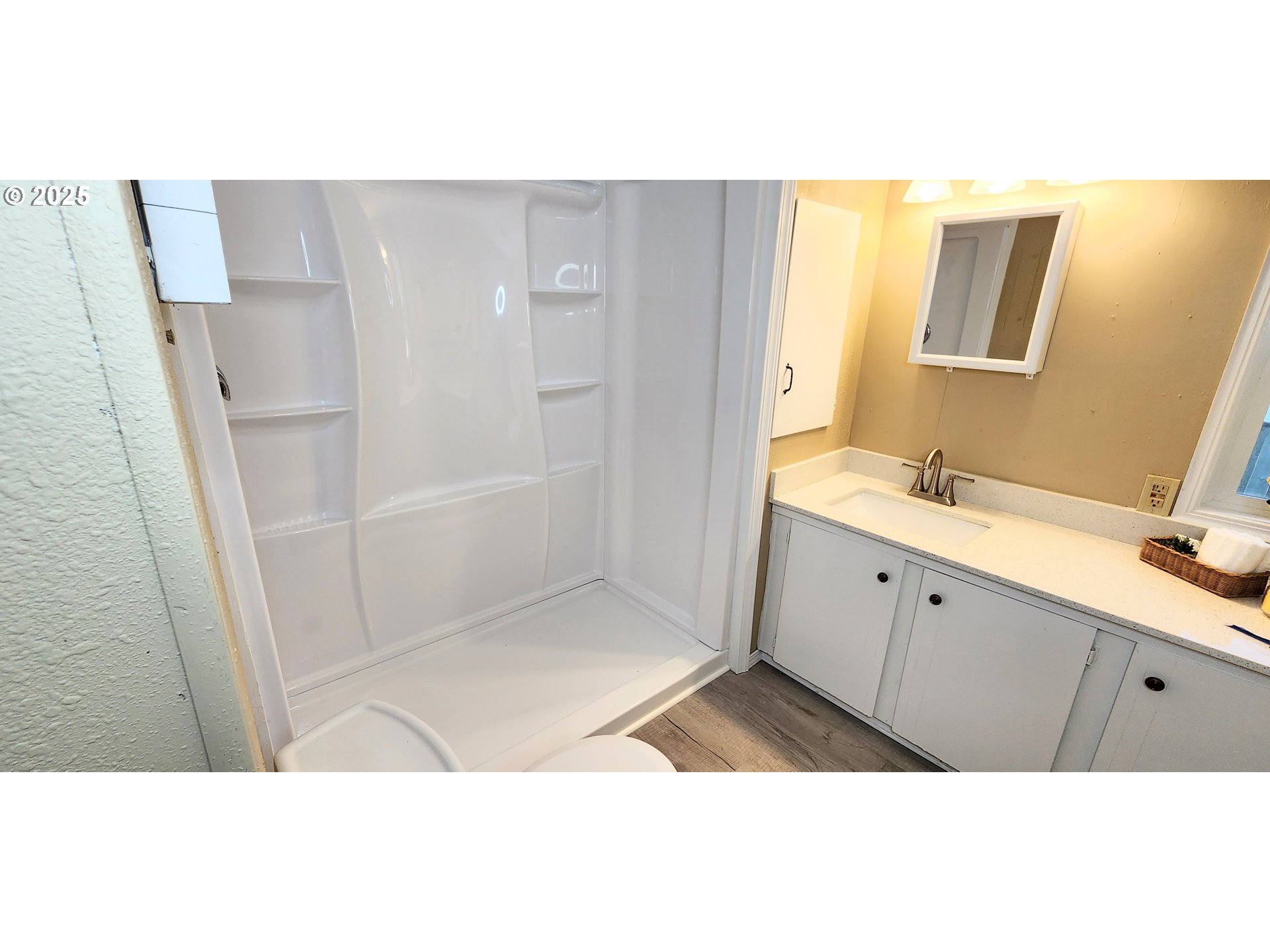 Newly updated single wide manufactured home with a large open concept kitchen and living room. The kitchen boasts Quartz countertops and a large stainless steel sink. The huge bay window lets in ample natural light while you enjoy your morning coffee or preparing your favorite recipes. Home comes complete with range and refrigerator. The bathroom has a new walk-in shower, toilet and quartz counters. The laundry space is in the hallway adjacent to the bathroom. Both bedrooms have built-in drawers/cabinets. New LVP flooring as well as dual pane vinyl windows throughout the home. The yard is ready for your green thumb & is fenced to keep your pooch safe. There's also a shed to store your garden equipment. Now, here's the best part: the huge deck is covered and has a gorgeous view of the river. You can enjoy this space for BBQs and visiting with your guests. The park offers meandering paths along the river and greenspaces. The park is a few miles from local businesses and the U of O to the west. Springfield's historic Main Street is across the river to the east. Space rent includes septic, water and trash. Buyer must be pre-approved by park. 55+ Park. Seller is licensed Oregon Real Estate Broker.