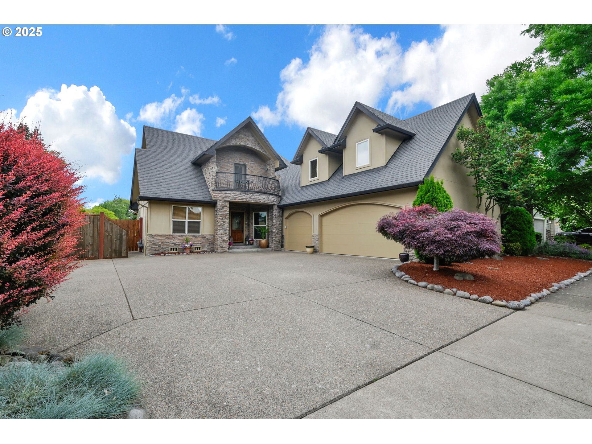 (503) 893-8874Beautiful Custom Home with Vaulted Ceilings Throughout. The Kitchen is Perfect with Stainless Steel Appliances 5-Burner Gas Stove, Granite Counter Tops, and an Island Looking into a Family Room with Gas Fireplace Vaulted Ceilings & Open Floor Plan. Remainder of Rooms have 9 Foot Ceilings. Main Level, Primary Master W/Private Patio, and Additional Bedroom and Bath. Dedicated Office W/French Doors. Custom Built-in Desk W/Shelving/Drawers & Storage Area. Upstairs has a Vaulted Entertainment Room W/Wet Bar, Fridge, Dishwasher, Sink, Gas Fireplace & Balcony, with 1 Additional Primary Bedroom & Bath. Oversized 3-Car Garage W/24 Custom Built-In Storage Cabinets, Also Built-in Work Bench W/8 Drawers. Replaced the Hot Water Heater, Furnace and Air Conditioner, All in 2016.