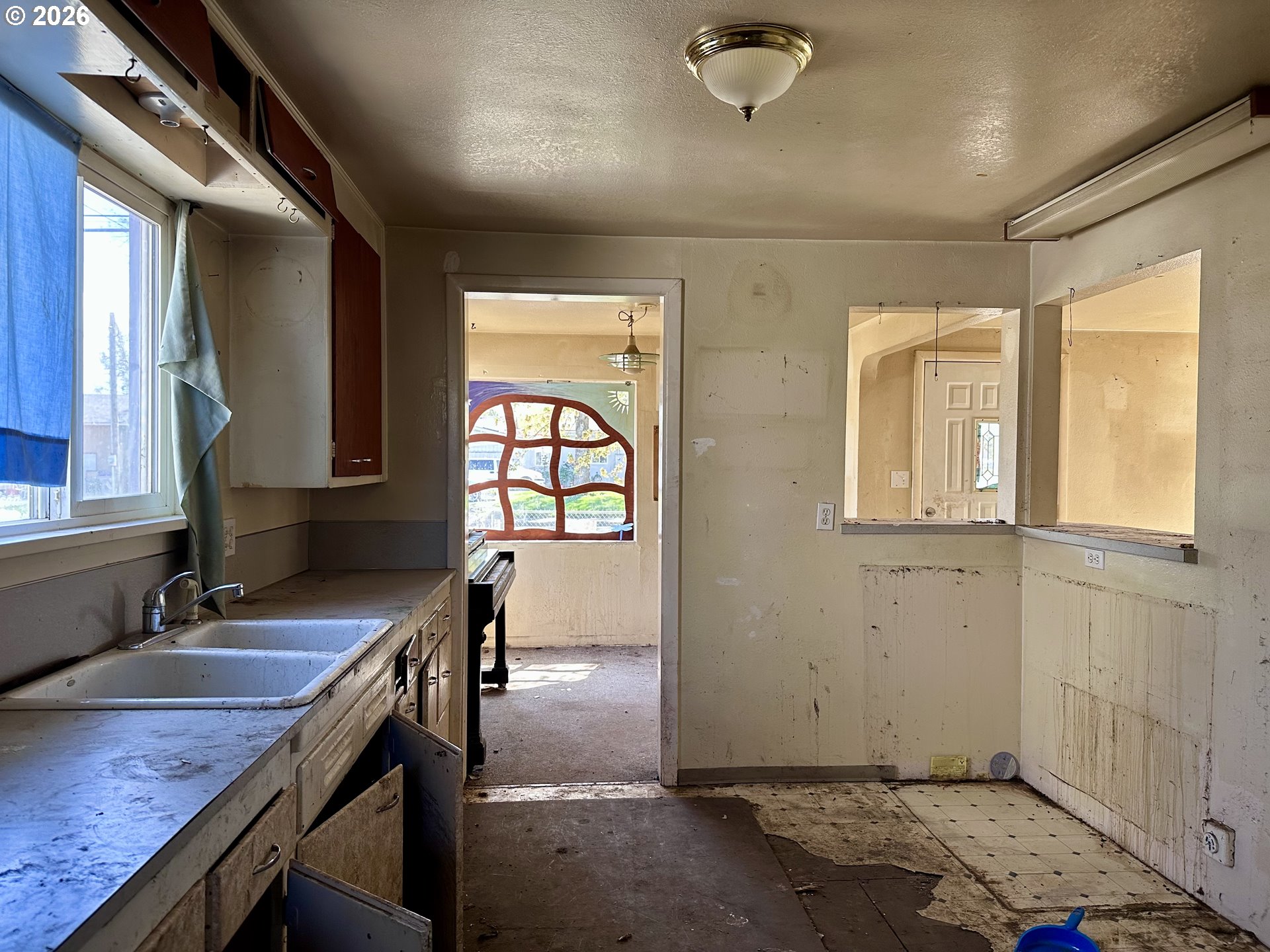 This 724sf home has a great layout with its open living room, dining room, kitchen in the front and 1 bed, 1 bath, indoor laundry in the back. It features a newer roof, updated vinyl windows, a skylight and a finished attic(not included in square footage). The 624sf detached garage has a double car door in the front, single car door in the back, side man door, multiple windows and a stove chimney. The small front yard makes room for a large back yard and both are fully fenced. The home appears to be structurally sound and is ready for a fresh makeover. Incredible potential as a single family home or for multi-family living by converting the garage to additional living or adding an ADU… it’s up to you!
