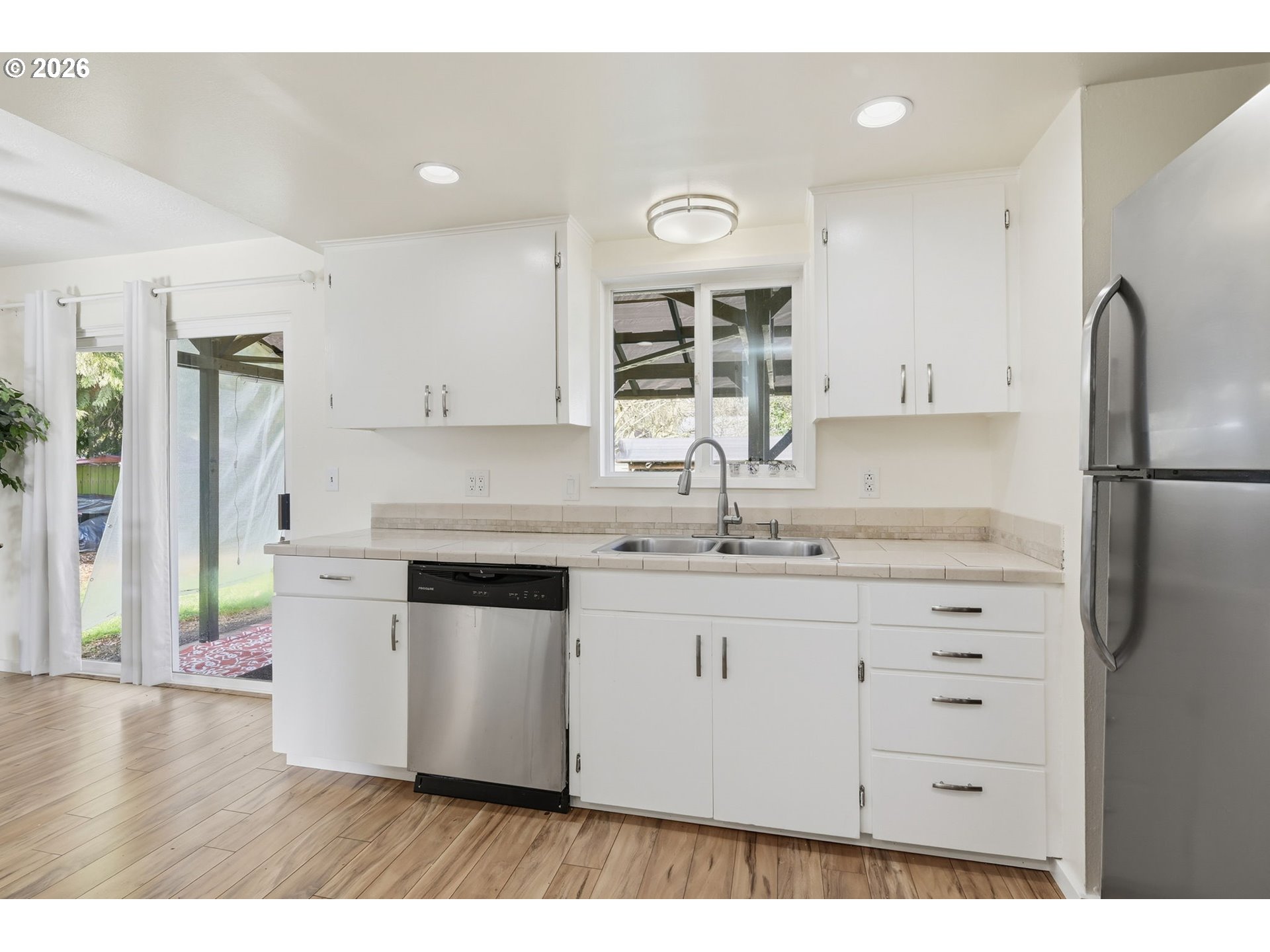 Beautifully updated 3-bedroom, 2-bath ranch-style home in the desirable North Santa Clara area, tucked into a quiet cul-de-sac. This move-in-ready home features a primary ensuite, vinyl windows and slider, fresh interior paint, updated vinyl flooring, and stainless-steel appliances with gas range. Cozy up to the wood-burning fireplace and enjoy year-round comfort with a ductless heat pump in the living room and primary suite. New roof installed in 2019. Step outside to a large, covered deck overlooking a spacious, fenced backyard perfect for entertaining, gardening or relaxing. Low property taxes and a convenient location close to schools, parks, shopping, restaurants, and the bus line make this home a great find.