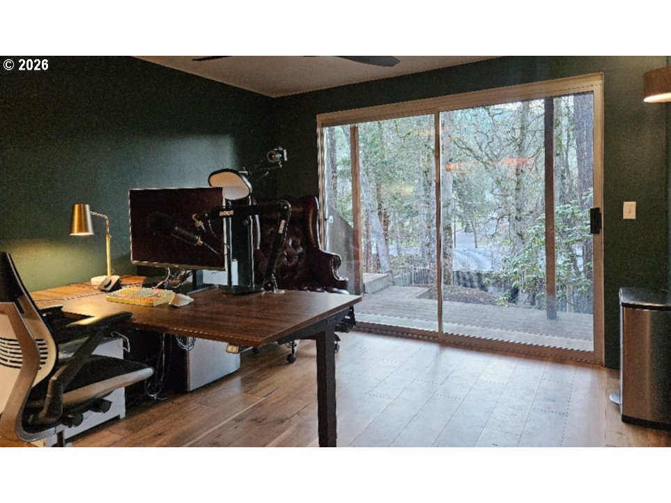 Welcome to this mid-century modern home in a lovely South Eugene neighborhood. The main level features living, dining and family room areas with sliding glass doors leading to peaceful decks that overlook a tree filled backyard. Downstairs boasts a Primary ensuite along with two addition bedrooms, office and laundry room. Enjoy abundant natural light from each room while overlooking the private backyard. A fireplace and new efficient heat pump make this beautiful home comfortable all year long.