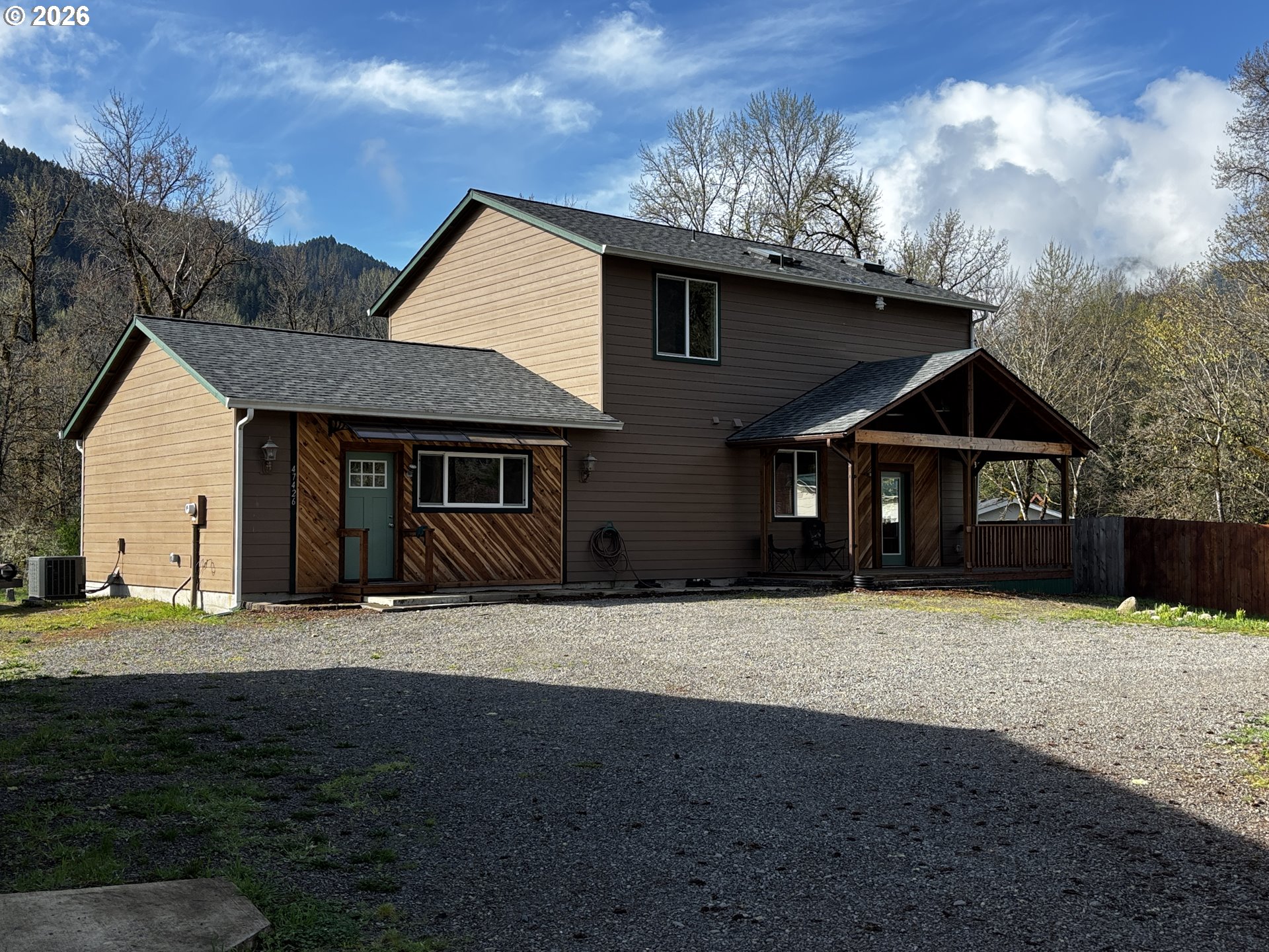 Make your dreams come true in this NEW 2,296 SF 2-story home set back on a .60 acre lot w/level fr & side, terraced, gently sloped back yard, wrap fencing & BREATHTAKING views of the Cascade Mountain Range. 24' x 36', 3-bay open span garage/shop w/large center-bay slider door, W. bay ext. door, 110 & 220v outlets & OH lights is perfect for the hobbiest of any trade! Located a short stroll from the Middle Fork Willamette River near other upscale homes to west. 528 SF attached garage conversion features family room/2nd Master BR w/high ceiling, laminate flooring, recessed lights, BI electric fireplace, ext. entry, closet, privacy & S.facing view windows. Master Suite BR w/vaulted ceil'g, carpet & skylights, full BA w/granite countertop & dbl. sinks, Walk-in closet & S & W view windows. Two add'l upstairs BR's feature carpeted floors, standard closets & slider view windows. Main level w/reverse layout provides private enjoyment in spacious S. facing Living room & Den w/pass-thru & ext. door to full length 6' x 24' covered deck w/steps to expansive backyard. Front facing Dining room & Kitchen greet one & all from circular driveway pull-in to roomy front porch. Fully applianced kitchen w/stainless S/S fridge w/icemaker, cooktop stove w/drop hood, dishwasher, butcher block & granite countertops, double composite sink w/disposal w/windowed view. Roomy cabinetry features built-in's to meet any & all cutlery needs. Truly a versatile property in an ideal location to enjoy the best of nature w/privacy &breathtaking panoramic views of the Cascade Range, meadowland & nearby upscale riverfront neighborhood. Tucked back on a dead-end street w/no through traffic & easy commute to Eugene/Springfield, nearby trails, nearby lakes, rivers & streams where life slows down & hearts are filled w/all the outdoor delights found in this quiet community tucked in the western slopes of the Cascade Range.