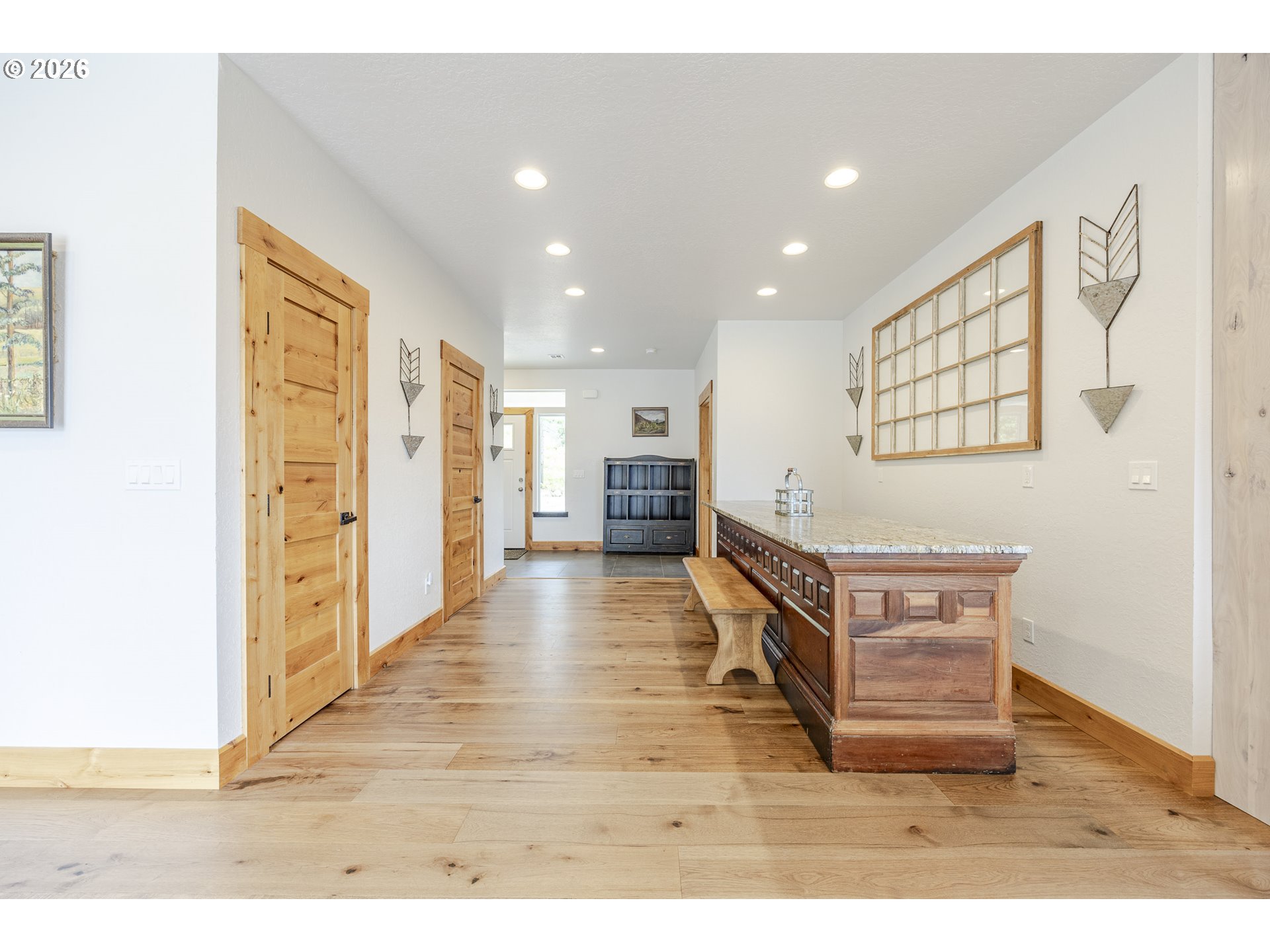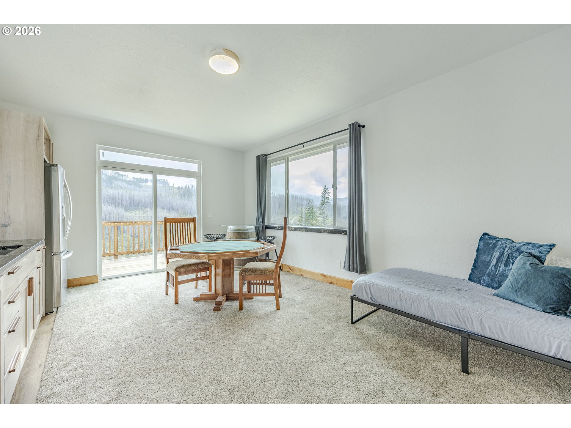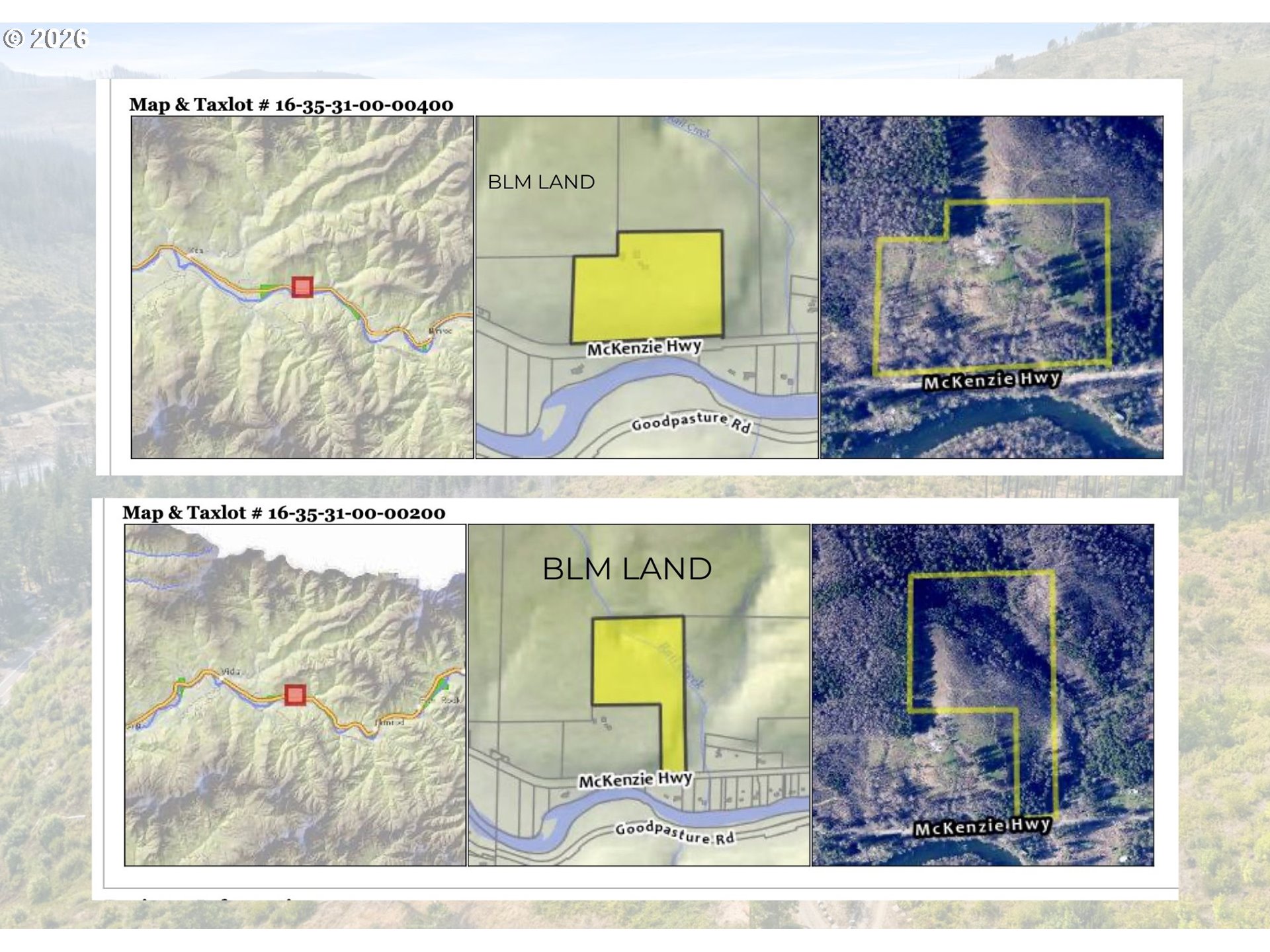 Discover unmatched privacy and breathtaking beauty on this 62+ acre estate perched high above the McKenzie River. Surrounded by BLM land and non-buildable neighboring parcels, this is truly a once-in-a-lifetime opportunity to own the most private property on the market. The home itself is designed with comfort, luxury, and livability in mind originally built by the Helfrich family. Featuring 9 ft ceilings on both floors, 4 spacious bedrooms, including two primary suites—one on each level—you’ll find thoughtful details throughout. The main level boasts soaring ceilings, expansive windows in every room, and a seamless open layout that frames the priceless river and mountain views. A chef’s kitchen with custom wood cabinetry, 60" gas stove, double oven, granite counters, oversized island, and bar seating flows effortlessly into the family room and out to a back patio perfect for entertaining or quiet summer evenings. A formal dining room and a conveniently placed main-level laundry room make daily living simple and functional. Upstairs, three additional bedrooms await, including a second primary suite with ensuite bath and a second laundry. A versatile bonus room with kitchenette, full-size fridge, and private balcony overlooking the McKenzie River creates endless possibilities—guest quarters, game room, or the ultimate retreat. Beyond the home, the property is equipped for peace of mind and adventure alike: multiple natural springs, one right in the backyard which naturally feeds a tranquil pond and qualification for landowner elk tags. Whether you’re seeking a full-time residence or a private getaway, this rare estate offers serenity, adventure, and luxury like no other.