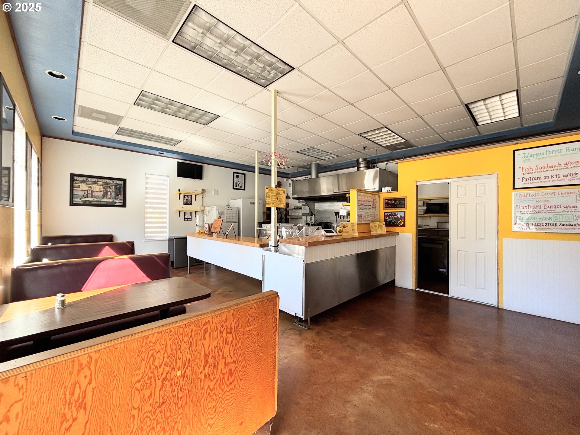 Absolutely perfect restaurant opportunities await! Turnkey operation in GREAT condition AND location with 100' of highway frontage on corner lot at east entry of Oakridge city limits, a township known for its surrounding beauty and surrounding outdoor recreational delights. 1,344 SF of 'ready to serve' diner featuring all equipment, utensils, furniture, signage (including billboard) and goodwill from retiring owner of second generation business. Located on the corner of Hwy. 58 and Hills St. (east entry to Uptown). 'Nifty 50's' theme features bench seating for 12-18 with south facing atrium views of the Cascade Range, optional serving bar counter to watch the cook do magic, and large party room for group/private & extra seating, or can be office/sub-rental. 2 x new ADA bathrooms, storage/mechanical room w/2-panels, & large food prep/storage room w/extra cold storage, stainless food prep tables w/storage under, stove/range, and delivery door separate from restaurant business. Open grills, fryers, wash and 3-bay dish station, massive commercial hoods & order counter, cook 'n serve in the ready w/ample cold storage for drinks, condiments, food, etc. Decorative colors and wall hangings to delight the locals and traveler alike. 10+ vehicle off-street parking w/ample space for signage, outdoor seating, and with great highway visibility for passers by. Has operated as a 5 star gourmet burger joint, but other cuisine options and uses are endless. Take advantage of the tourist traffic surrounding this Mountain Biking Capitol of the NW, and its ideal east location near Greenwaters Park, Arbor Inn Motel & RV Park, and Salmon Creek & Trail. Quite literally located at the 'Gateway to Outdoor Recreation'.