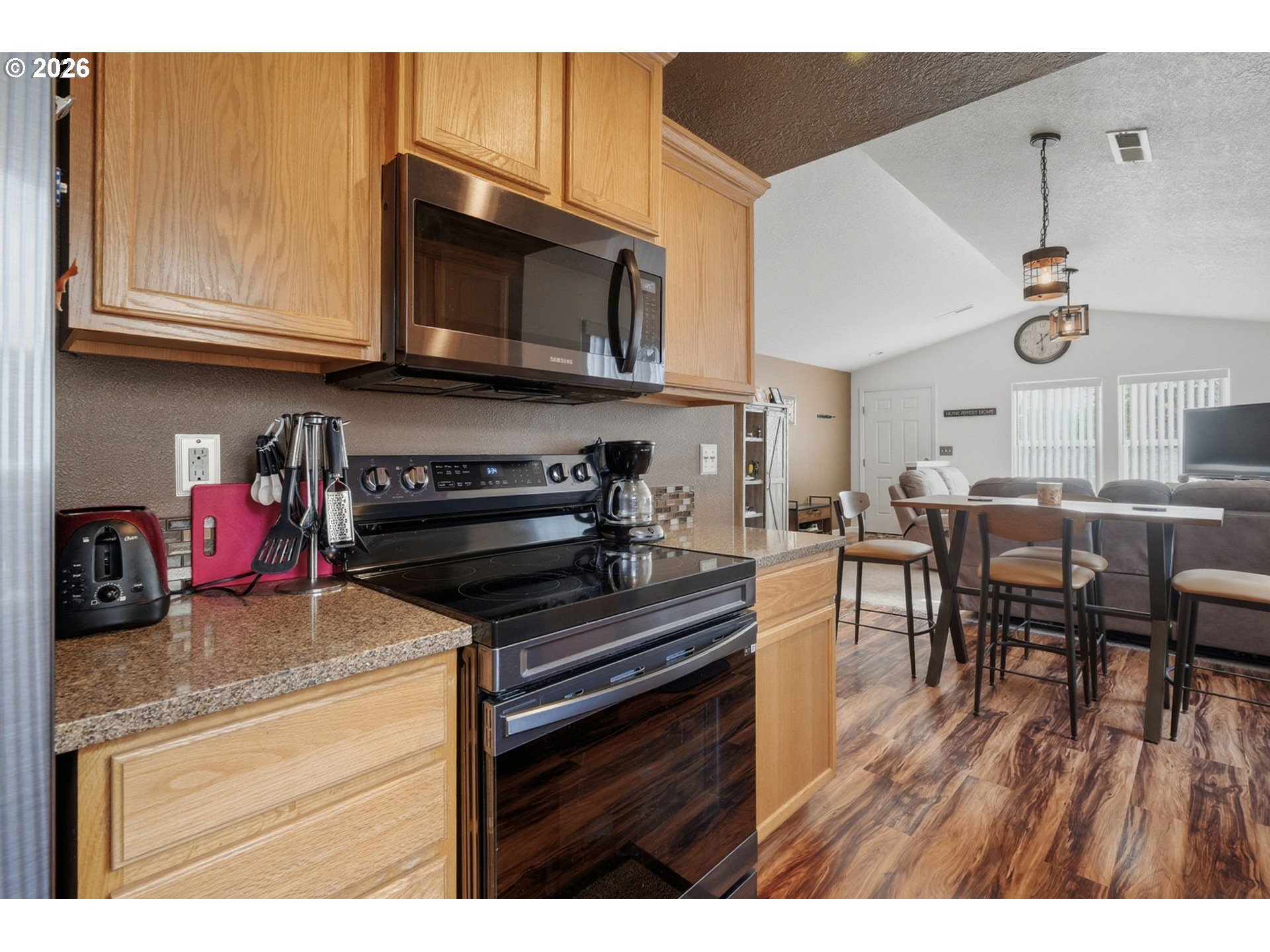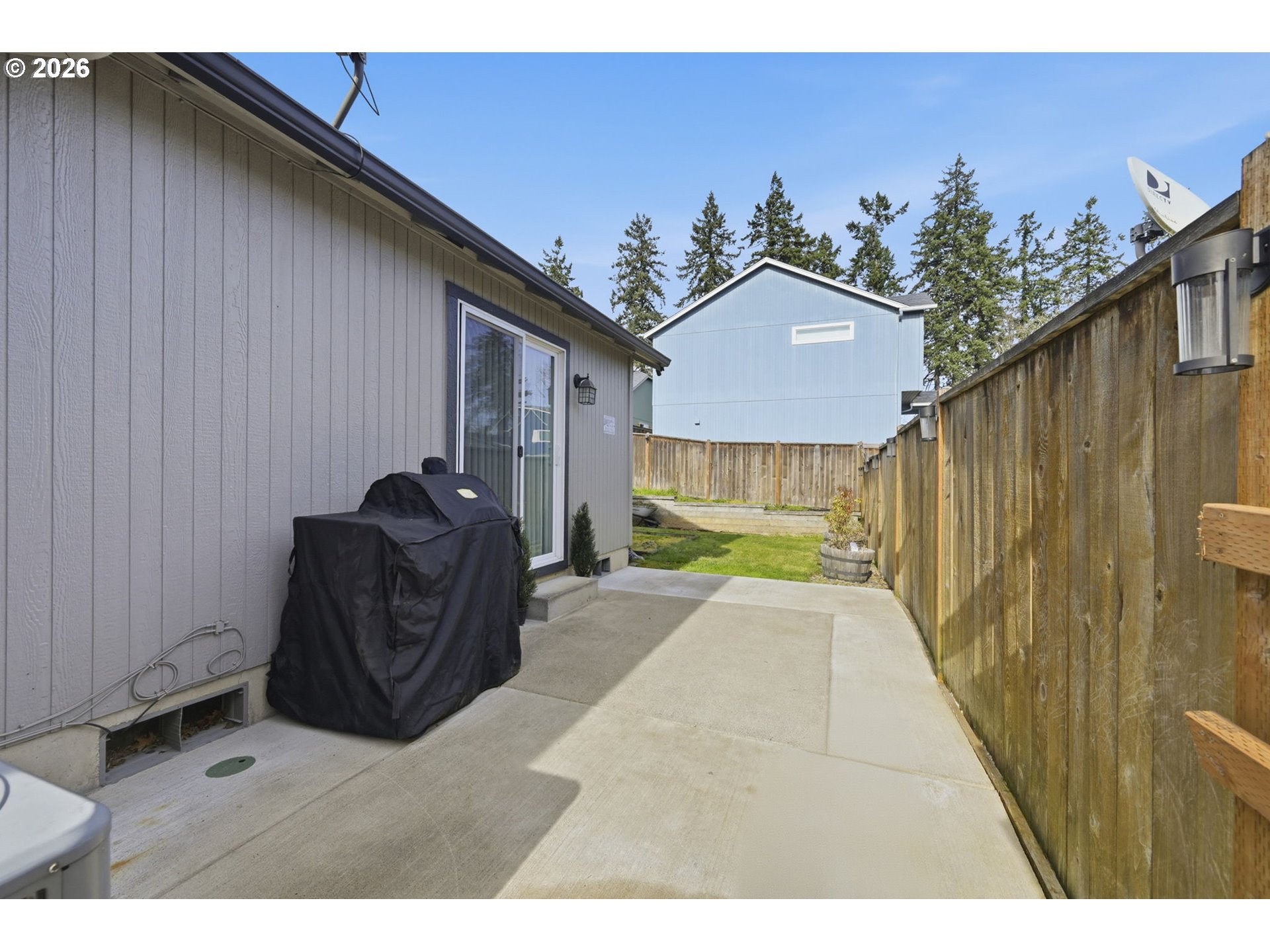 (503) 893-8874Built in 2012 by Hayden Homes Construction, this well-maintained residence is located in the desirable West Wind Estates community and offers 1,042 square feet of thoughtfully designed living space. The open and airy floor plan is enhanced by vaulted ceilings, creating a bright and welcoming atmosphere throughout the home. The property features two comfortably sized bedrooms, including a spacious primary bedroom designed for both function and privacy. The bathroom can be accessed from the hallway as well as directly from the primary bedroom, providing the convenience and feel of an attached bath. The primary bedroom also includes dual closets and sliding glass doors that open to the backyard patio, extending the living space outdoors. Over the past five years, the seller has completed numerous updates that add both style and comfort. These improvements include quartz countertops and tile backsplash in the kitchen and bathroom, new flooring throughout, new light fixtures and electrical wall plates throughout, updated interior and exterior paint, upgraded 3-inch baseboards and trim, black stainless steel kitchen appliances, and the addition of an air conditioning unit. Exterior enhancements also include a retaining wall along the backyard, along with additional concrete expanding the patio and walkway. The home was constructed with durable lap and T-111 siding and includes a fully finished, extended-length garage offering flexibility for parking, storage, or alternative uses such as a home gym or hobby space. The home sits directly across from a maintained green space, providing peaceful views of trees and grass and a sense of openness. The HOA maintains grassy common areas and a lighted walking path, ideal for pets, exercise, or enjoying fresh air. Meticulously cared for, this home combines practical updates, efficient use of space, and a convenient community setting—making it an excellent option for buyers seeking comfort, quality, and low-maintenance living.