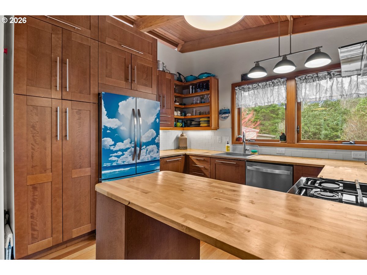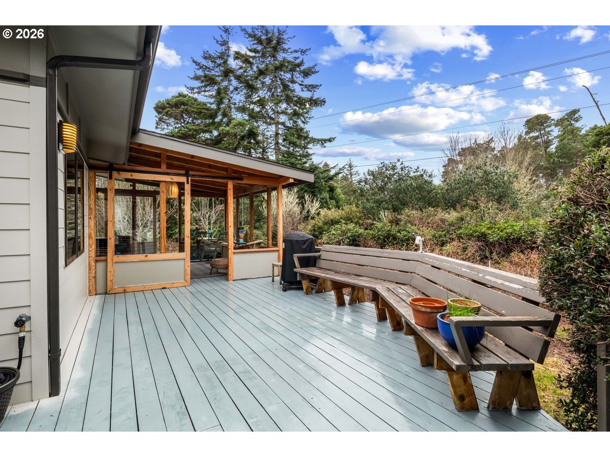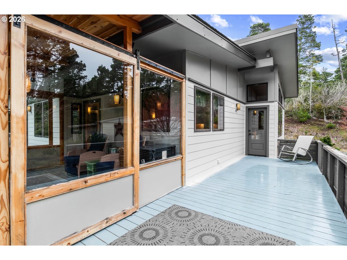 (503) 893-8874Charming coastal property on .93 acres. Custom built home features a 1 bed, 1 bath layout (896 sq ft) plus (480 sq ft) detached studio, home and studio both feature wood framed windows for views from every room, large wrap around deck and sunroom for enjoying the view at any time of the year. Both buildings were professionally repainted last summer with premium coastal-grade paint, including extensive prep work and new metal fascia on sun-exposed areas for added durability. The septic system (1500-gallon tank rated for 4 bedrooms) is on a Lane County service contract. Kitchen appliances include retro propane stove/range, refrigerator, dishwasher, washer and dryer (all included); dishwasher and disposal recently replaced and stove/fridge recently serviced. Property features full RV hookups (water, sewer & 50-amp power), new gravel walkways, heated river rock bathroom floor, bidet, and updated lighting with ceiling fan. Beautifully landscaped grounds include 12+ blueberry bushes, 3 pear trees, irrigation system, and greenhouse water hookup. Additional 12'x10' storage shed behind garage. and only 1 mile to the beach!