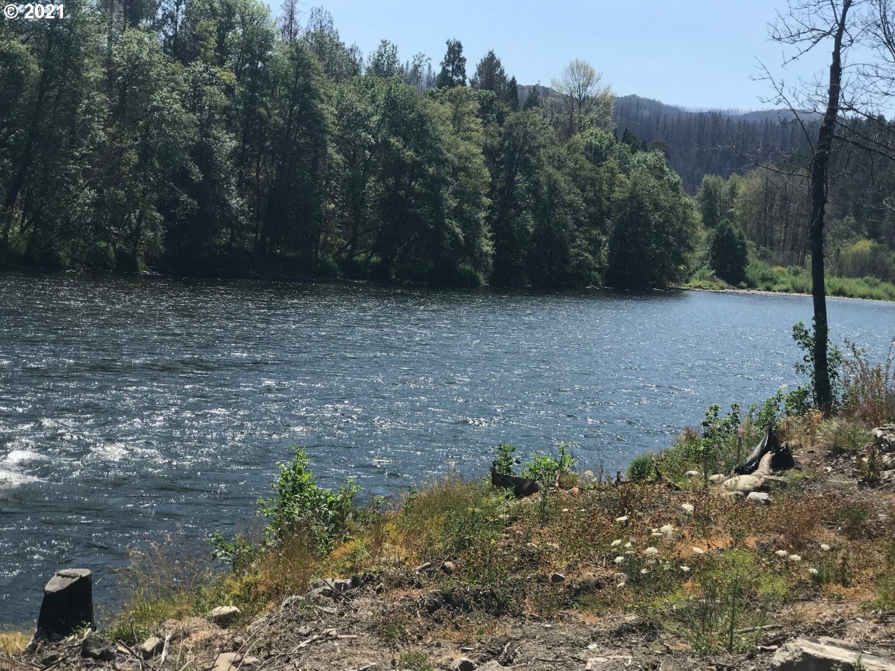 Approved HR 2289 Intent to Build and Type 1 Zoning applications approved by Lane County for 412 sq ft house built in the same footprint, next to the river's edge. You could add second story for additional sq ft. extension is to have approved plans by 2030. The McKenzie is coming back strong. Beautiful riverfront property with surveyed foundation after the fire of 2020. Shared well and shared septic system have both been repaired and replaced and current owner paid for her portion of the expenses. Power available. RC zoning, rural commercial, allows you to live on the property with a home business or rent it out part time for extra income. Perfect VRBO or family retreat. In the heart of the McKenzie Recreational Valley. Prior to fire the cabin was 591 sq ft studio with loft, heat pump, fireplace and large deck overlooking the river. Buyer to do own due diligence. Photos #8-#14 are what the cabin looked like before the fire and gives a new buyer an idea of what could be put back again or build more modern as the cabins next door have decided to do. All of the other lots have been sold and are being built on. Buyer to do own due diligence.