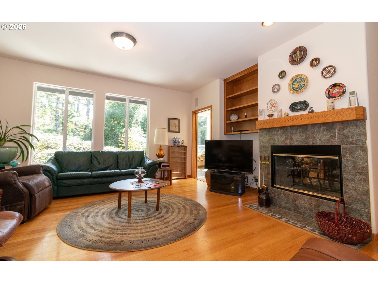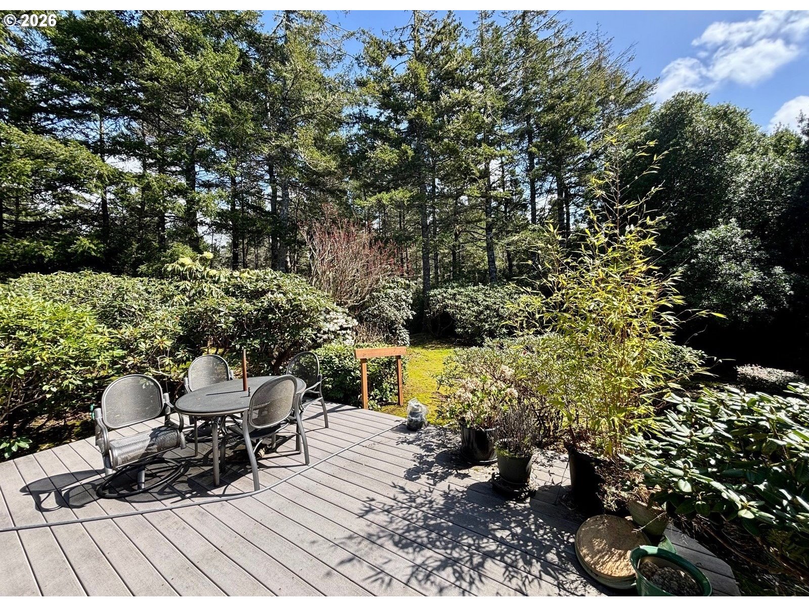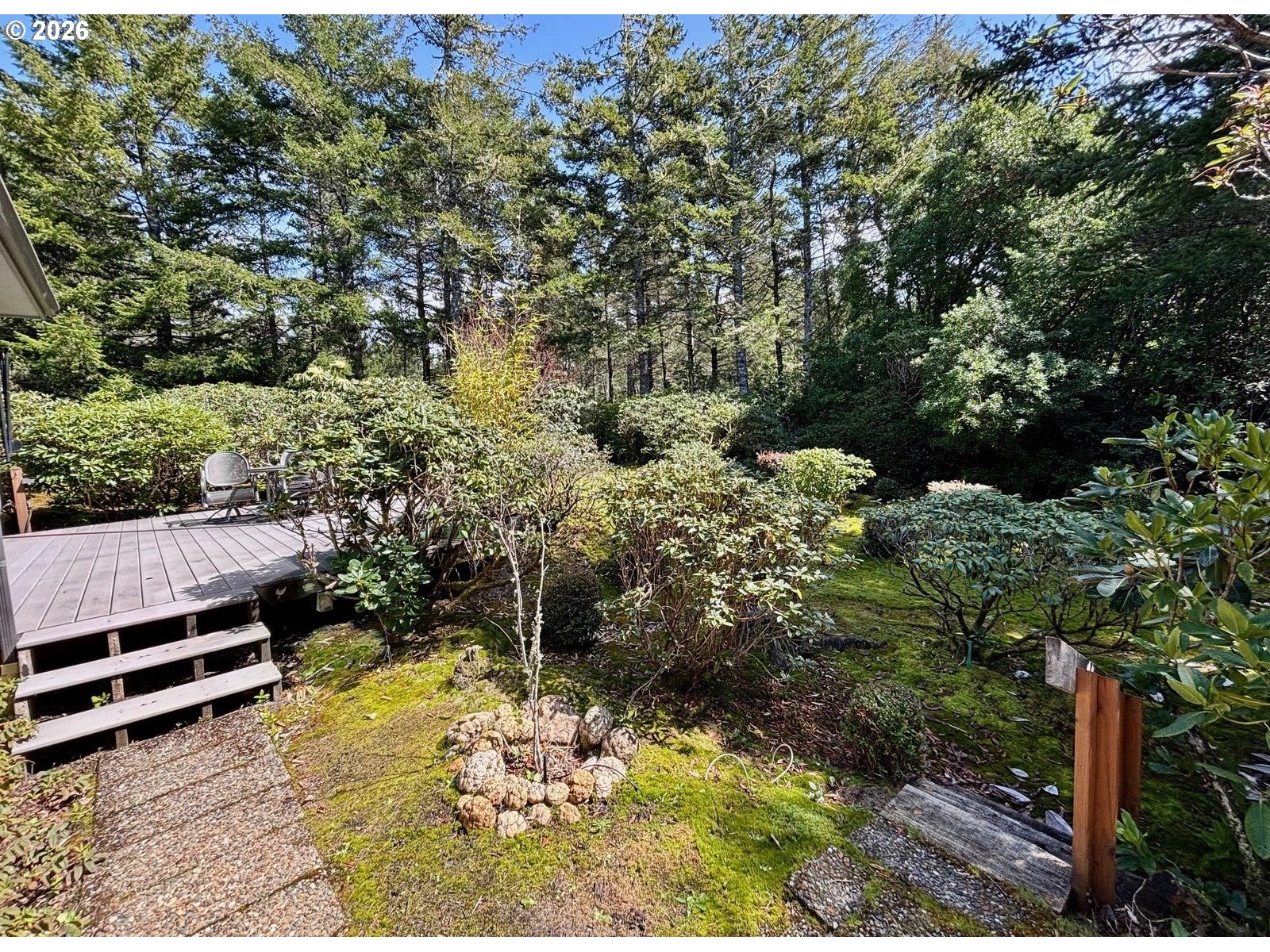 (503) 893-8874Nestled at the end of a quiet cul-de-sac in desirable Heceta South, this 2,787 sq. ft. custom home offers unmatchedprivacy and charm on two lots totaling one full acre. The beautifully landscaped backyard is a true sanctuary, featuring over 110 unique rhododendrons, mature plantings, drip irrigation, and peaceful rear decks perfect for relaxing or entertaining. Inside, you’ll and real hardwood floors, high ceilings, and a see-through replace adding warmth and character. The chef's kitchen boasts solid surface countertops, hickory cabinets and a skylight. There is a sunlit solarium for year-round enjoyment. A separate office with built-in bookshelves, shoji pocket doors, and a custom movable desk creates the perfect work-from-home space. The attached guest quarters feature soaring 10-foot ceilings, a private bath, and sliding doors leading directly to the lush backyard — ideal for guests, multi-generational living, or a home studio. Additional features include: 3 bedrooms, 3 bathrooms. Tile roof for durability and style. Central vacuum, heat pump, and a full sound system. Skylight for added natural light. solarium for year-round sun enjoyment. Attached 2-car garage. Office with built-ins & custom desk. This home is the perfect blend of function, beauty, and tranquility. Don't miss the chance to own a piece of the Pacific Northwest’s nest living!