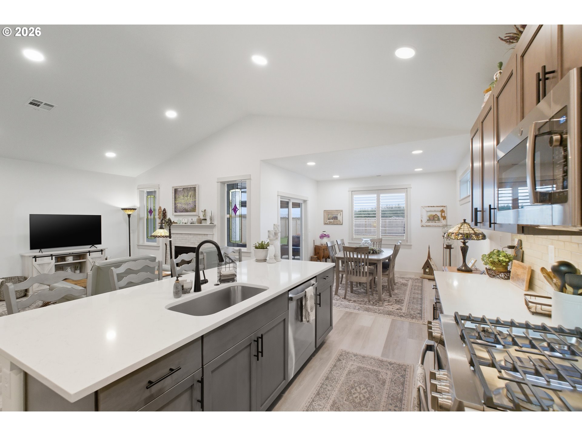 (503) 893-8874Welcome to this beautifully built 2024 single-story home offering 3 bedrooms and 2 bathrooms, perfectly designed for modern living and effortless entertaining. Enjoy the ease of open-concept living with durable and stylish LVP flooring throughout and a warm, inviting gas fireplace anchoring the main living space.The kitchen features sleek quartz countertops, ample cabinetry with pull out drawers, and a spacious pantry, making both everyday meals and hosting a breeze. Large windows frame gorgeous views and fill the home with natural light, creating a bright and welcoming atmosphere.Step outside to a covered patio overlooking a large, flat backyard—ideal for play, pets, gardening, or future outdoor projects. A charming water fountain feature adds a peaceful touch, perfect for relaxing evenings and morning coffee with a view.With modern finishes, thoughtful layout, and a nearly brand-new build, this home offers comfort, style, and space—inside and out. Truly move-in ready and waiting for you to make it your own.