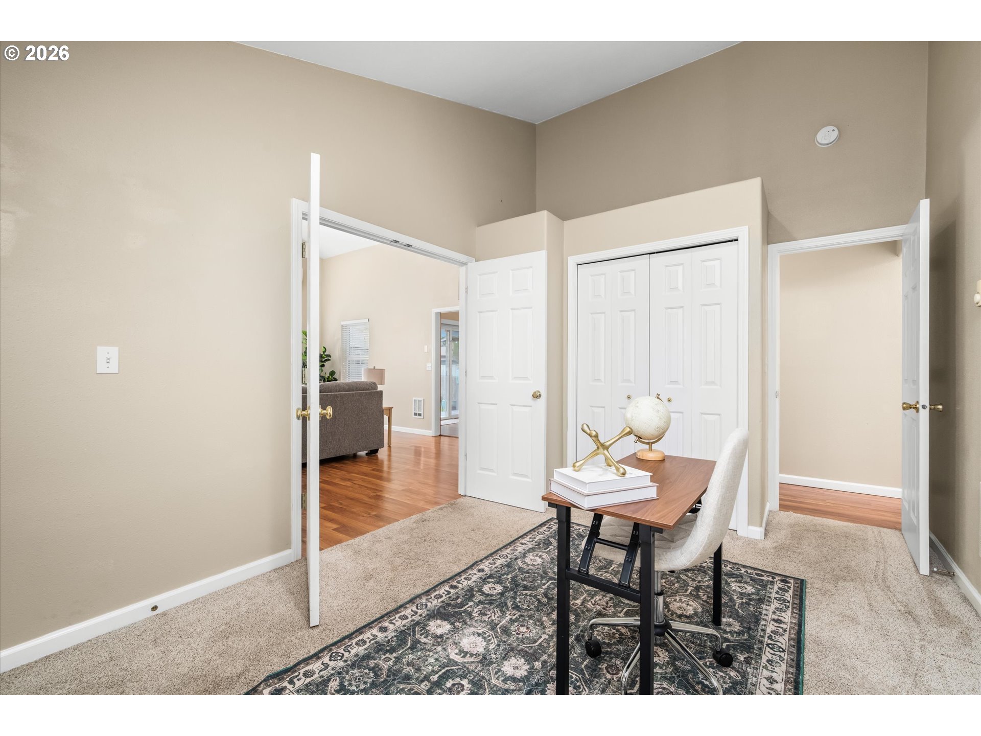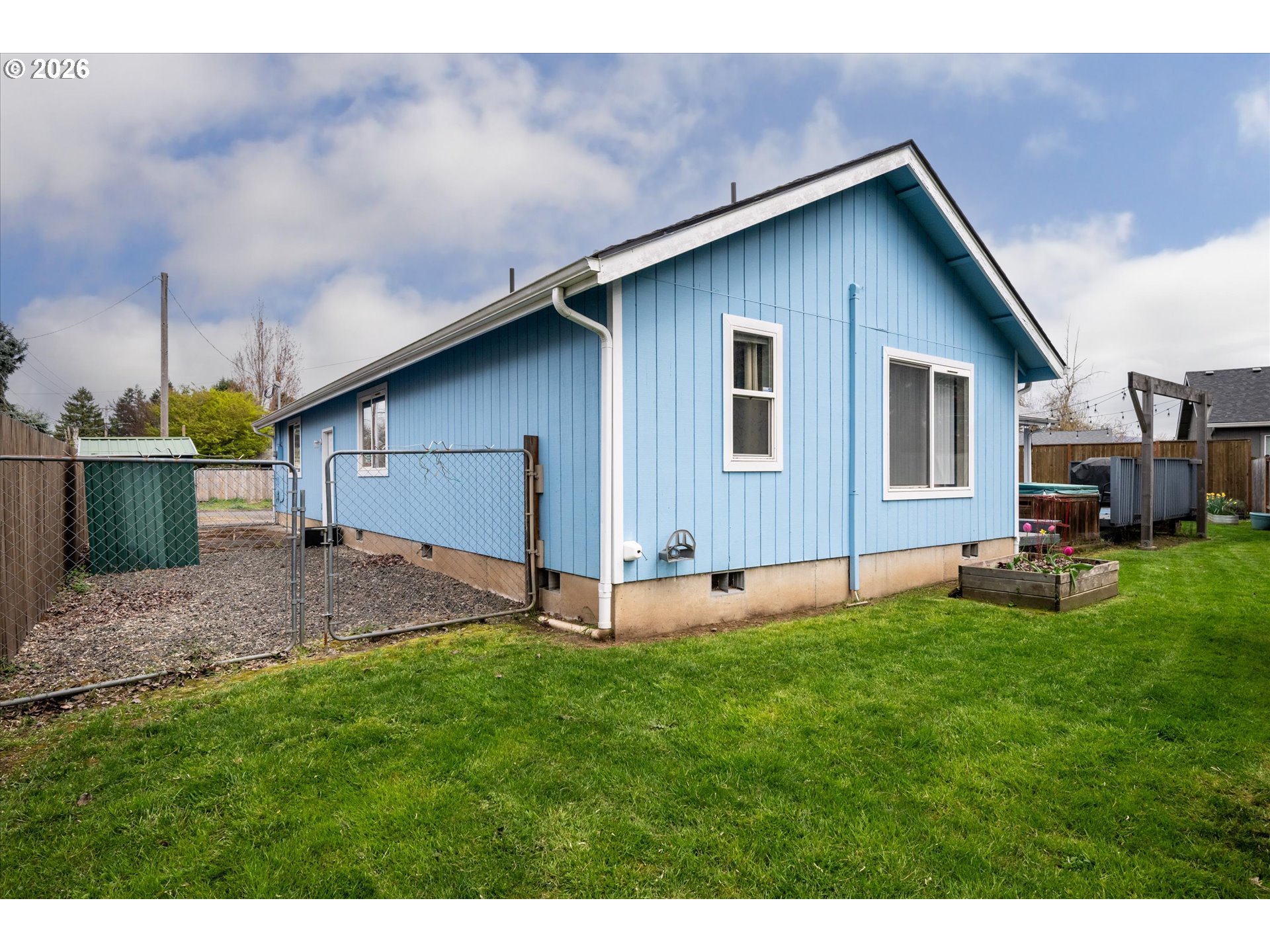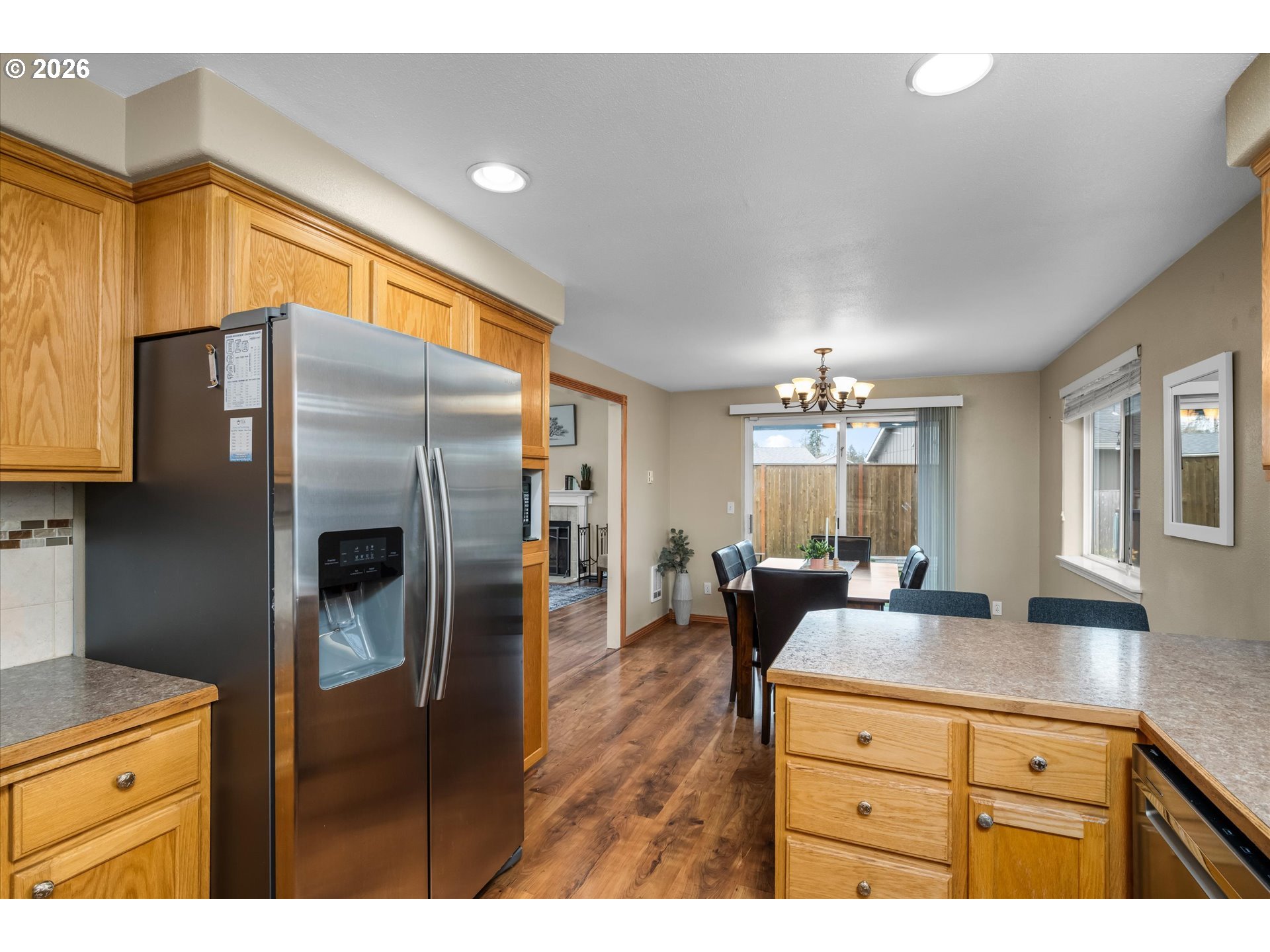 Move-in ready single-level home in a prime Santa Clara location! This 3-bedroom, 2-bath ranch features 1,424 square feet of light-filled living space with vaulted ceilings, a cozy wood-burning fireplace, and spacious kitchen with updated appliances. High-value upgrades include a new roof (2020), two energy-efficient ductless units, and fresh exterrior paint (2021). The primary suite offers a private bath and vaulted ceilings, while newer laminate flooring flows throughout the home. Outside, enjoy a fully fenced yard with a deck, covered porch, and a two-car garage plus valuable RV parking. Perfectly situated close to the new Santa Clara Community Park and Madison Middle School, with easy access to shopping. This charmer is a must see!