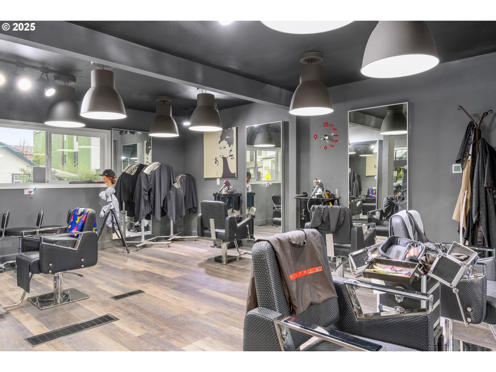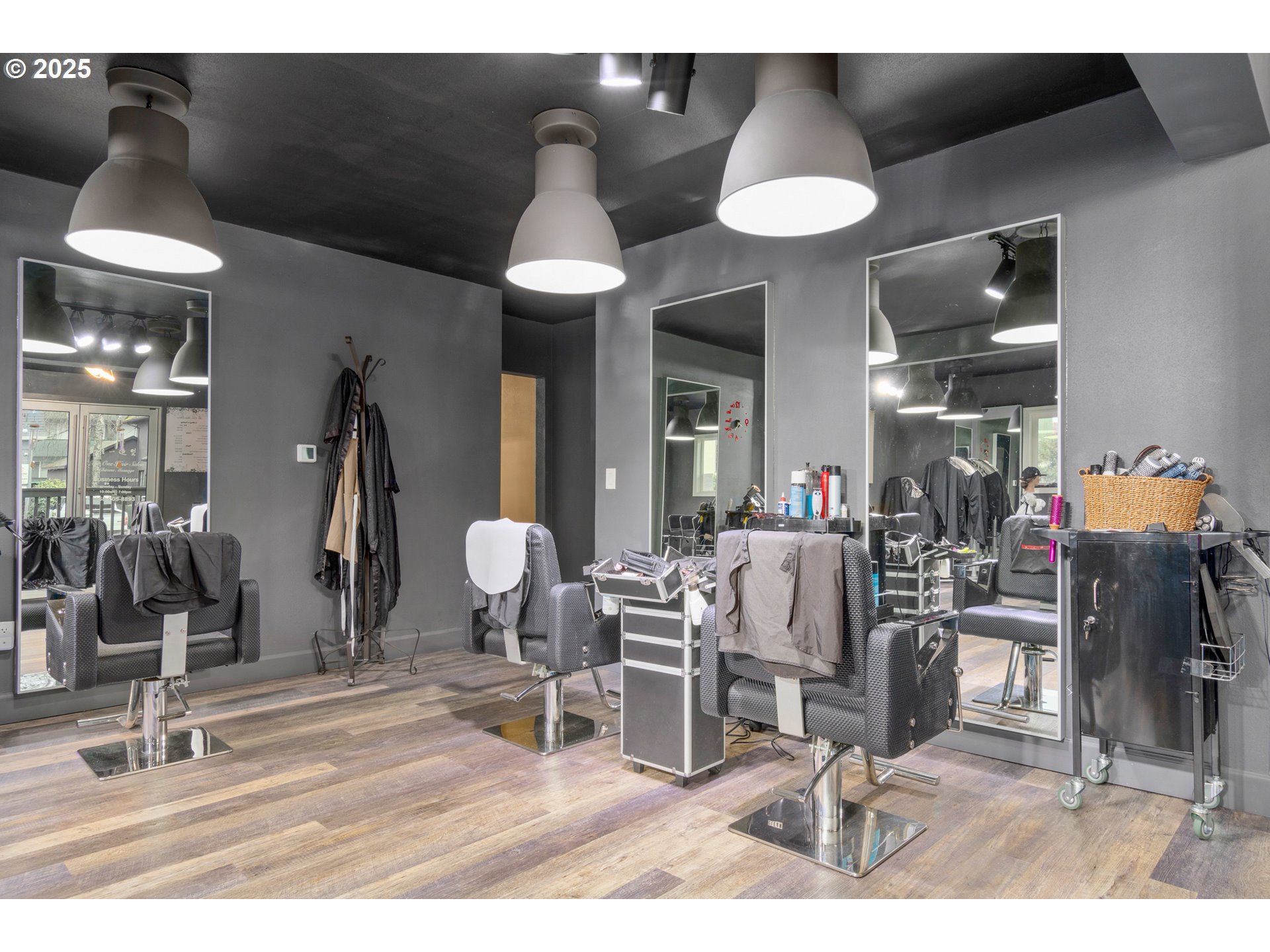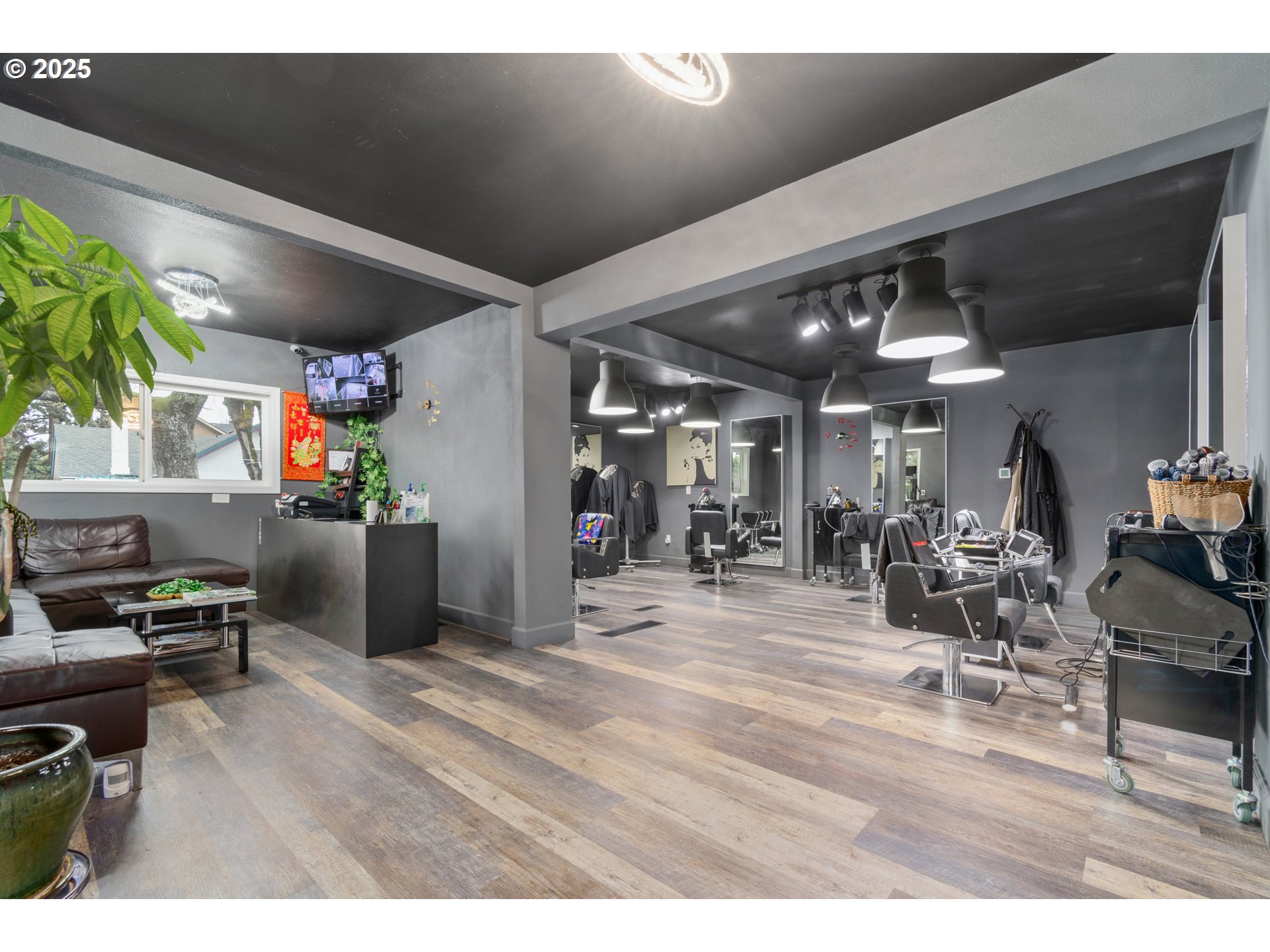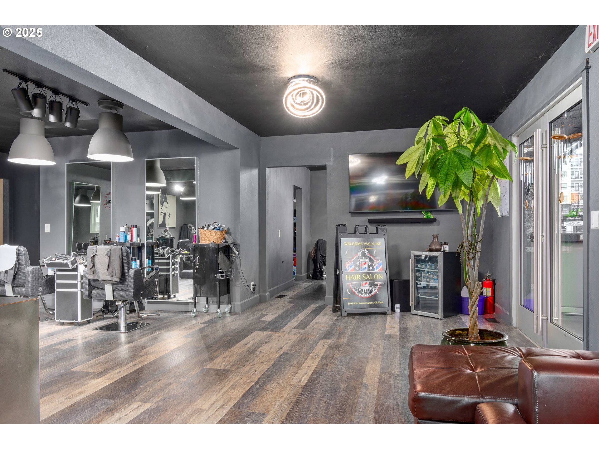 Luxury fully remodeled in 2020. Close to UO and downtown. Walkable and bikable area.Large volume of people.New wood flooring, new exterior and interior painting , new plumbing, new windows.It is versatile.ity offers an exceptional opportunity for barber shop, nail salon, beauty salon, massage place, office etc. Refrigerator, washer and dryer, surveillance system included.All furnitures and equipment negotiable. Must see. Call or text listing agent for details.