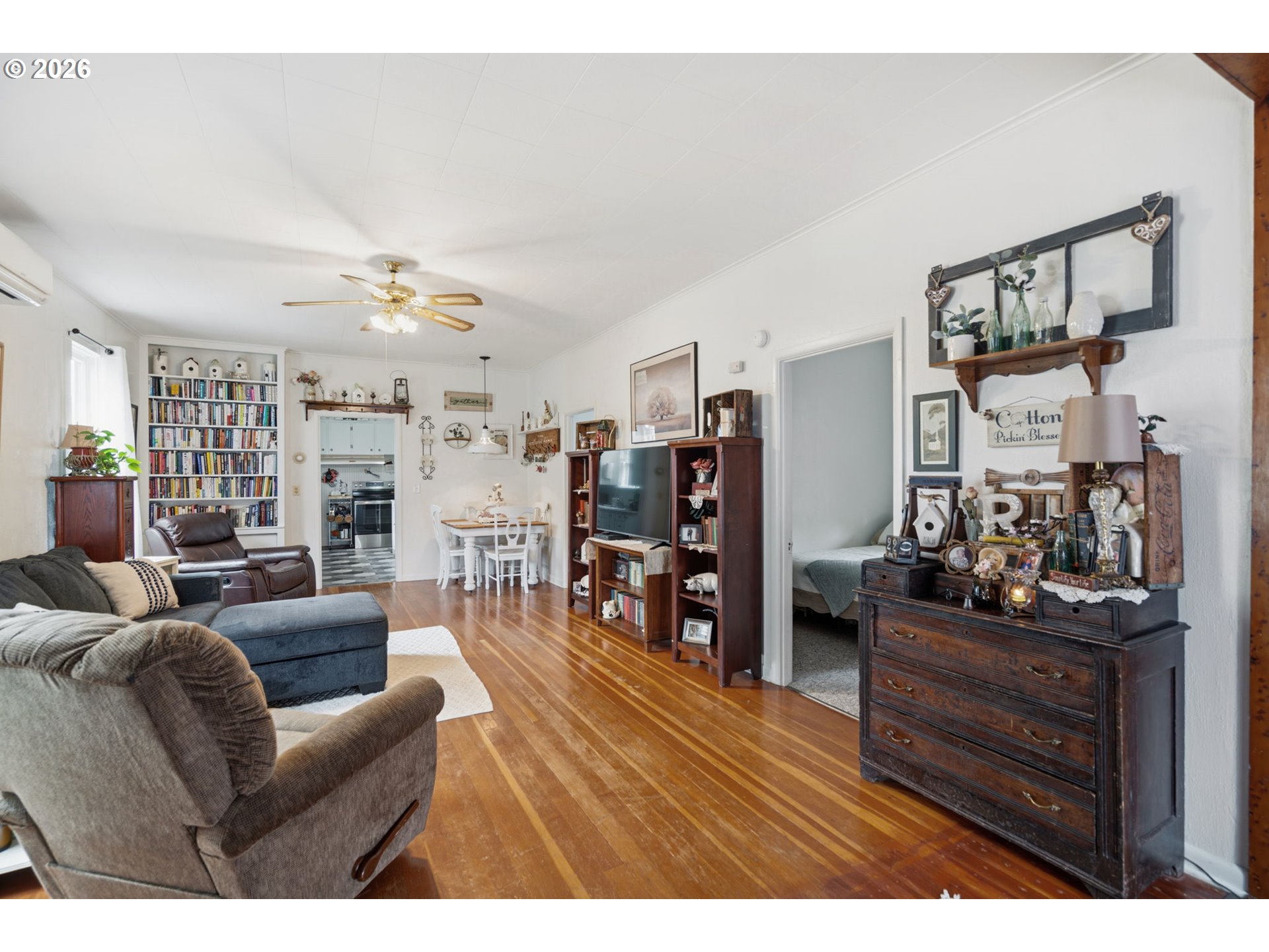 This beautifully maintained home sits in the heart of the Washburne Historic District. The property features numerous updates while retaining its original charm. Updates include new roof, sewer main, ductless heat/AC, appliances, fencing, and a low maintenance yard. Original features include high ceilings, open living space, corner fireplace, and Fir wood floors. An oversized, detached garage and additional off street parking are accessed through the alley at the back of the property. The location is as good as it gets with easy access to wonderful restaurants and shops, the UofO, Willamette River trails and exploring the historic neighborhood. Come see all this home has to offer.