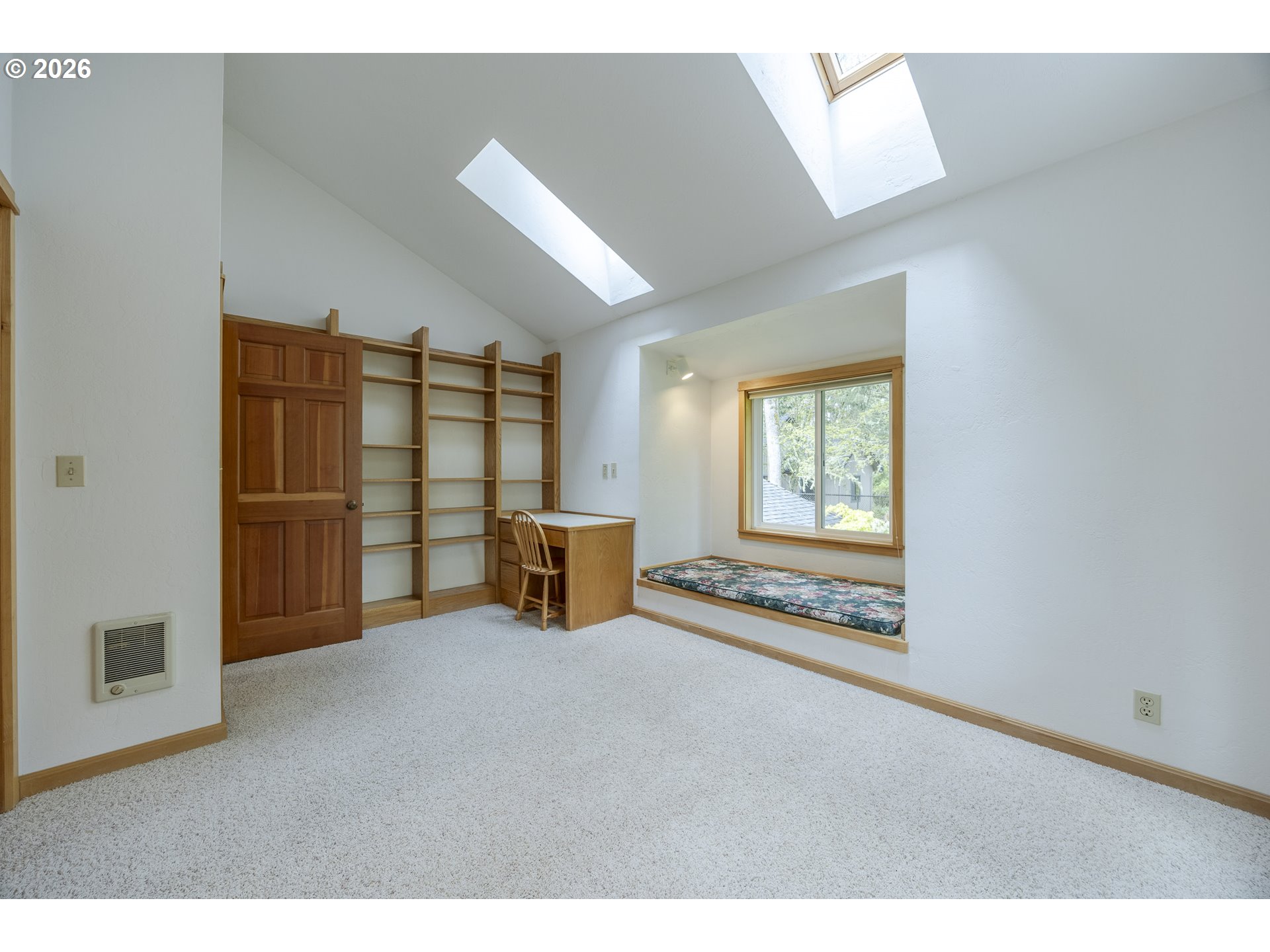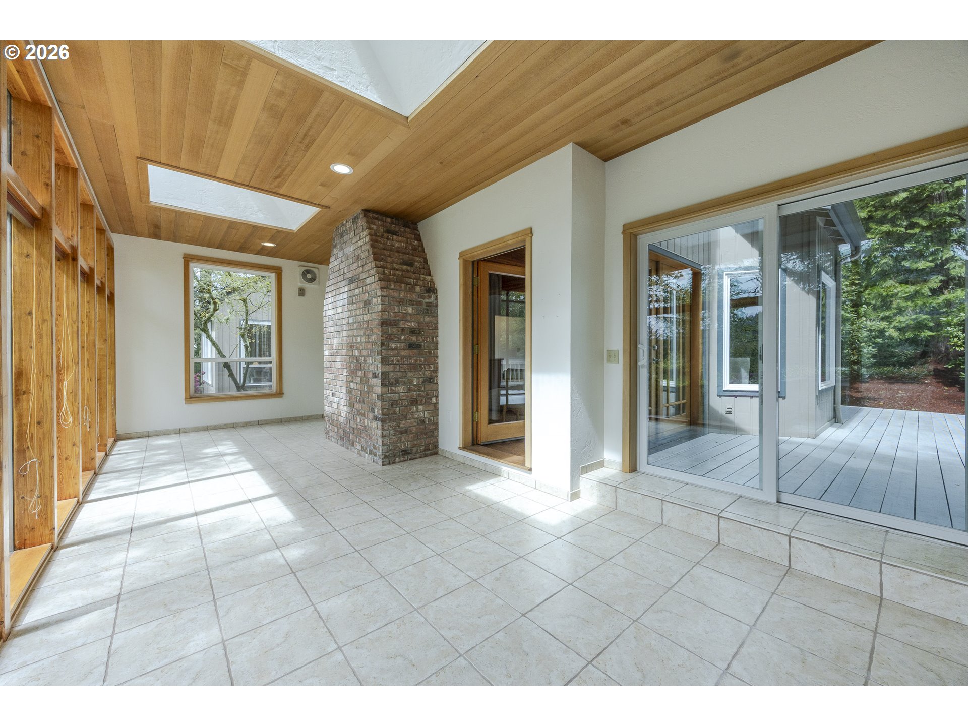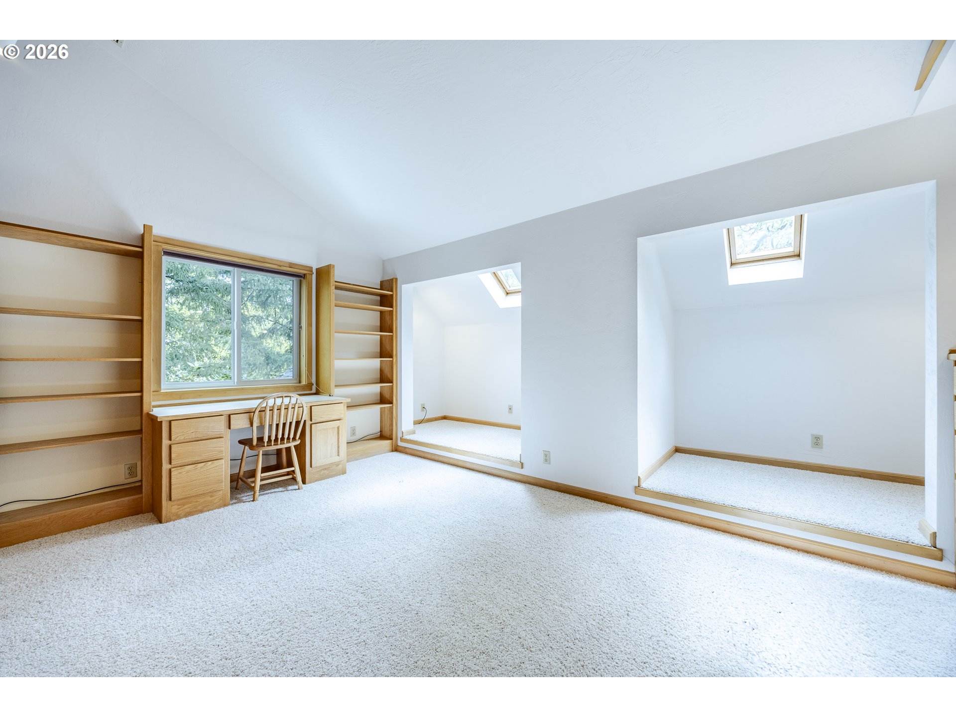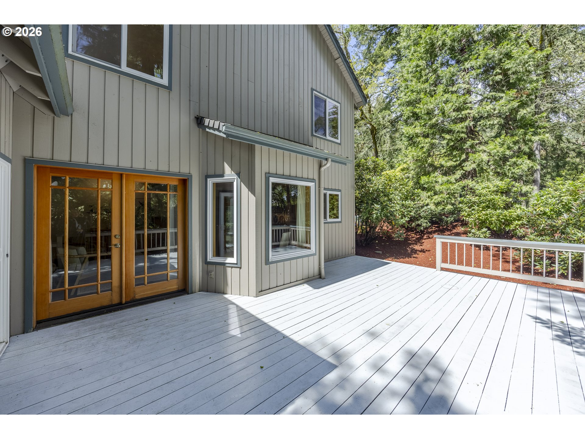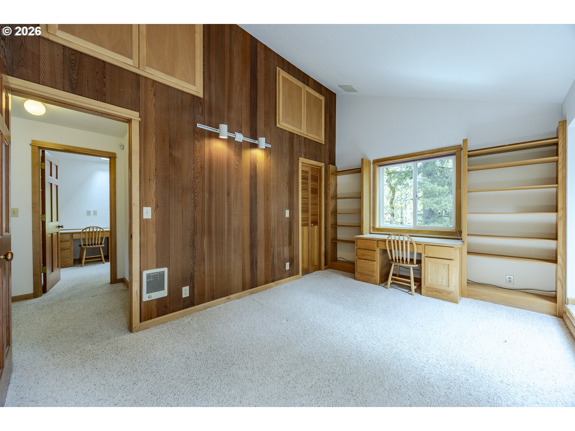 Tucked away on a private driveway and set on .71 acres, this inviting property offers a rare blend of privacy, space, and natural beauty—all within town and with views of Spencer Butte. Surrounded by a park-like setting, the home welcomes you with a charming front porch complete with a swing. Inside, distinctive architectural details shine throughout. The home opens to a stunning living room featuring a wall of windows, exposed beamed ceilings, and rich hardwood floors that bring warmth and character to the space. The formal dining room flows into a thoughtfully designed kitchen with an eat-at island, as well as a cozy bay window dining nook. The family room, anchored by a fireplace, opens into a spacious sunroom with tile flooring and direct access to the deck—ideal for entertaining or enjoying indoor-outdoor living year-round. A convenient main-level laundry room offers built-in desk space and abundant storage. Upstairs, a versatile loft with built-in bookcases and desk provides the perfect space for a home office, reading retreat, or workout area. The ensuite primary bedroom features vaulted ceilings and a walk-in closet, while two additional bedrooms each offer their own unique charm with built-ins, skylights, vaulted ceilings, and walk-in closets. Outdoors, the expansive property invites exploration and boarders the Ridgeline Trail system. Not only do you have an attached two car garage there is an additional detached two-car garage that includes a dedicated workspace, adding flexibility for hobbies or storage. Carefully updated while preserving its original character, this home beautifully blends timeless design with modern comfort—truly welcoming the outdoors in.