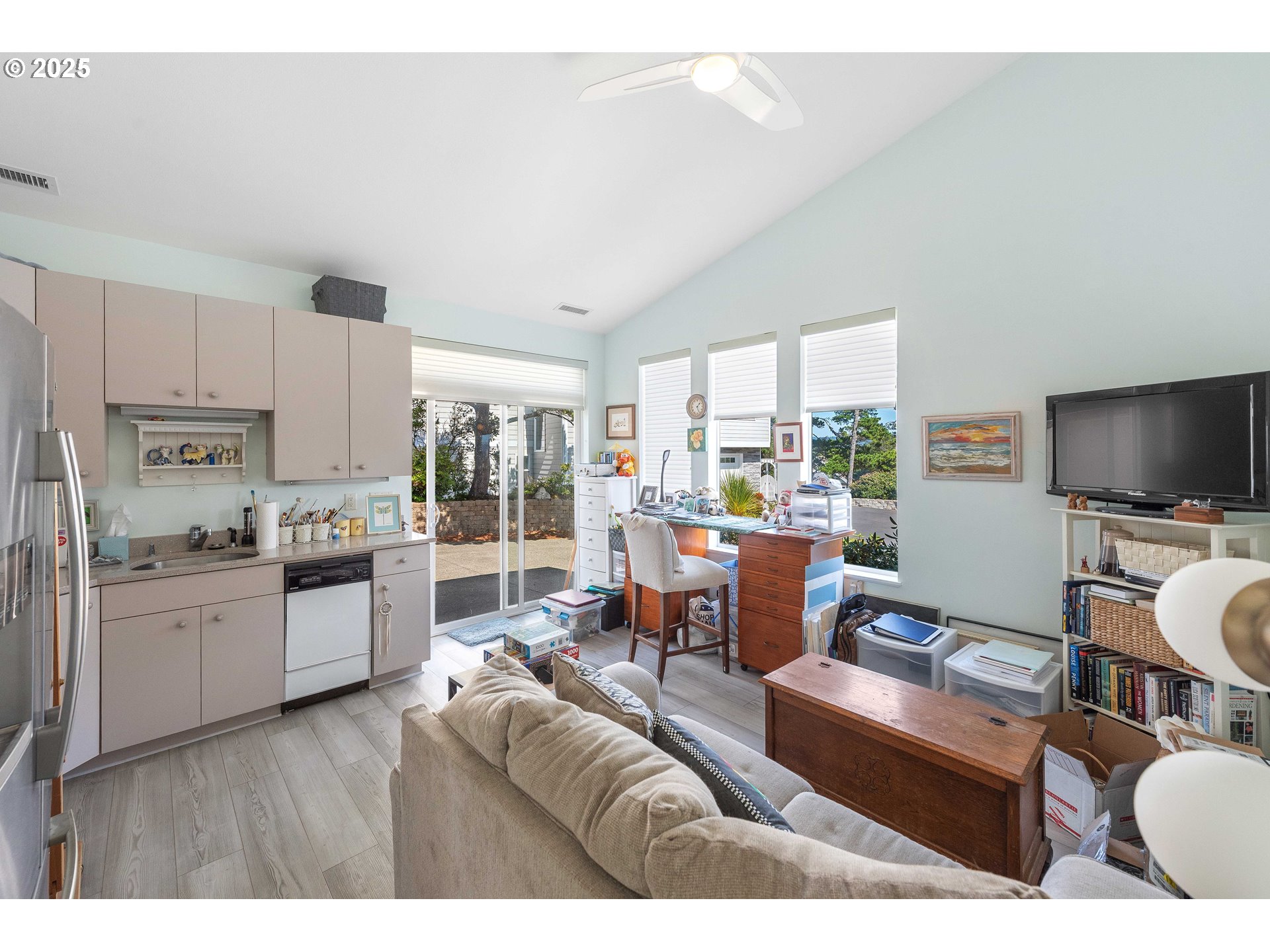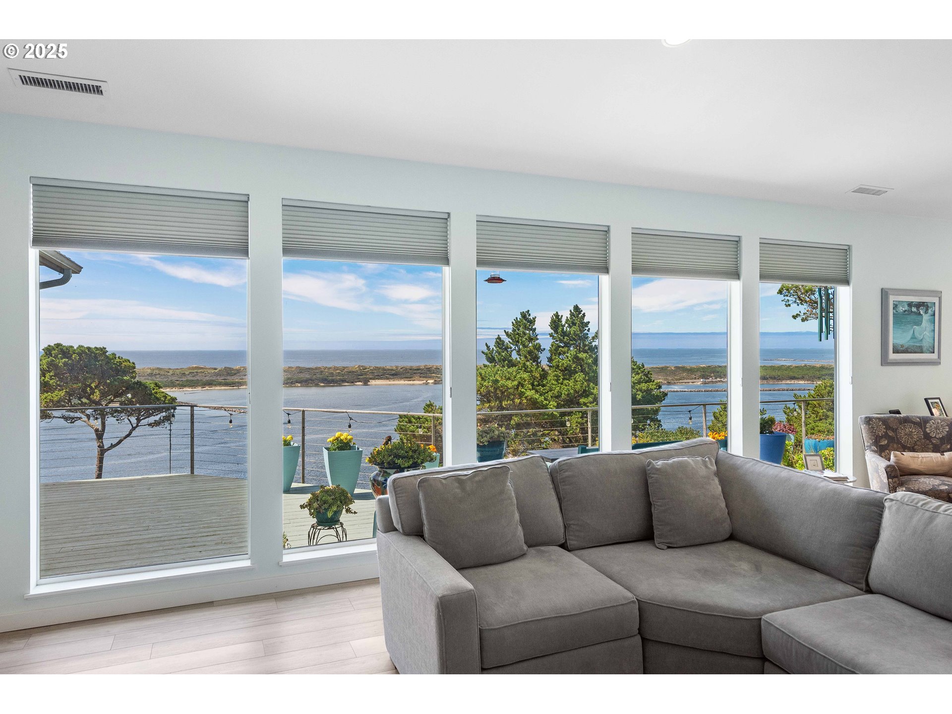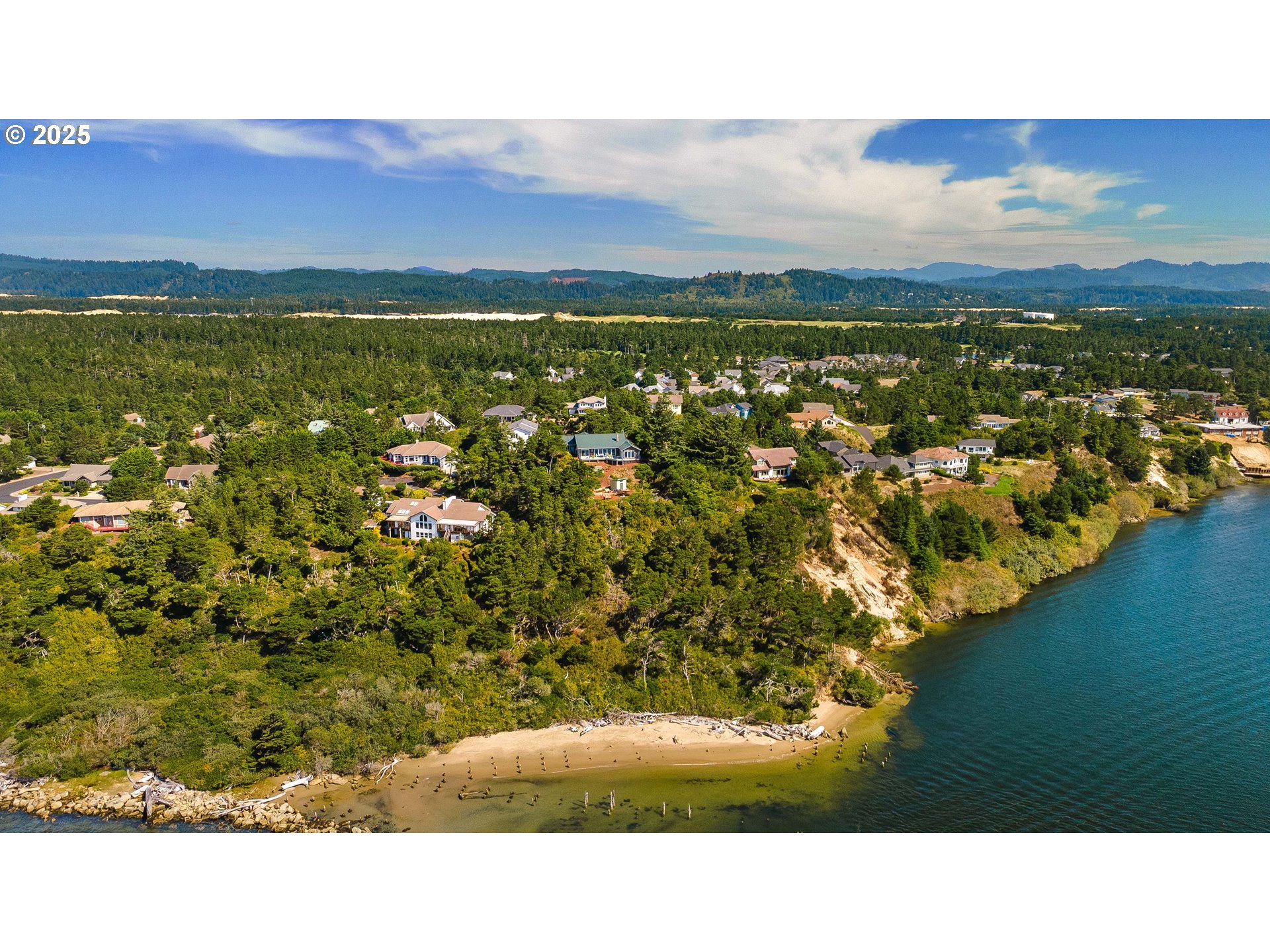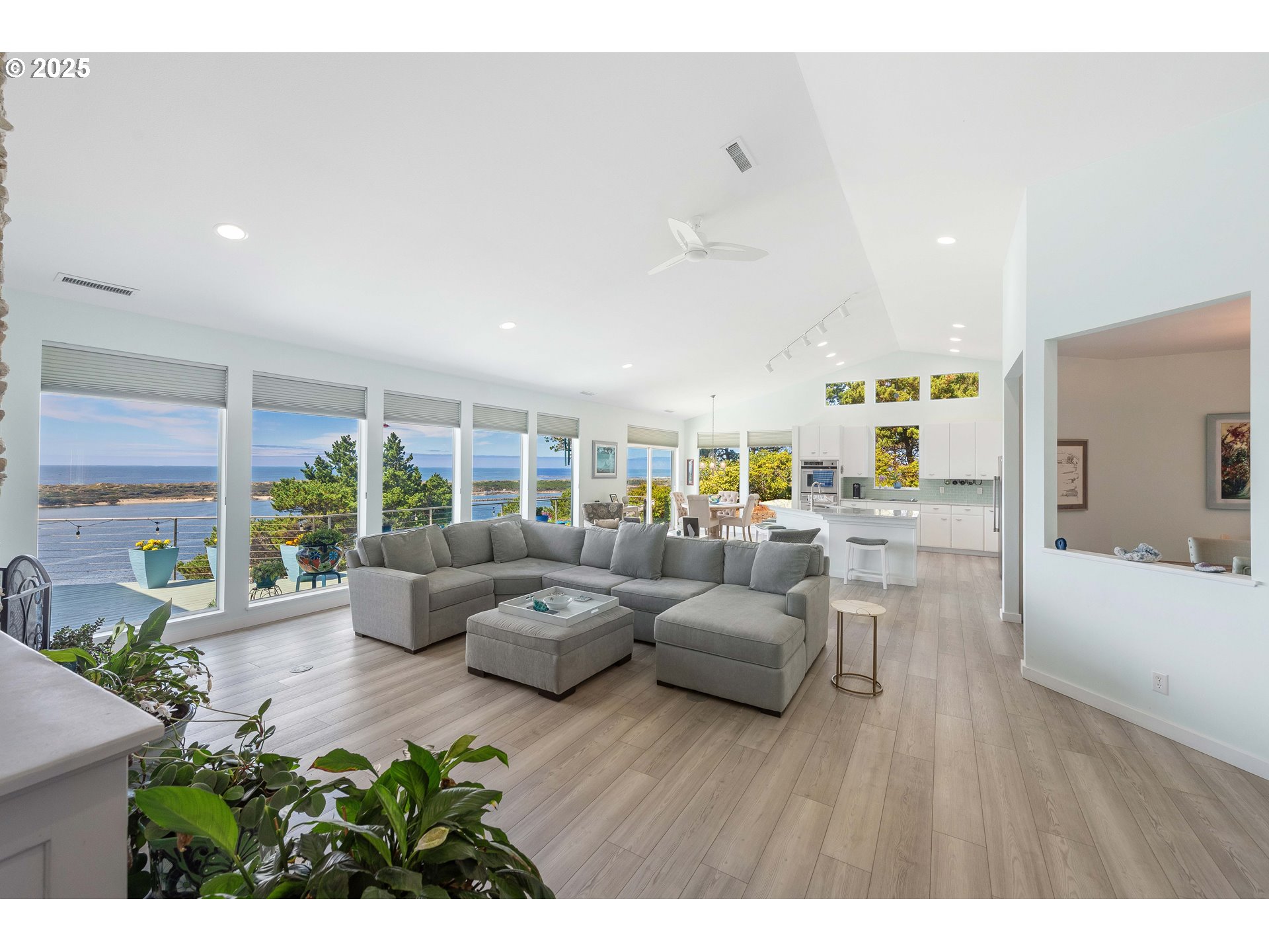 A one-of-a-kind residence situated at the highest point in Shelter Cove, offering panoramic views of the Pacific Ocean and the Siuslaw River. This elegant coastal retreat seamlessly blends luxury, comfort, and versatility, featuring three spacious primary suites, including a beautifully appointed mother-in-law suite complete with its own kitchen and living area.Inside, you’ll find vaulted ceilings, tile and granite finishes, and new luxury vinyl plank flooring (2021) flowing through the main living areas—including the gourmet kitchen, formal dining room, office, and beyond. The chef’s kitchen is designed to impress with premium finishes and functionality perfect for entertaining or everyday living. Step outside to take in the views from the expansive back deck, where the sky meets the sea. The landscaping has been meticulously updated, with extensive clearing, a gravel pathway with lower decks, and a new storage building added in 2025. A 90-step stairway and bridge now connects the private driveway to the street below, offering both visual impact and convenience. Recent upgrades include: Interior repaint (2024), New hot water heater with recirculating pump (2022), Complete remodel of secondary suite bathroom (2025),New HVAC/heat pump system scheduled for installation (Sept 2025)