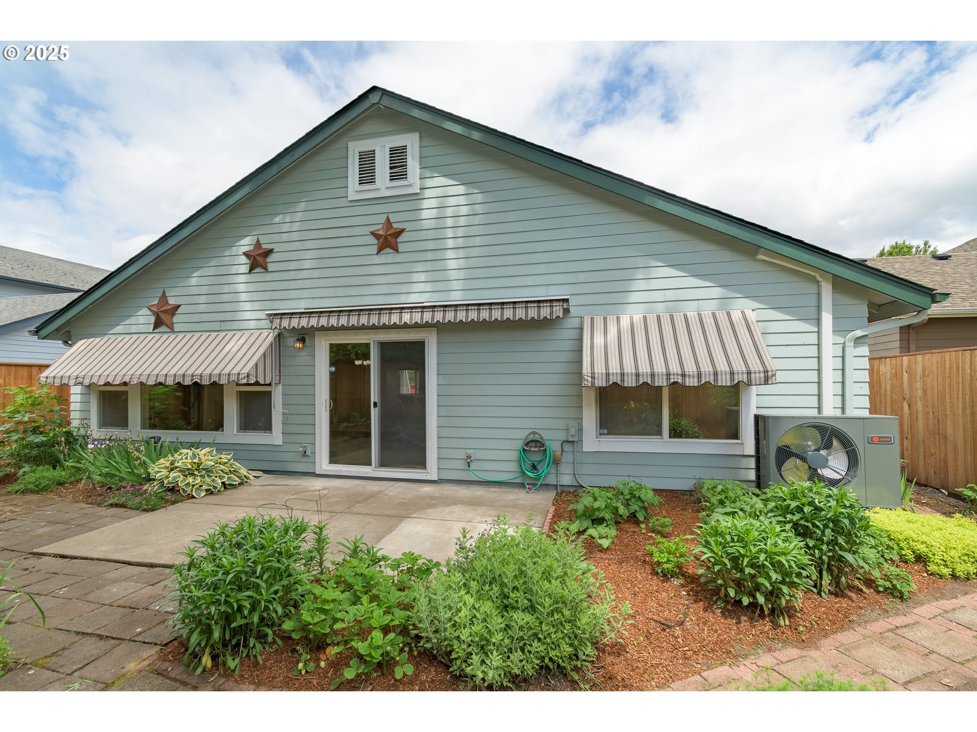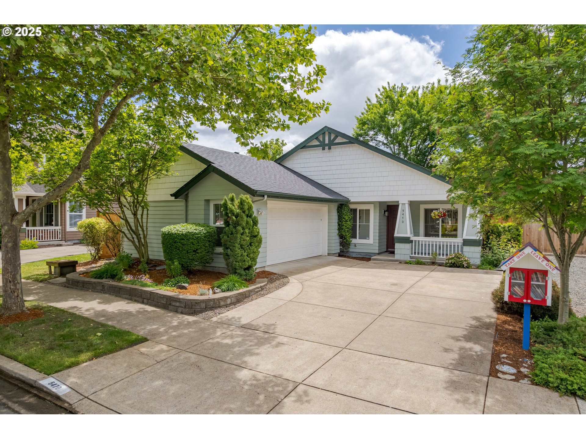 (503) 893-8874Welcome to this charming single-level Craftsman-style home, featuring luxury vinyl plank flooring throughout. The spacious living room boasts vaulted ceilings and an arched opening to the family room. The kitchen/family room layout has an open concept to create a larger social area. The kitchen is equipped with newer stainless steel appliances, an eating bar, pantry, an abundance of cabinets, cozy dining area and a sliding glass door leading to the backyard—perfect for entertaining. The inviting family room is open to the kitchen and features vaulted ceilings and a gas fireplace for added warmth and ambiance. The primary bedroom offers a thoughtfully designed ADA certified curb-free bathroom with a large shower and built-in bench, a double-sink vanity, and a walk-in closet. Two additional bedrooms provide flexibility for guests, a home office, or hobby space. Step outside to a lovely low-maintenance backyard ideal for relaxed outdoor living, complete with vibrant flower beds, blueberry and strawberry plants, a grape arbor, and a patio with retractable cover. The 2-car garage has storage cabinets and a workbench.