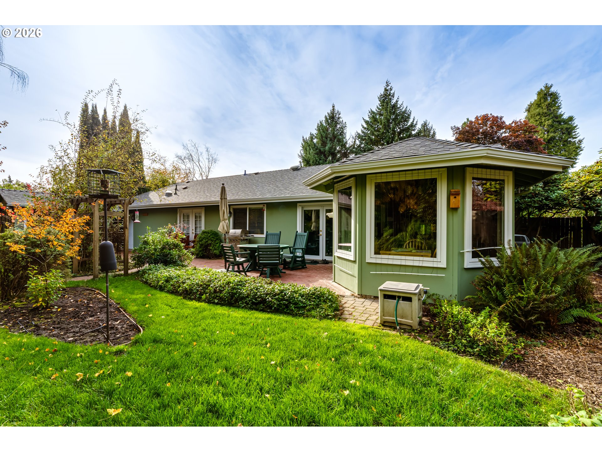 (503) 893-8874Highly desirable Chevy Chase neighborhood, ideally located near Autzen Stadium and the river canoe path. This meticulously maintained and thoughtfully upgraded single-level home offers far more than meets the eye.The light-filled interior features a vaulted living room with gas fireplace and hickory floors, an upgraded kitchen with granite countertops, maple cabinetry, gas cooking, and a generous eating area. The spacious primary suite includes French doors opening directly to the patio, while a well-placed family room or office also features French doors for flexible living. The backyard is a true sanctuary—beautifully landscaped with a water feature, brick walkways and patio, and established plantings that attract abundant birdlife (certified by the Habitat Haven Wildlife project). Additional highlights include a finished outbuilding with power, a finished two-car garage with epoxy floors, and a third-car garage with ample storage. A rare opportunity in one of Eugene’s most sought-after neighborhoods. Check out the video!