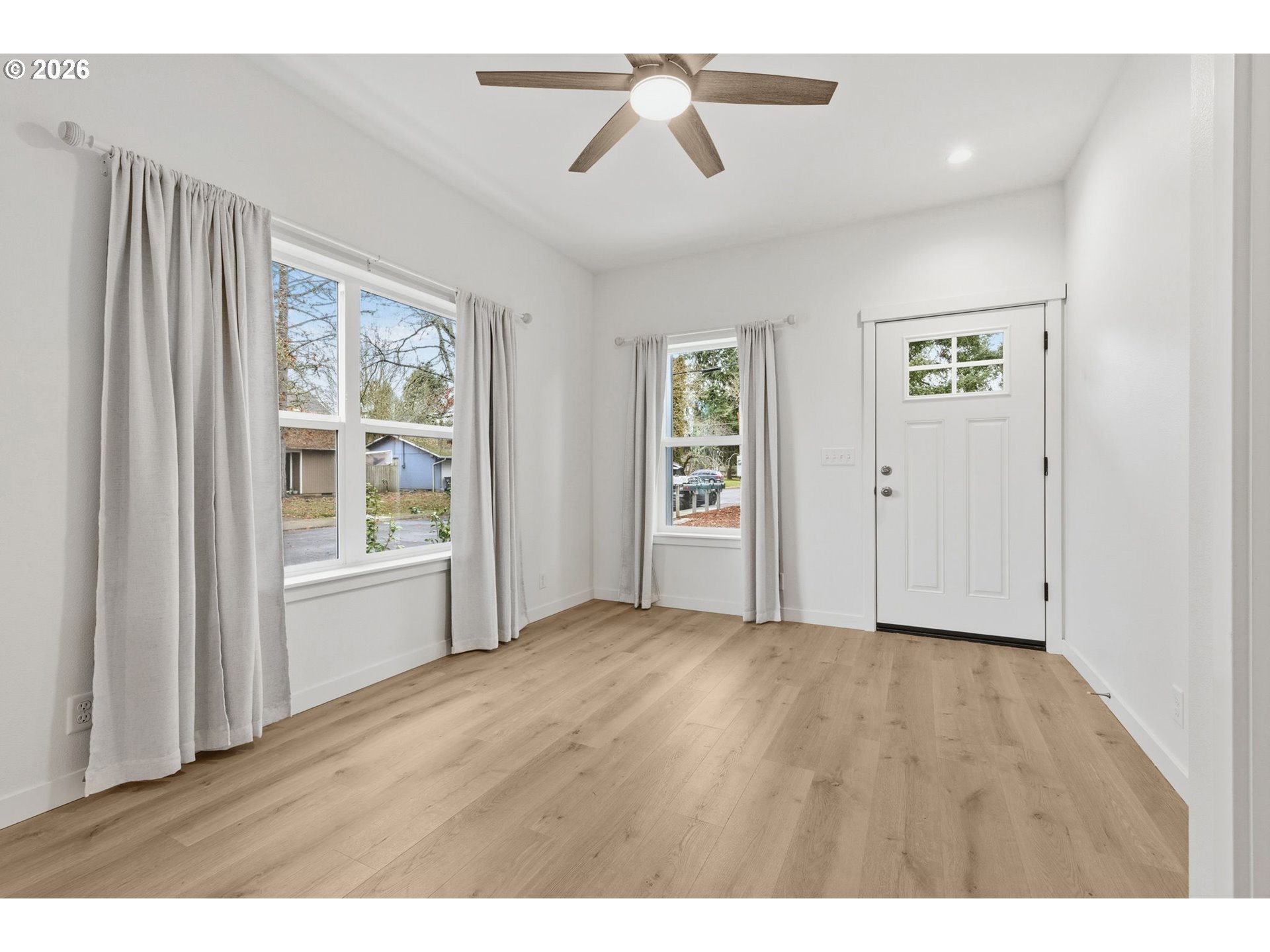 Brand-NEW construction in a convenient Eugene location! This thoughtfully designed home offers modern comfort and excellent separation of space, with a desirable primary bedroom and bathroom on the main level and three generously sized bedrooms upstairs.The open kitchen features leathered granite countertops with an eat-bar, stainless steel appliances, and contemporary finishes—perfect for everyday living and entertaining. Durable LVP flooring and ceiling fans add style and comfort throughout the home.Enjoy the welcoming cobblestone driveway and a location that truly delivers: just minutes to Meadow View School, Kalapuya and Willamette High Schools, and close to grocery stores, parks, walking paths, sports fields, and local dining options. Baseball enthusiasts will appreciate the quick access to Willamette Valley Babe Ruth Baseball fields.A fantastic opportunity to own a modern new home with both convenience and livability.