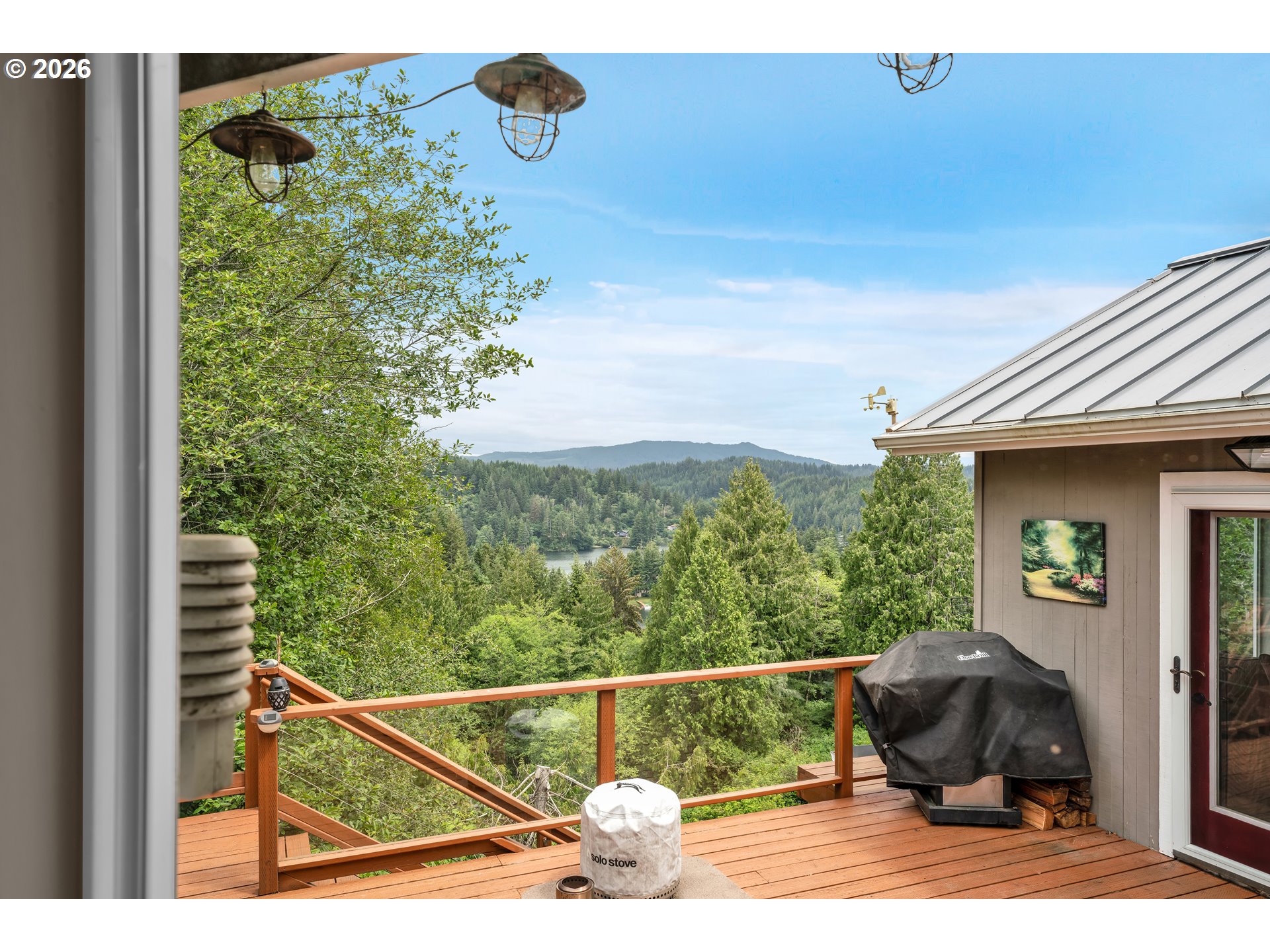 Exceptional generational home is a rare opportunity to own a beautifully upgraded residence with captivating views of Mercer Lake and the surrounding tree canopy. Thoughtfully designed and meticulously maintained, this 2-bedroom, 2-bathroom + bonus room home features quality finishes, flexible living spaces, and a seamless connection to the natural beauty that defines life on the Oregon Coast.Step inside to discover warm wood floors and a spacious, light-filled living room with soaring vaulted ceilings. Large picture windows allows natural light to fill the home. A charming wood-burning stove adds warmth and ambiance, while a glass door lead to an expansive deck—perfect for entertaining, relaxing, or simply soaking in the scenery.The open-concept kitchen is both welcoming and efficient, complete with custom cabinetry, a breakfast bar, and tasteful finishes that blend functionality with style. The primary bedroom is a peaceful retreat, featuring wood flooring, dual closets, and elegant French doors that open directly to thedeck—offering morning sunlight and evening forrest breezes. The adjacent Jack-and-Jill bathroom includes dual vanities and a walk-in shower. A secondbedroom also includes double closets, making it ideal for guests, family, or a home office.Downstairs, a 400-square-foot finished bonus room with its ownprivate entry offers incredible flexibility—perfect for a studio, hobby space, or even a separate guest flat.Outside, the home is surrounded by well-maintained landscaping that enhances the serene atmosphere, with a layout that maximizes both privacy and views. HOA includes community area off of Mercer Lake with dock, boat launch ramp and day use area. Located on a quiet loop just minutes from Florence’s charming Old Town and coastal beaches, this property is ideal as a full-time residence, vacation home, or investment in coastal living.