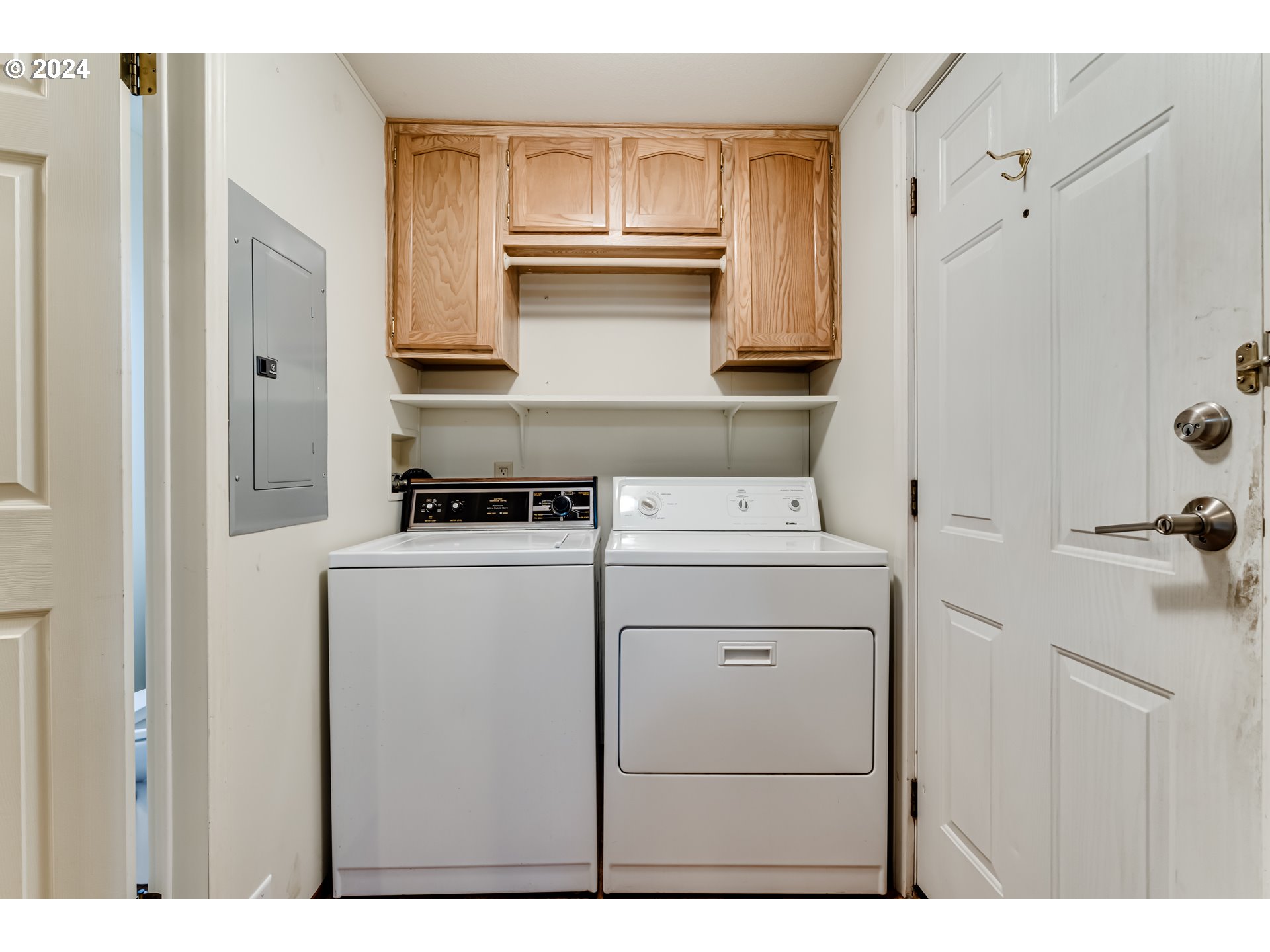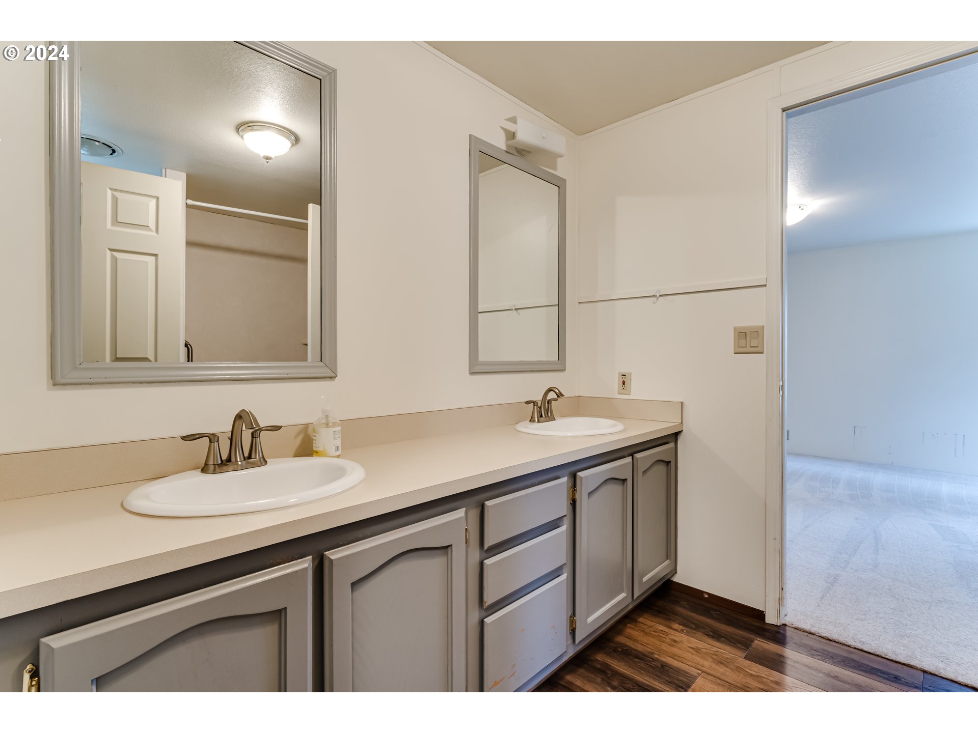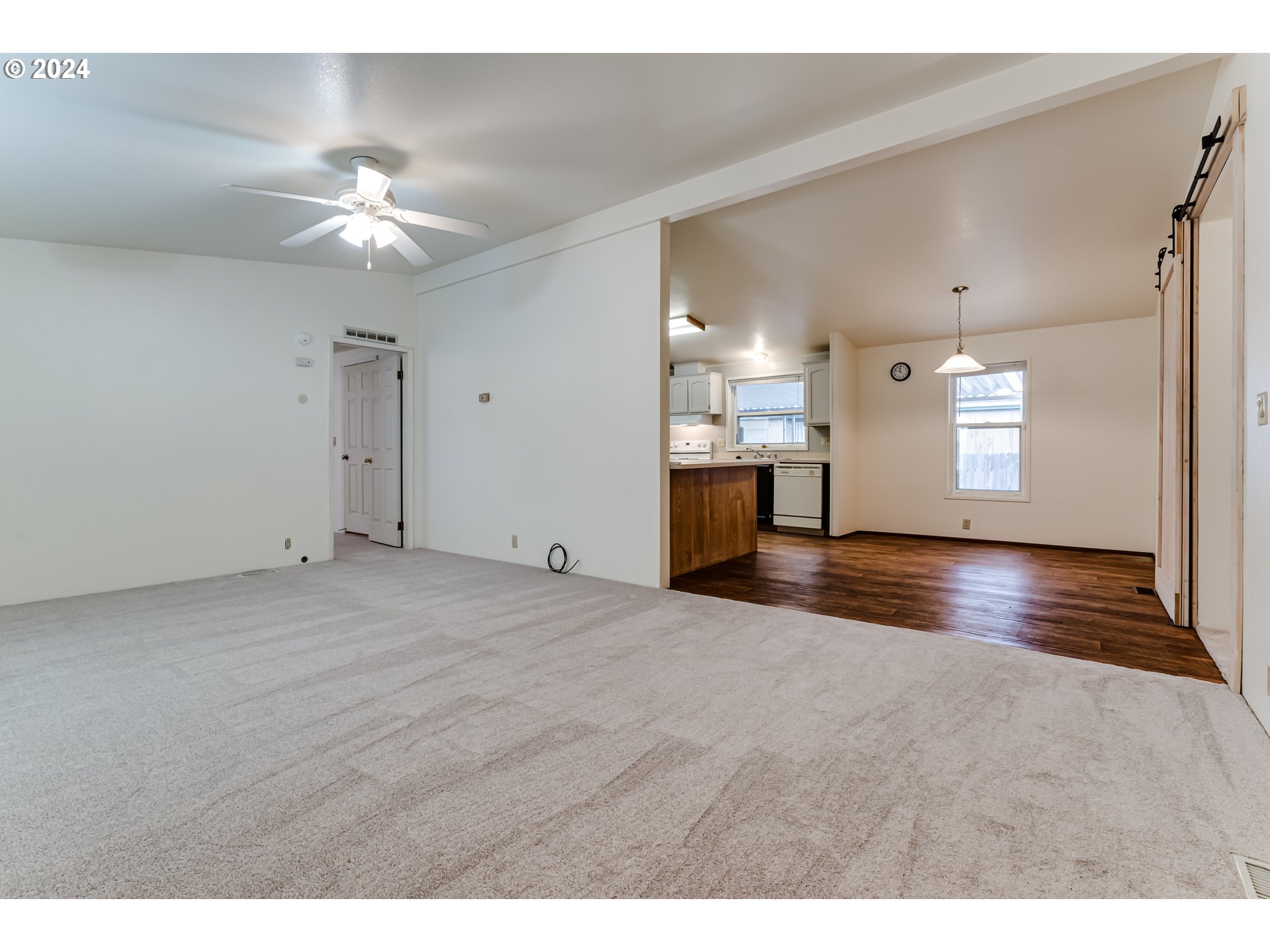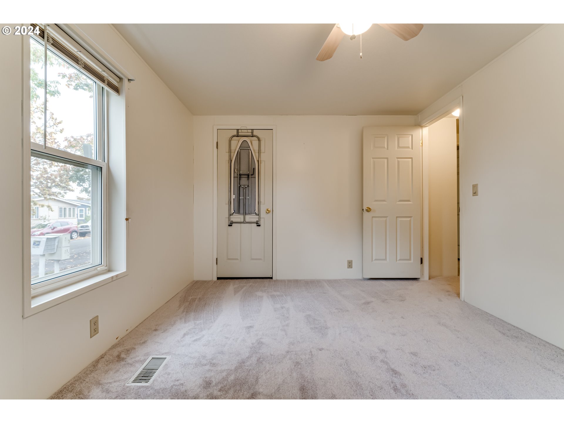 Clean and easy living. Brand new carpet in bedrooms and living room. Large primary bedroom with ensuite. Ductless heat pump with three units for cooling and efficient heating. New toilets. Accessibility options include wheel chair ramp and roll-in shower. All-ages park with affordable space rent. Conveniently located near shopping, bus lines and easy freeway access. Two storage sheds with electricity in addition to the carport and RV Parking pad.