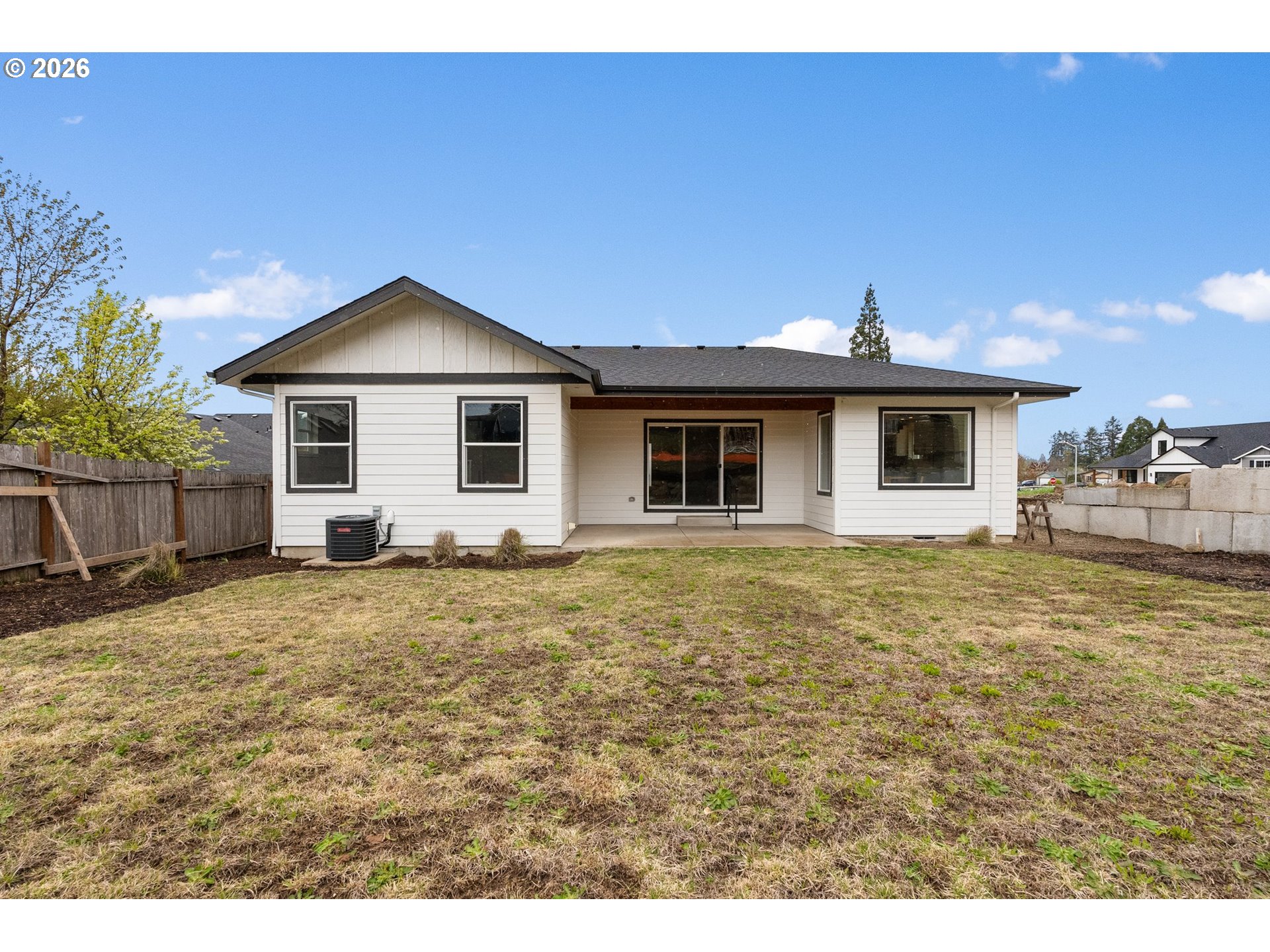 Gorgeous like new home on nearly a 1/4 acre just 15 minutes from Eugene! This home features a custom covered back patio and large backyard perfect for entertaining this Summer. Step inside to an open great room with vaulted ceilings and abundant natural light, plus a stylish kitchen featuring quartz countertops, two-tone cabinetry, stainless steel appliances, a gas range, and a large island with extra seating. The private primary suite offers a tile walk-in shower, double sinks, and a walk-in closet. This 3-bedroom, 2-bath home also includes an attached 2-car garage, spacious laundry and mudroom with bonus storage, and modern upgrades like a gas furnace, central A/C, and gas water heater. Amazing value - don't miss out!