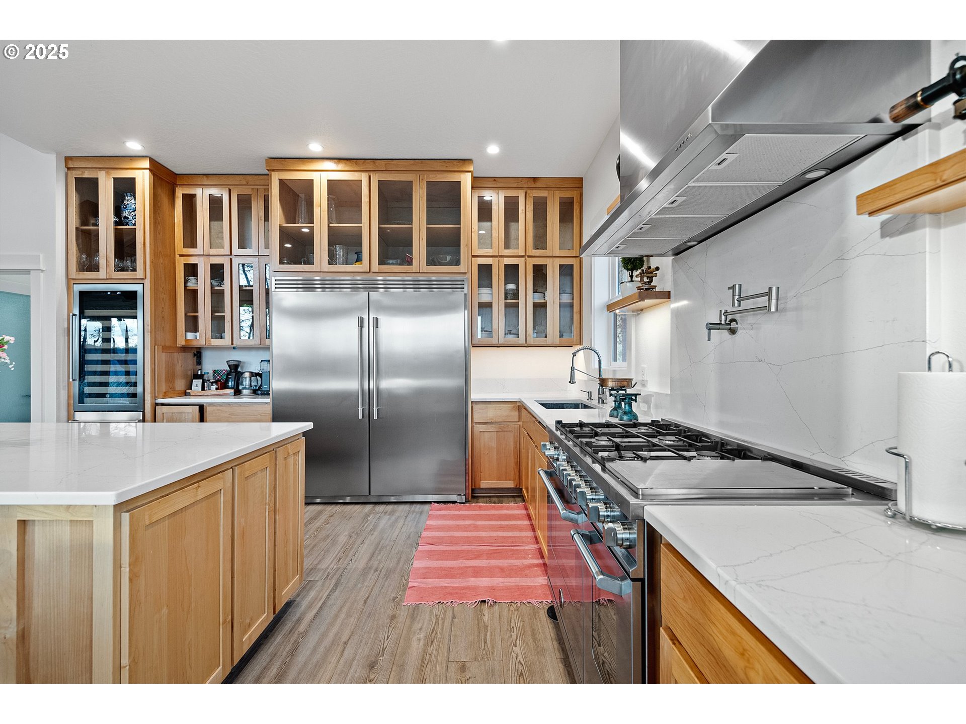 (503) 893-8874Stunning custom home in one of Springfield’s premier neighborhoods, just minutes from Dorris Ranch. Thoughtfully designed and beautifully finished, this spacious residence offers luxury, comfort, and exceptional indoor–outdoor living on a rare one-acre lot.Step inside to an expansive open layout featuring vaulted ceilings, LVP floors, and walls of windows overlooking the landscaped grounds. The generous living room flows seamlessly into the dining area and gourmet kitchen—perfect for entertaining.The chef-inspired kitchen features a 6-burner Bertazzoni gas range with convection oven, griddle, and pot filler, along with a statement French door refrigerator, built-in wine fridge, and an oversized quartz island. A walk-in pantry with additional freezer provides outstanding storage.Retreat to the luxurious primary suite with double closets, extra built-ins, and French doors to the backyard. The spa-like ensuite includes a walk-in tile shower, soaking tub, and double sinks. The main level offers excellent separation of space with three additional bedrooms and two full bathrooms.Upstairs includes another bedroom, full bathroom, and a versatile bonus room ideal for guests, work, or play. The vaulted wood-lined covered deck creates a sophisticated outdoor living space, complete with built-in gas heaters and a custom fire pit for year-round enjoyment.The expansive one-acre lot features lush landscaping, raised garden beds, a sprinkler system, and a storage shed. With low county taxes yet minutes from Downtown Springfield and a short drive to Eugene, this exceptional property delivers convenience, comfort, and custom craftsmanship throughout.