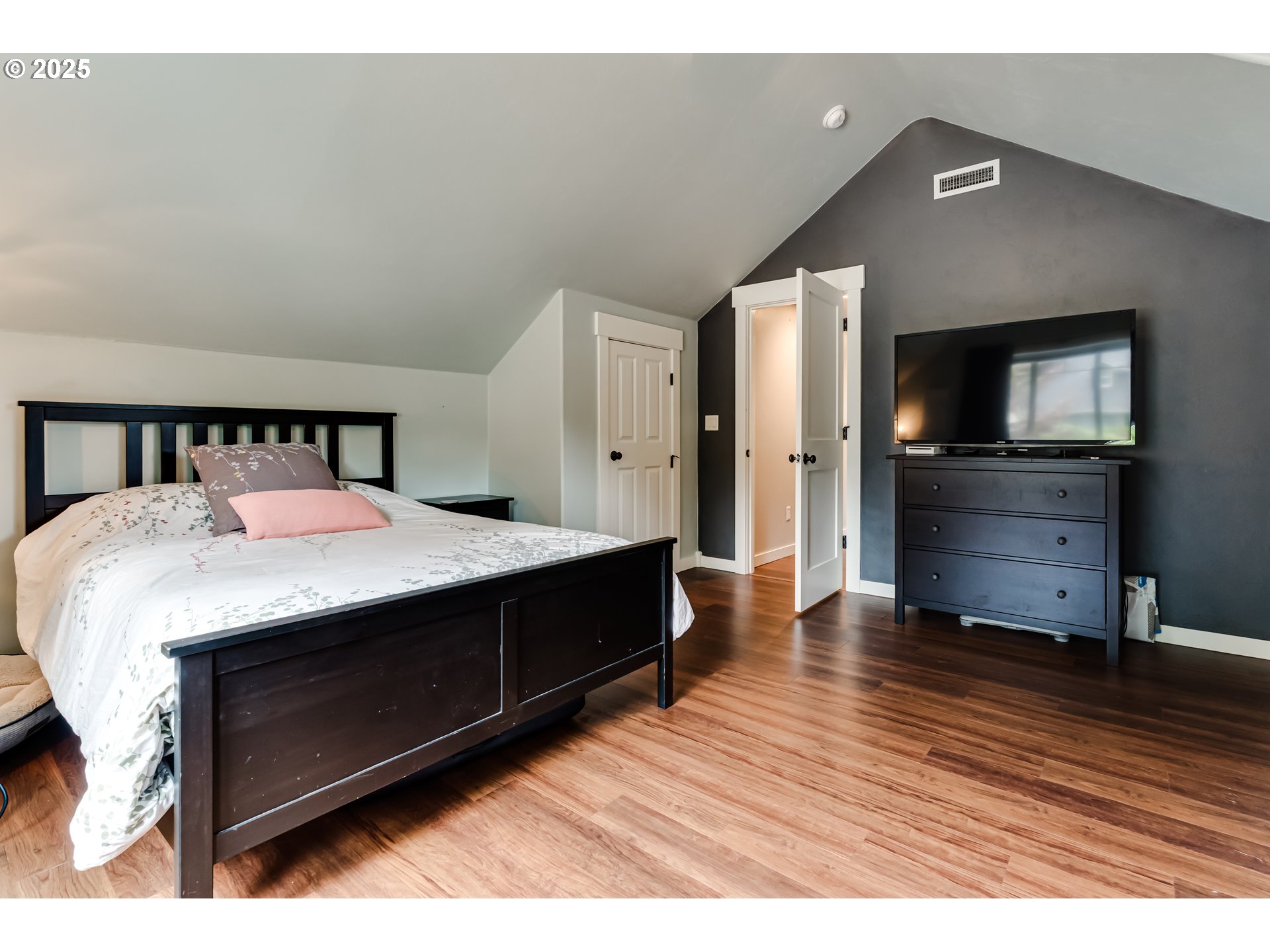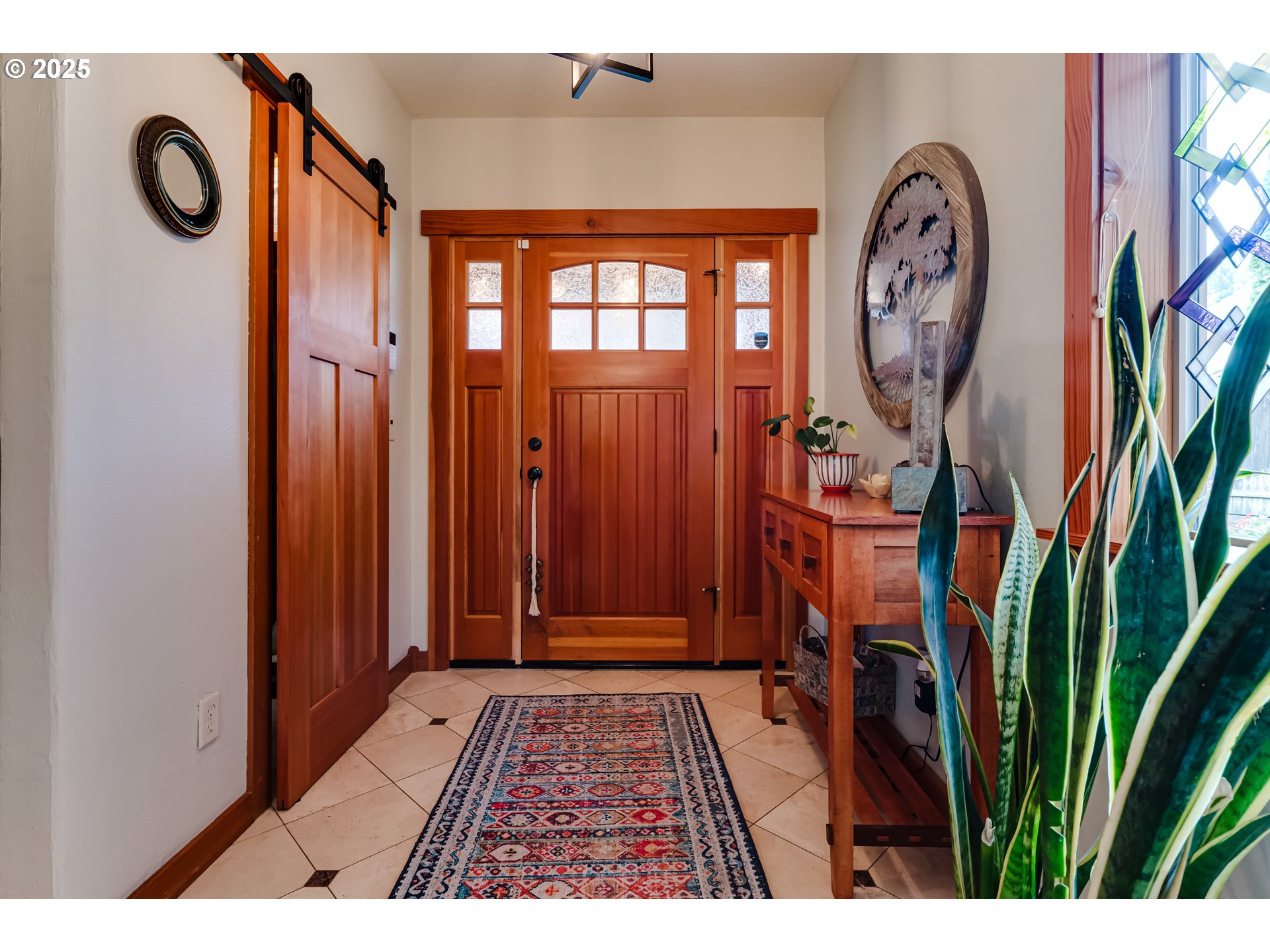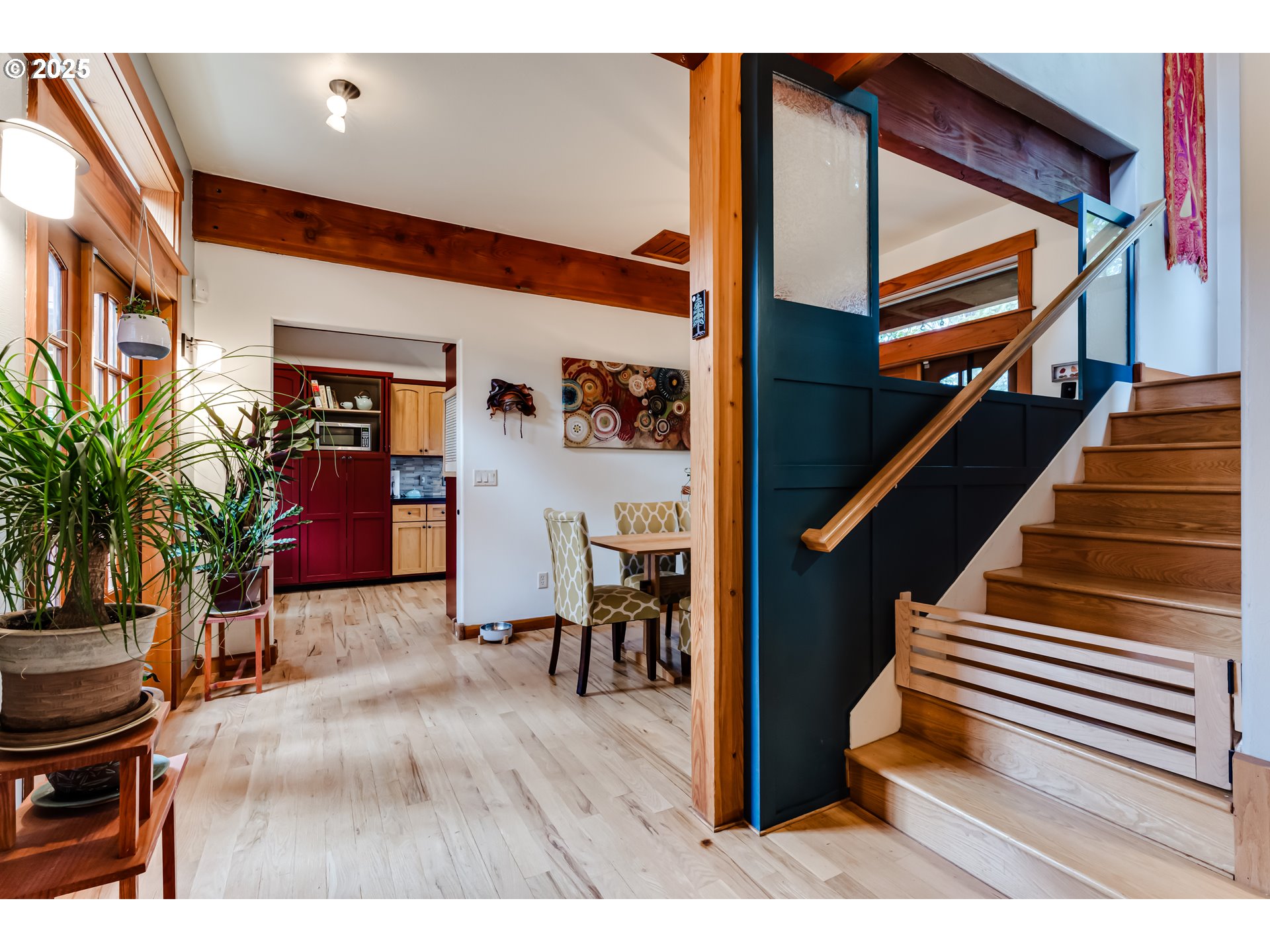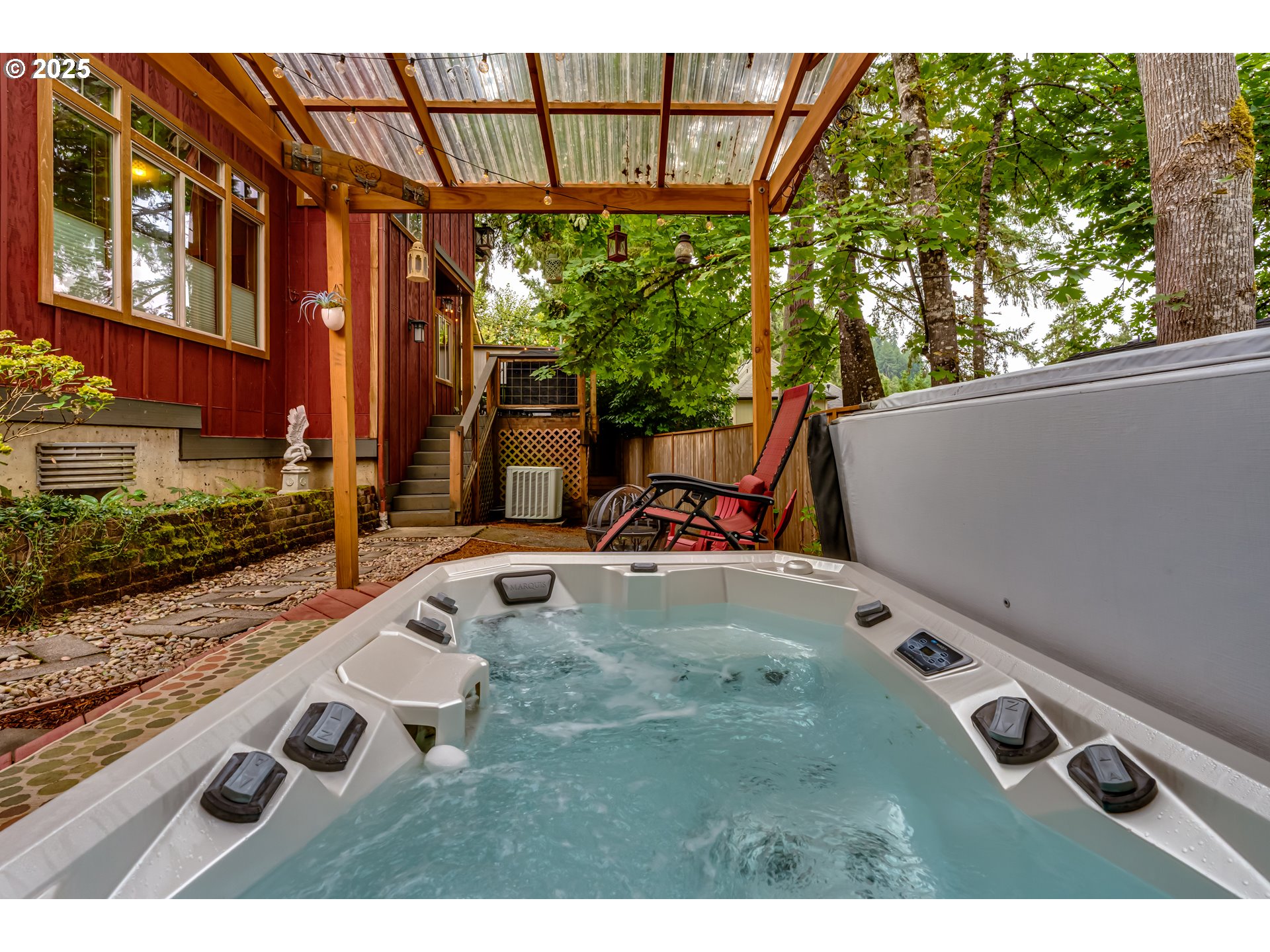 Incredible Custom NW Contemporary in Springfield’s desirable South Hills neighborhood. This thoughtfully designed residence blends architectural artistry with everyday functionality. Built with meticulous attention to detail, the home showcases exposed Fir beams, reclaimed wood finishes, custom built-ins, and red oak flooring throughout. Expansive windows flood the interior with natural light and connect the home to its tranquil surroundings.The upper-level primary suite offers a peaceful retreat with vaulted barrel ceilings, private balcony access, and a luxurious jetted tub. The main level is designed for both entertaining and everyday living, featuring a spacious living area with a fireplace, a dedicated dining space, and a gourmet kitchen with a cozy breakfast nook, granite countertops, stainless steel appliances, and slide-out storage for added convenience.A versatile bedroom on the main floor functions perfectly as a home office or bonus room, offering flexibility for work, guests, or hobbies.Additional features include an oversized garage with a private pottery studio or creative workspace, plus a separate detached shop in the backyard—ideal for projects, storage, or a home-based business.The fully fenced, low-maintenance yard offers privacy and comfort, with professionally landscaped front and back spaces, a peaceful water feature, a hot tub, and multiple sitting areas to enjoy local birdlife and seasonal blooms. The water feature includes a self-sustaining ecosystem with ornamental fish, adding a calming, natural element to the outdoor environment.This is a home designed for both connection and solitude—a rare combination of elegance, livability, and creative inspiration in one of Springfield’s most sought-after neighborhoods.