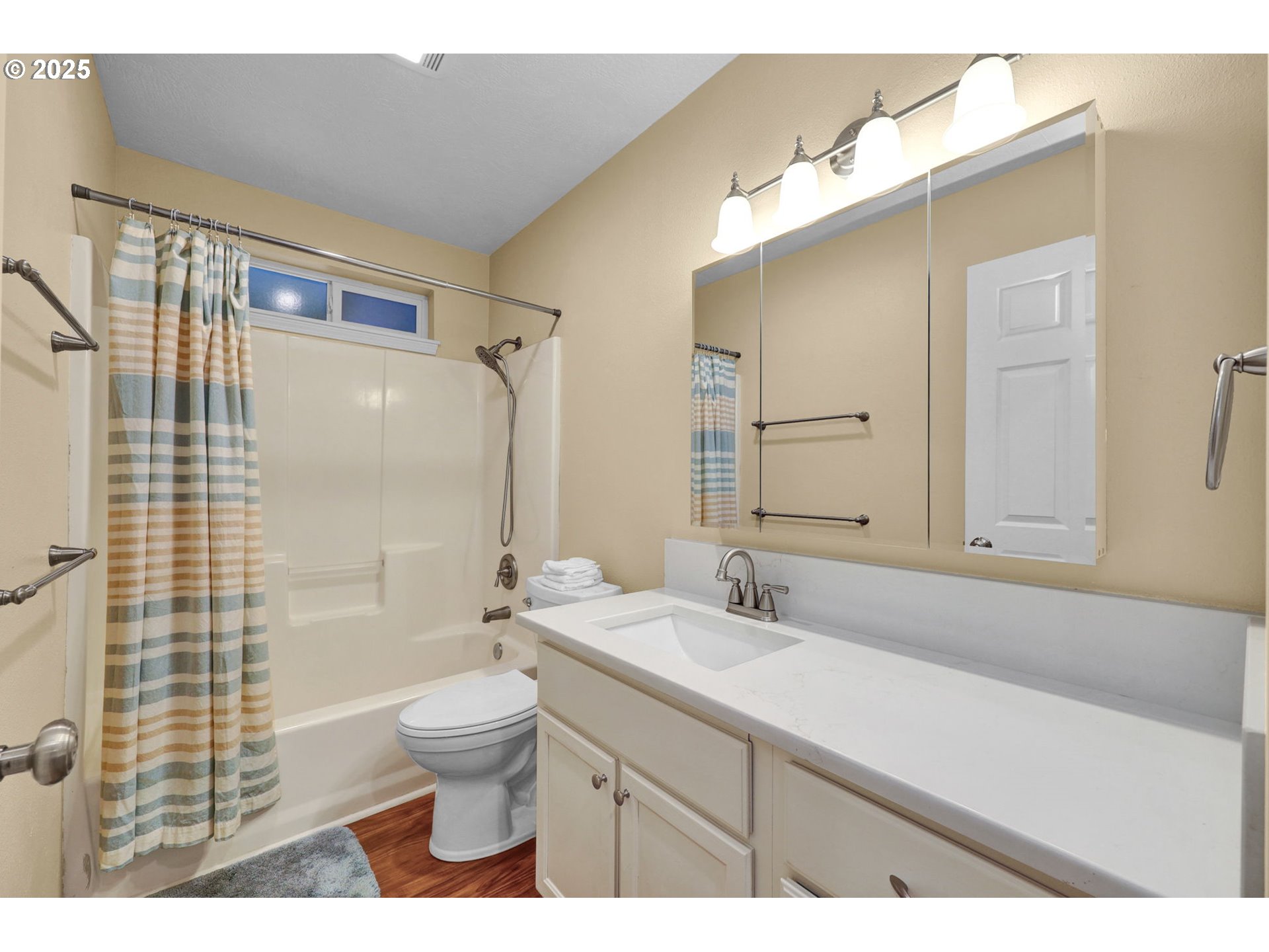 Situated on a culdesac, this updated home features a new heat pump, newer flooring, appliances, and quartz countertops. The open concept design creates a light and welcoming gathering space that connects the kitchen, dining, and living areas. Outside, enjoy a small, low-maintenance yard with a covered patio- ideal for relaxing or entertaining with ease.