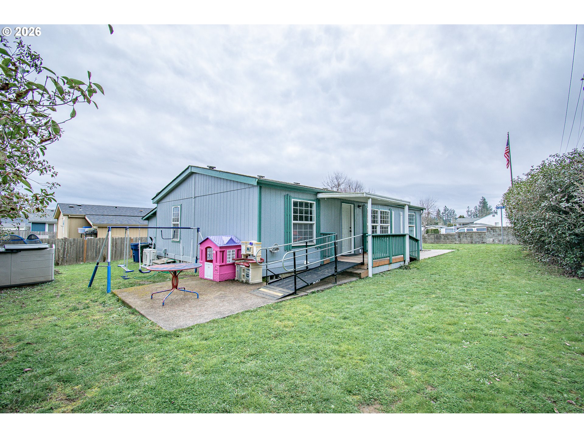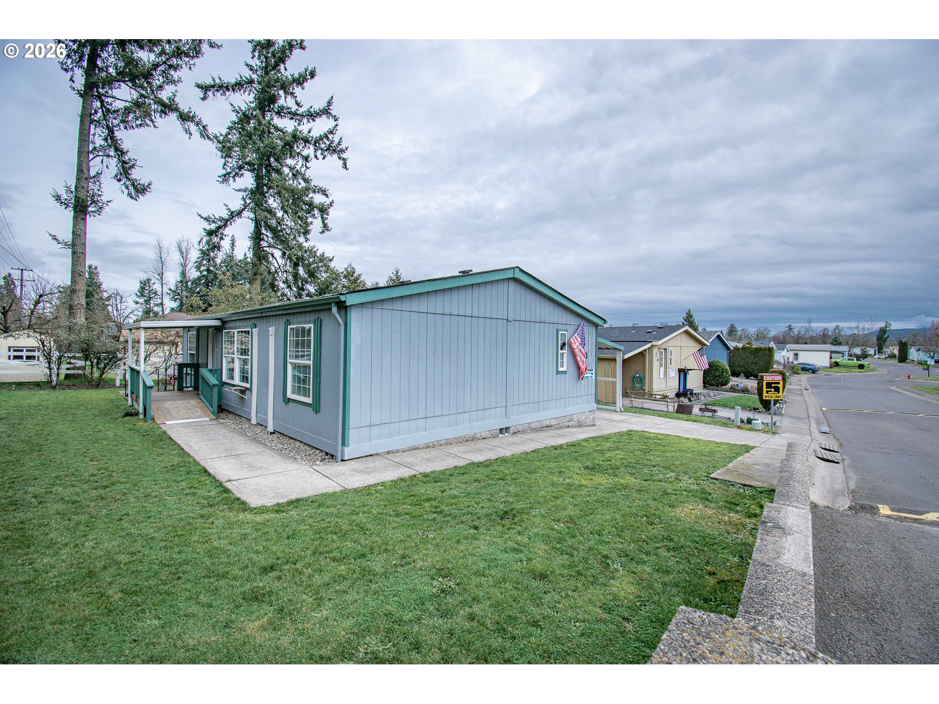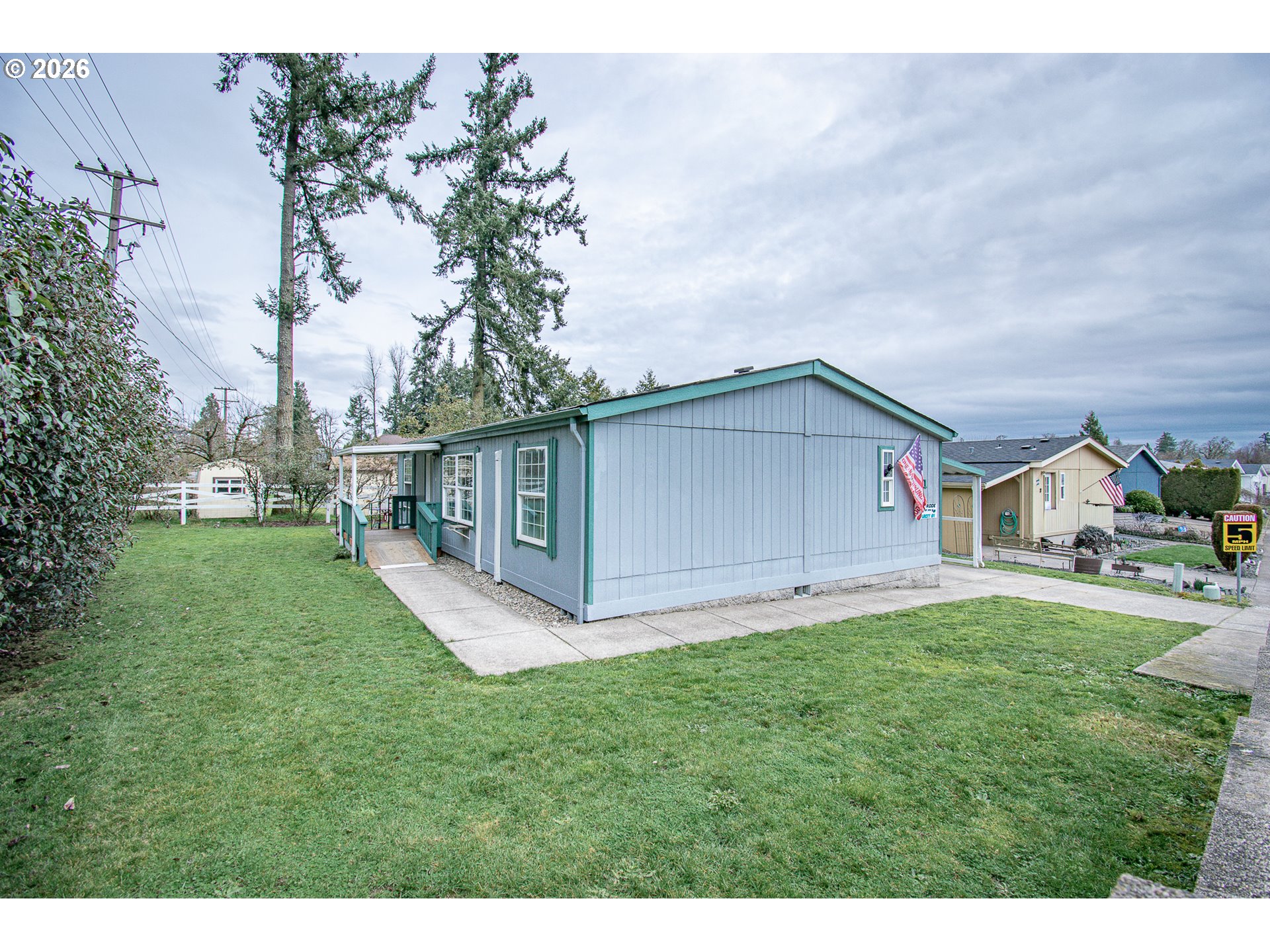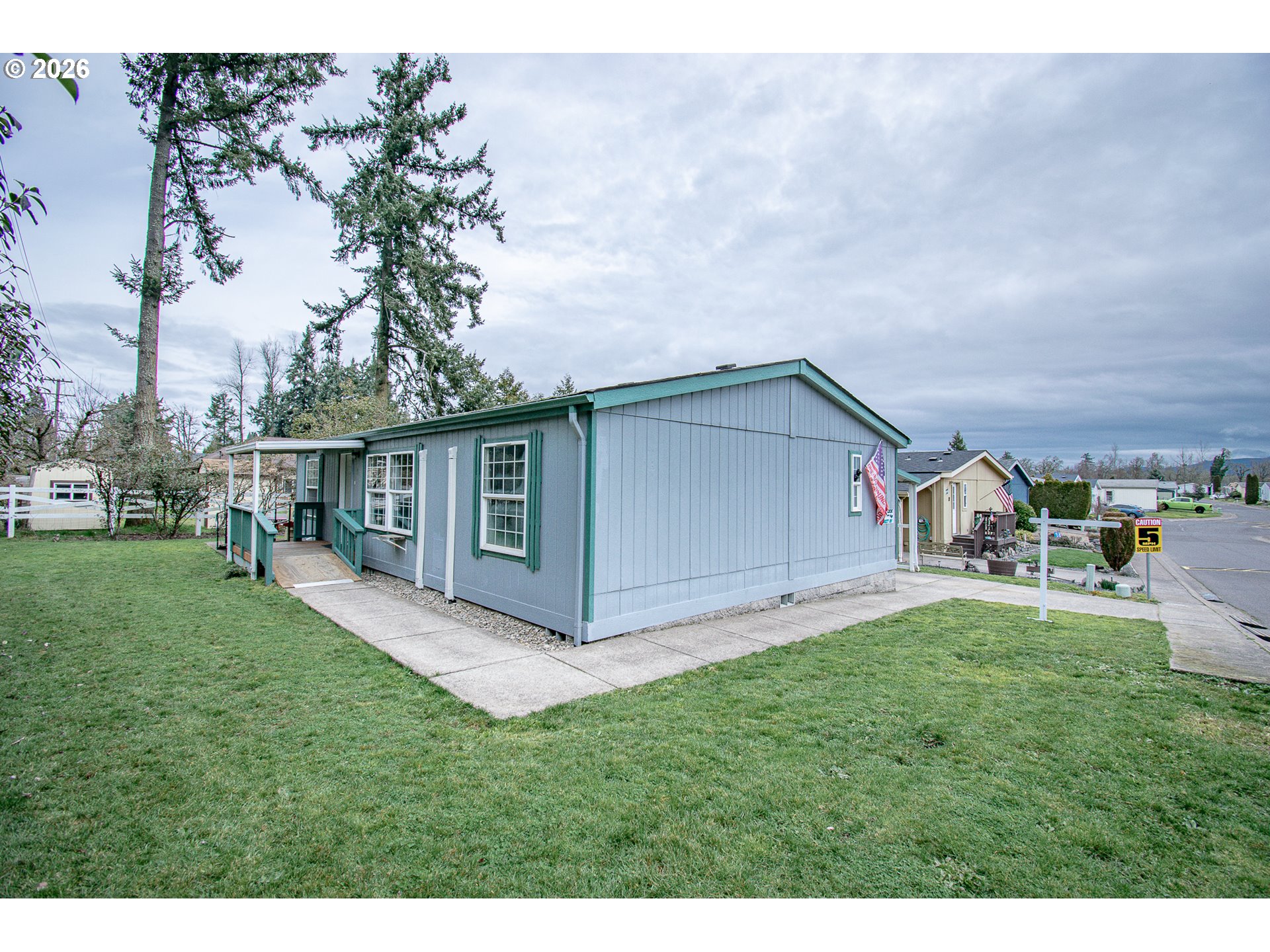 Lovingly cared for 3 bedroom 2 bath manufactured home featuring vaulted ceilings and open layout. The efficient ductless heating and cooling system ensures year-round comfort and was just installed in March 2025. The primary suite includes a private bath and walk-in closet, while the dedicated laundry area comes with a washer and dryer and chest freezer. Outside, you’ll find a fully fenced backyard with mature trees, a ramped front entry for easy accessibility, a covered carport with tool shed/storage, and located on a desirable corner lot in quiet all ages park near schools, shopping, and I-5 access. Don’t miss this affordable opportunity in a growing Creswell community. Non smoking Non pet household