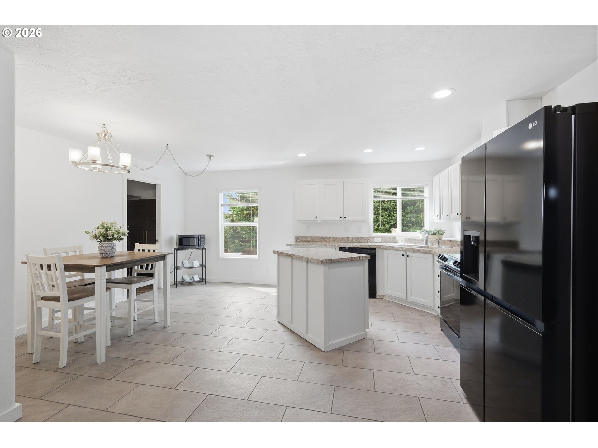 Enjoy easy living in this updated 2018 manufactured home on its own land with no HOA. This well-maintained one-level home offers a bright, open layout designed for comfort and functionality. The spacious open floor plan connects the living area and kitchen, creating an inviting space for everyday living and entertaining. The kitchen features an island, dishwasher, refrigerator, and newer stove, offering plenty of room for cooking and gathering. The home offers great separation of space, with a large primary suite that includes two closets—one walk-in—and a private spacious bathroom with double sinks, giving you a relaxing retreat at the end of the day. Additional highlights include forced air heat with a heat pump for efficient heating and air conditioning, plus a large indoor laundry room for added convenience. Step outside to enjoy the fully fenced yard with plenty of space, a deck for outdoor relaxing, RV Parking and a large double gate for easy access. The 400 sq. ft. detached garage provides excellent flexibility—perfect for parking, storage, or a workshop. Move-in ready and offering space, comfort, and versatility—this is one you won’t want to miss.